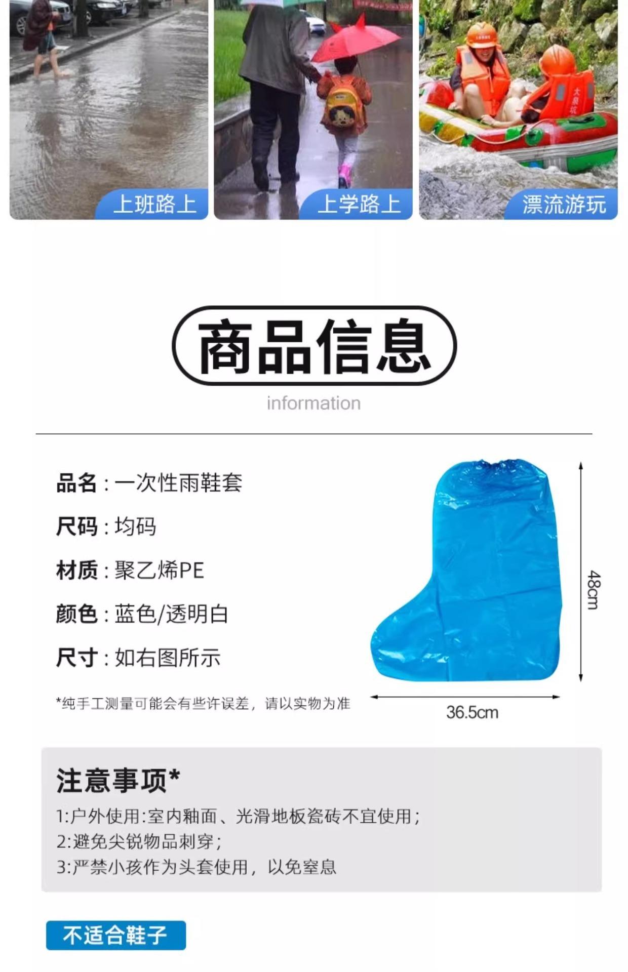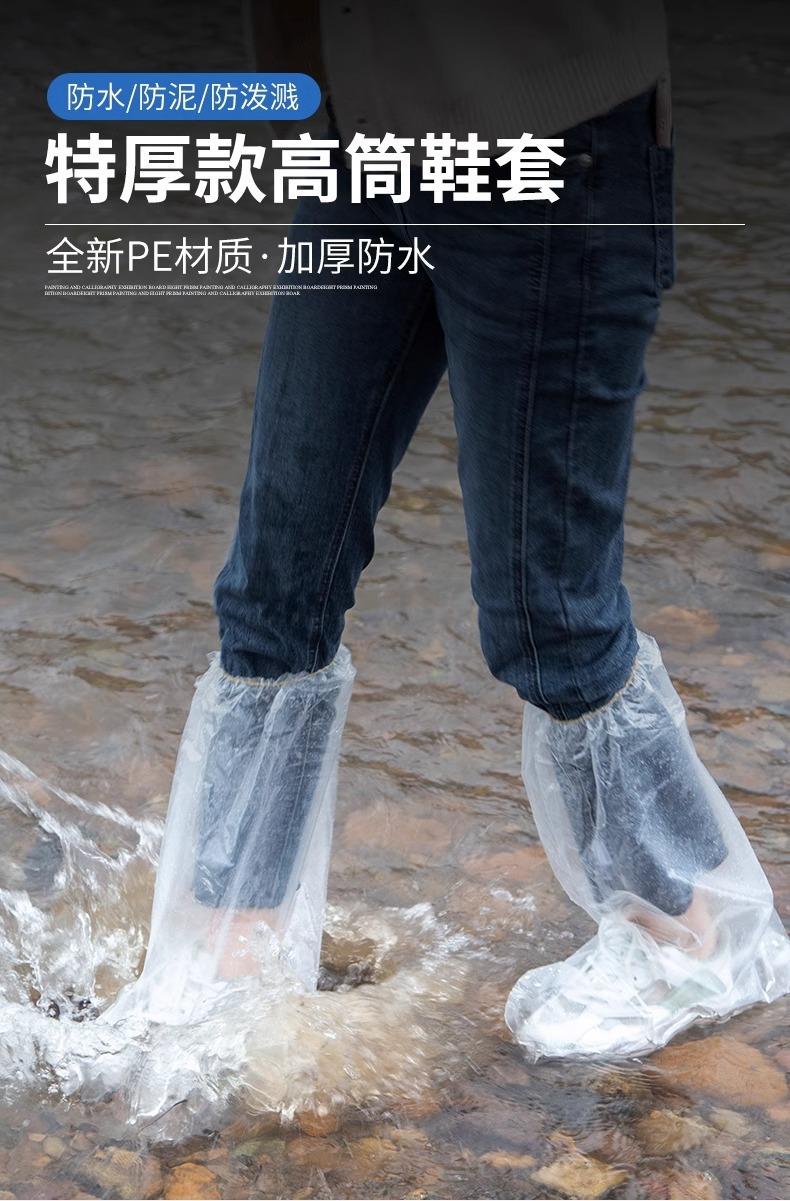 Botas de lluvia desechables, cubiertas para zapatos para días lluviosos, impermeables y antideslizantes, de plástico transparente, gruesas y resistentes al desgaste, cubiertas para pies a prueba de lluvia, tubo alto y tubo largo.