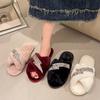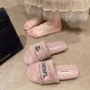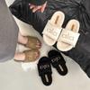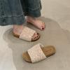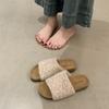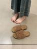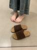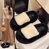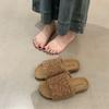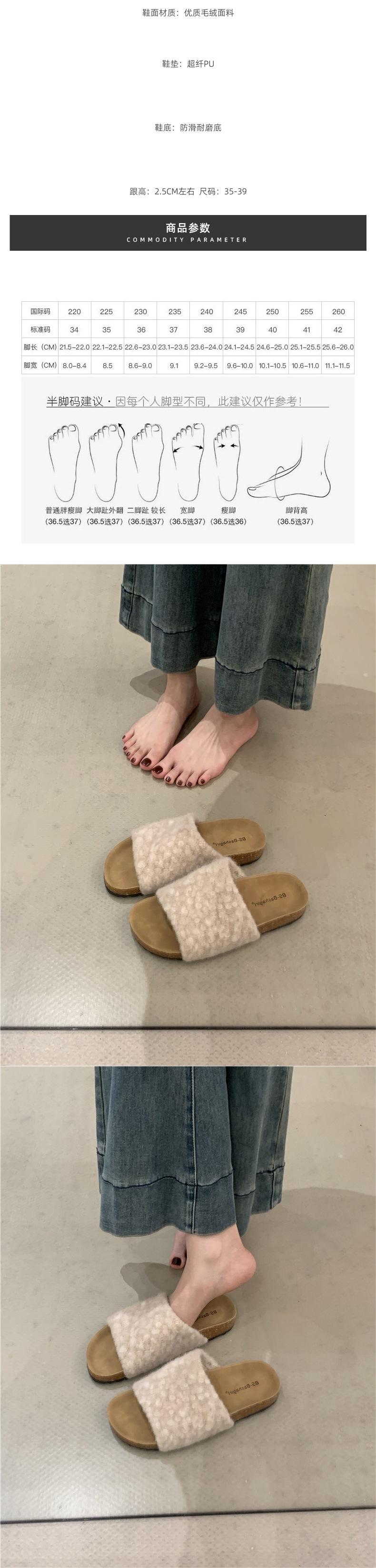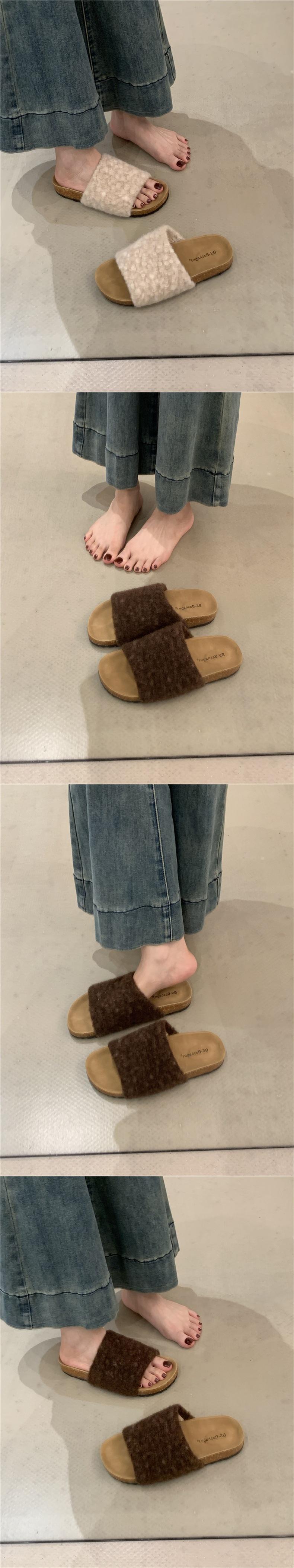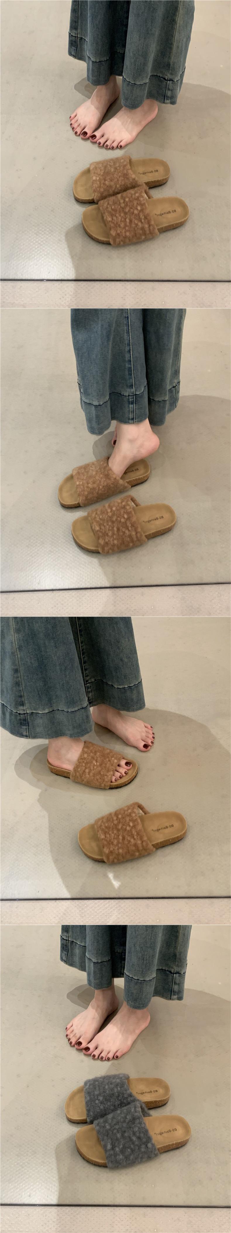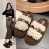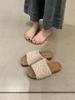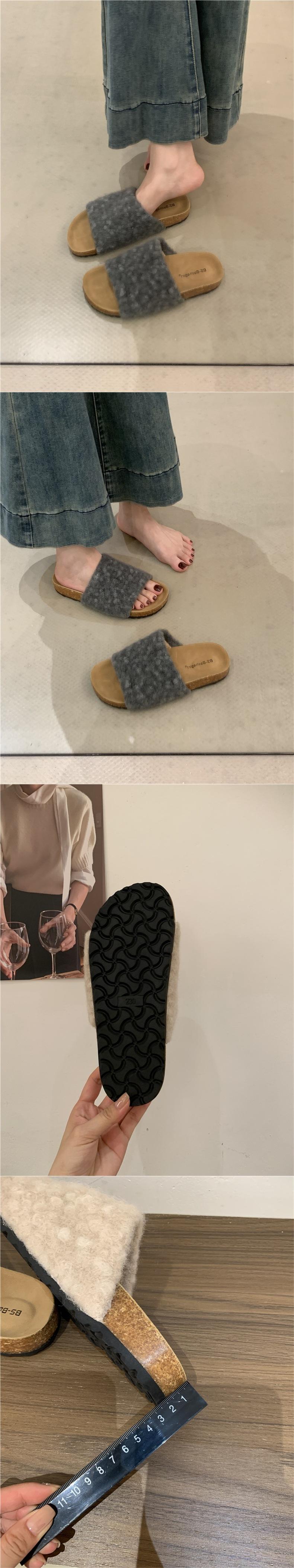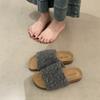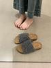 2025 Nuevas Pantuflas Difusas de Suela Gruesa para Mujer para Exterior Peludas de Una Tira para Casa Pantuflas de Algodón para Mujer Pantuflas Slip-On de Corcho para Mujer