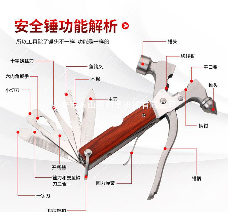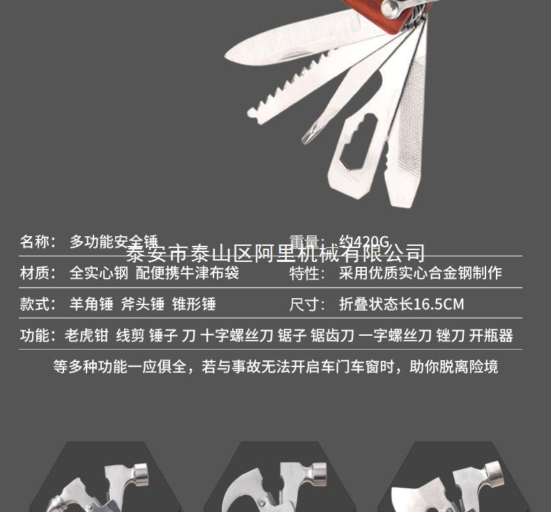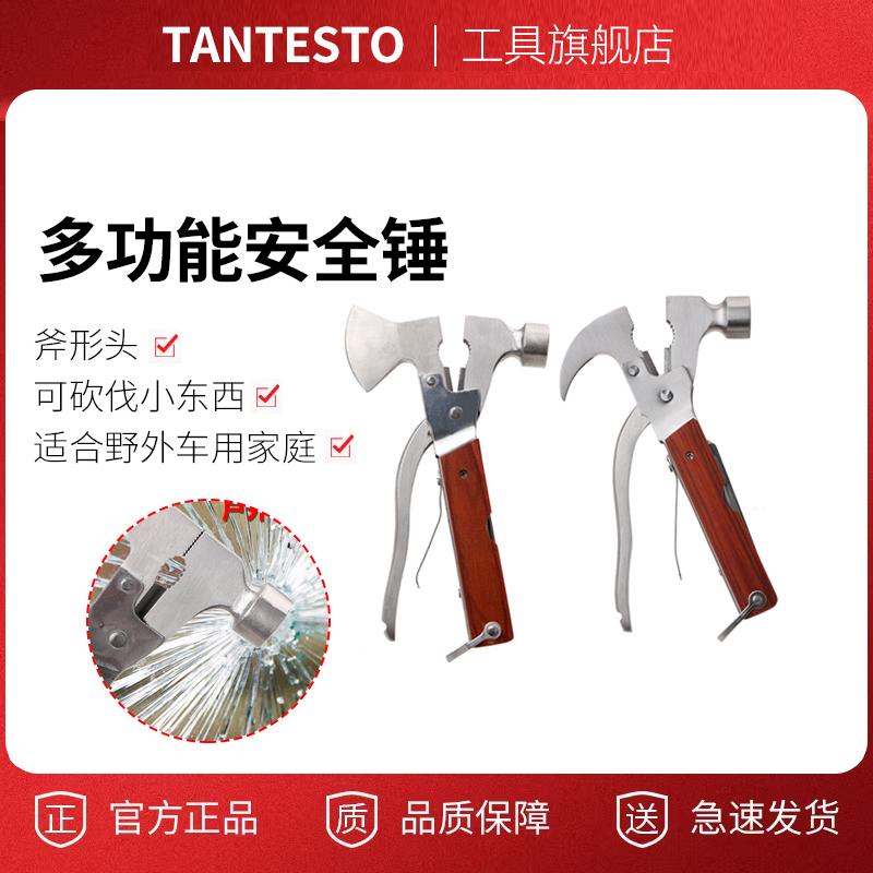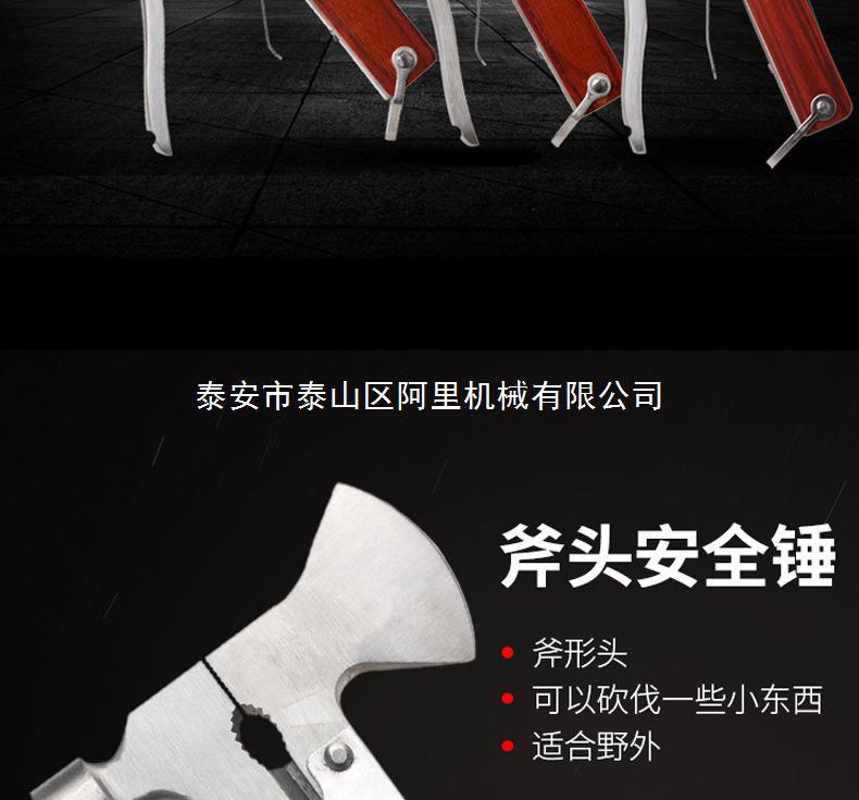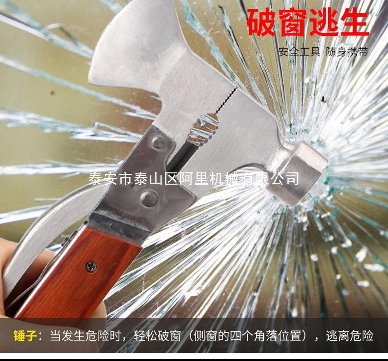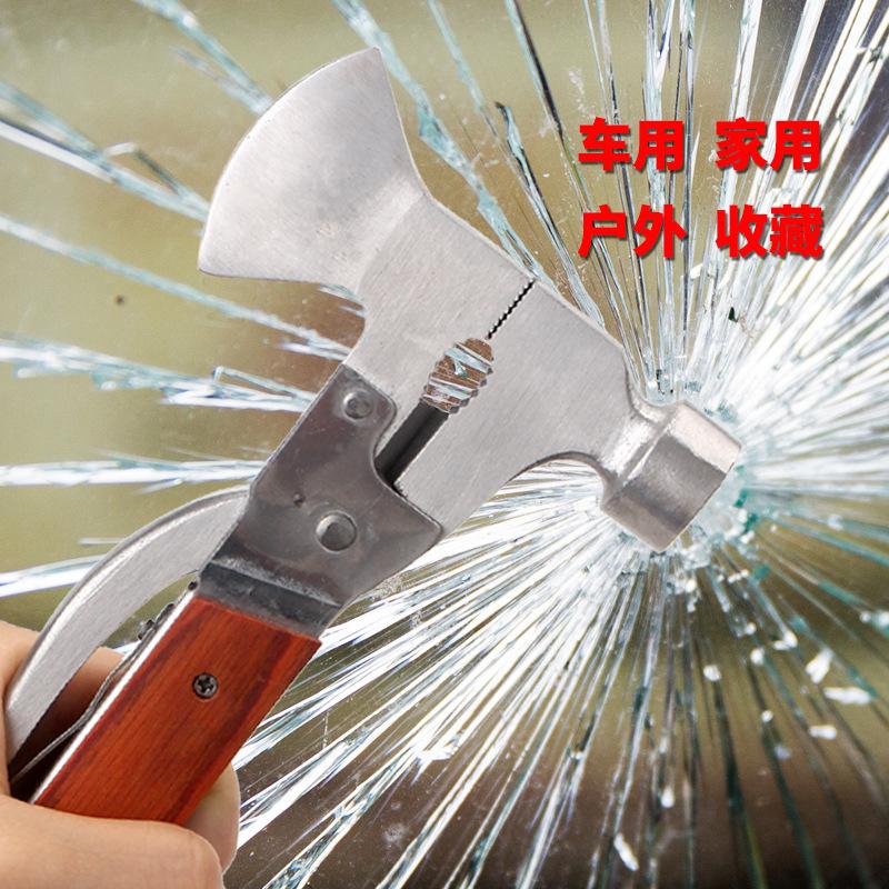 Martillo de seguridad multifuncional para escape de coche, rompecristales, mango de madera, acero inoxidable, martillo de seguridad, hacha, martillo de garra