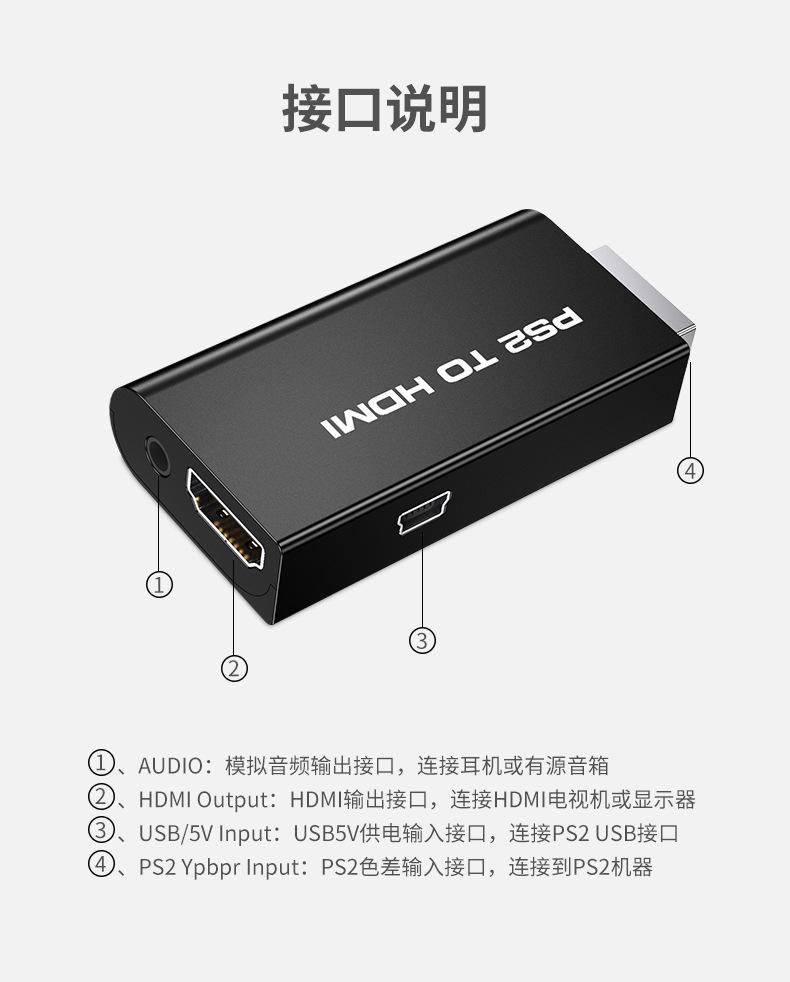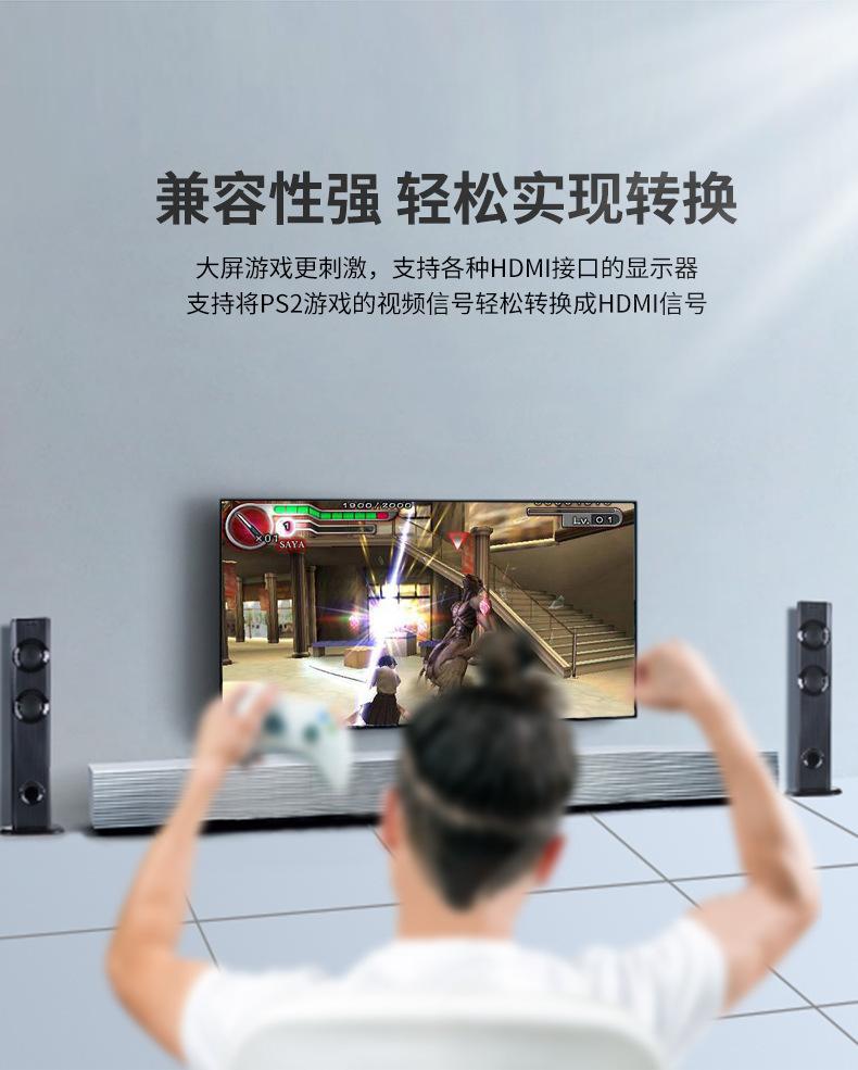 Adaptador de PS2 a HDMI Convertidor de Alta Definición de Audio y Video Dedicado para Juegos de PS2 Gameps2Tohdmi1080P