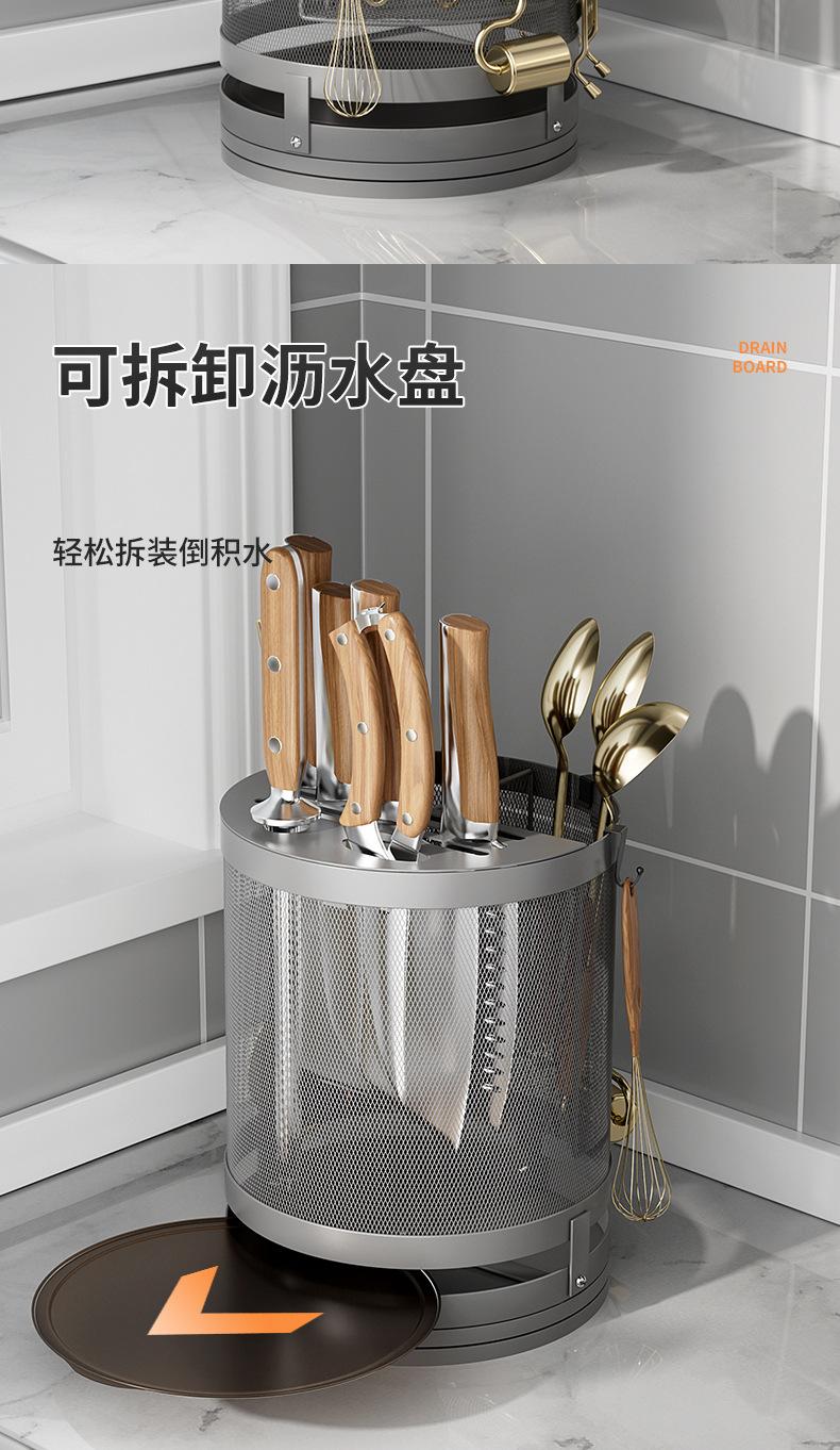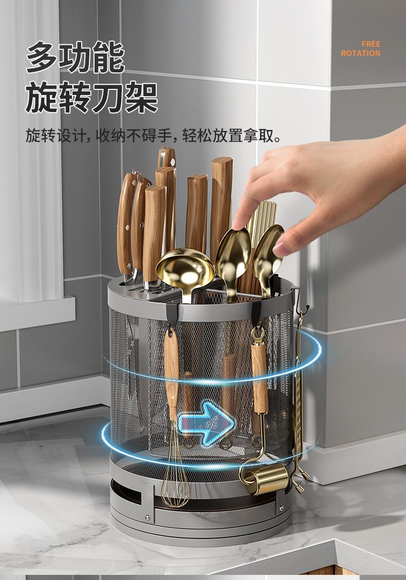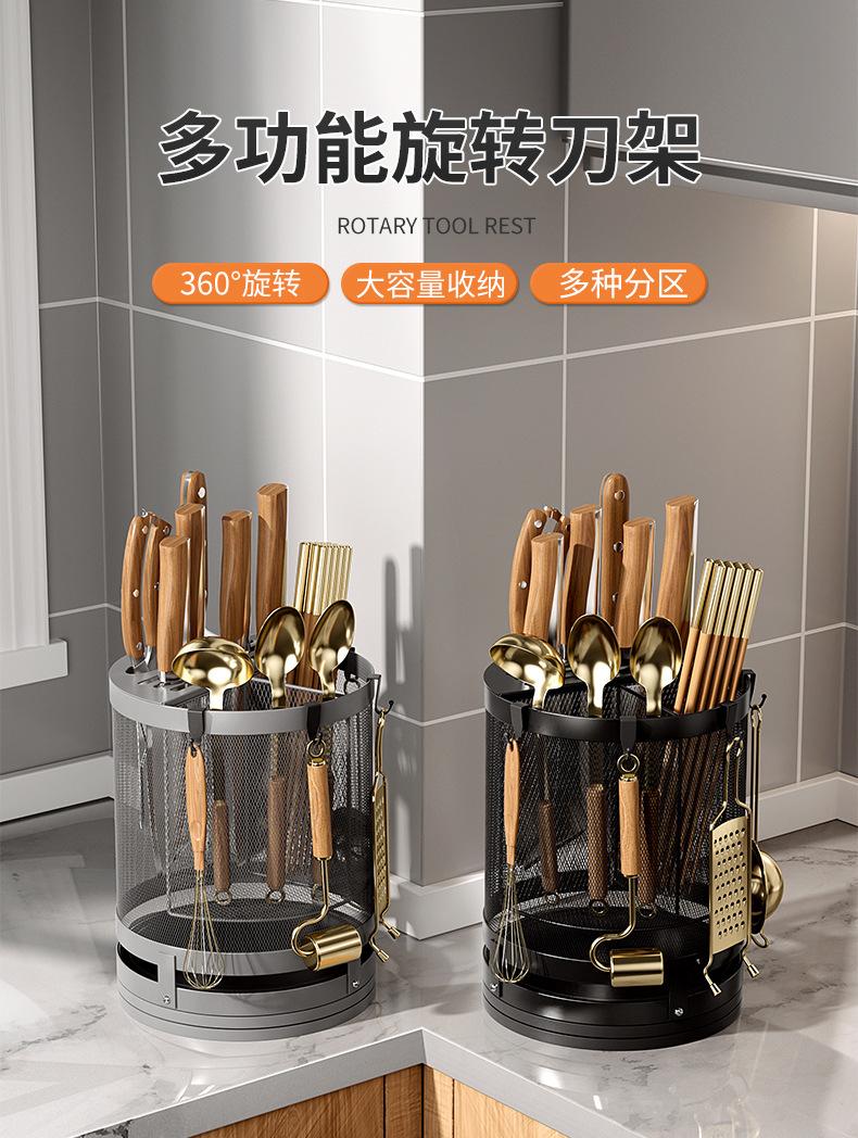 Portacuchillos Giratorio de Cocina de Acero Inoxidable Engrosado, Estante de Almacenamiento de Encimera, Soporte para Cuchillos y Palillos, Caja de Almacenamiento Multifuncional Integrada