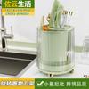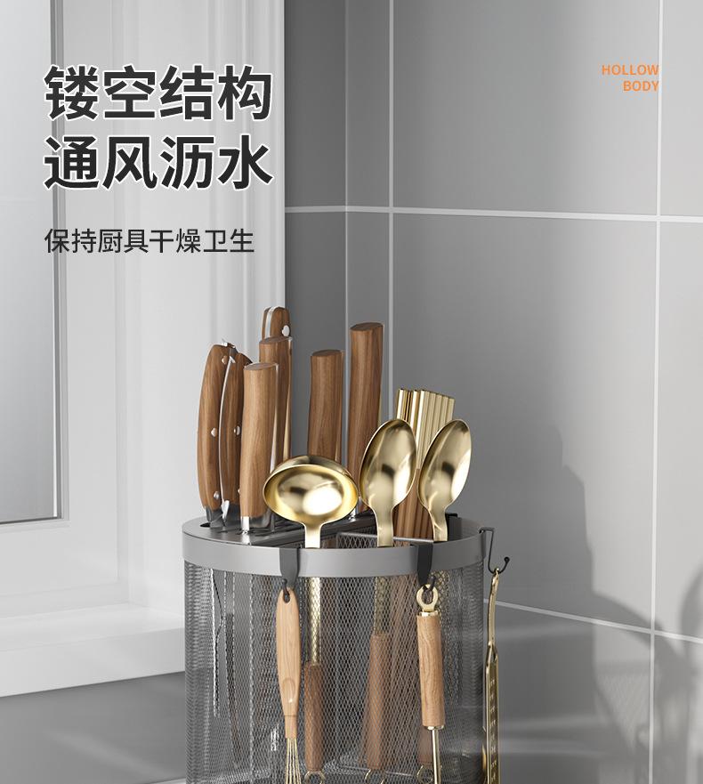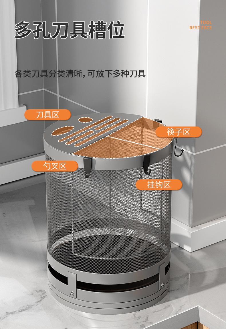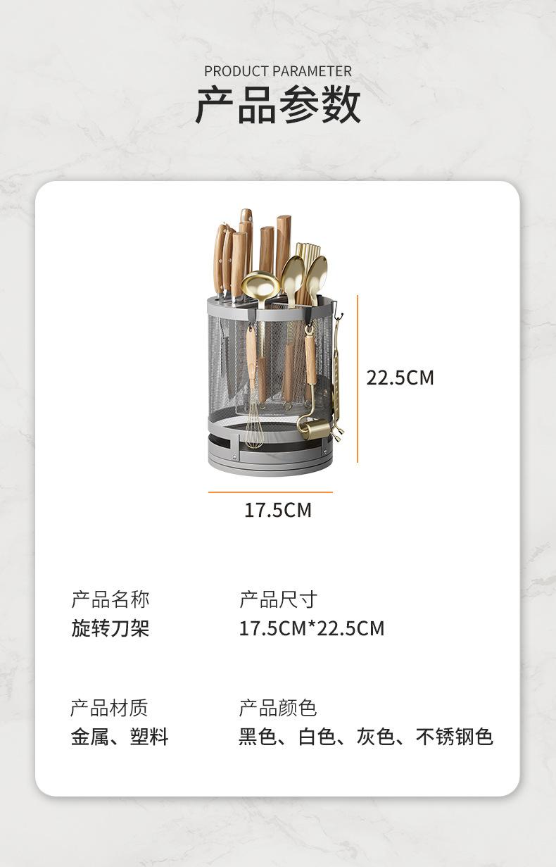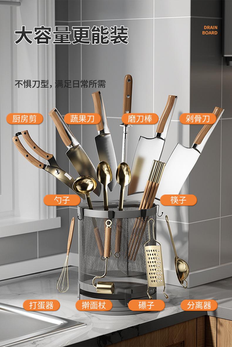 Portacuchillos Giratorio de Cocina de Acero Inoxidable Engrosado, Estante de Almacenamiento de Encimera, Soporte para Cuchillos y Palillos, Caja de Almacenamiento Multifuncional Integrada