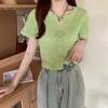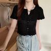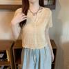 Cárdigan de punto de manga corta camiseta corta fina Verano 2024 Nuevo moda francesa suave cuello en V top versátil para mujer
