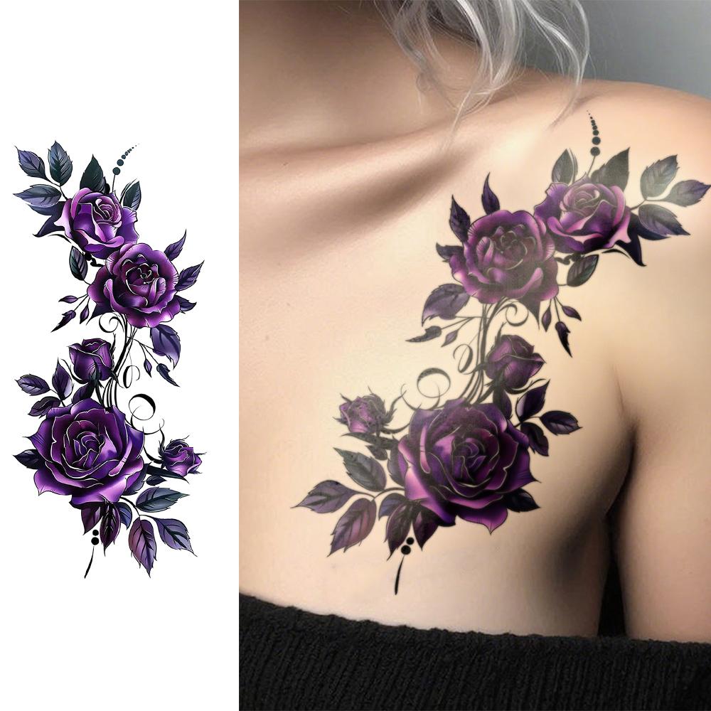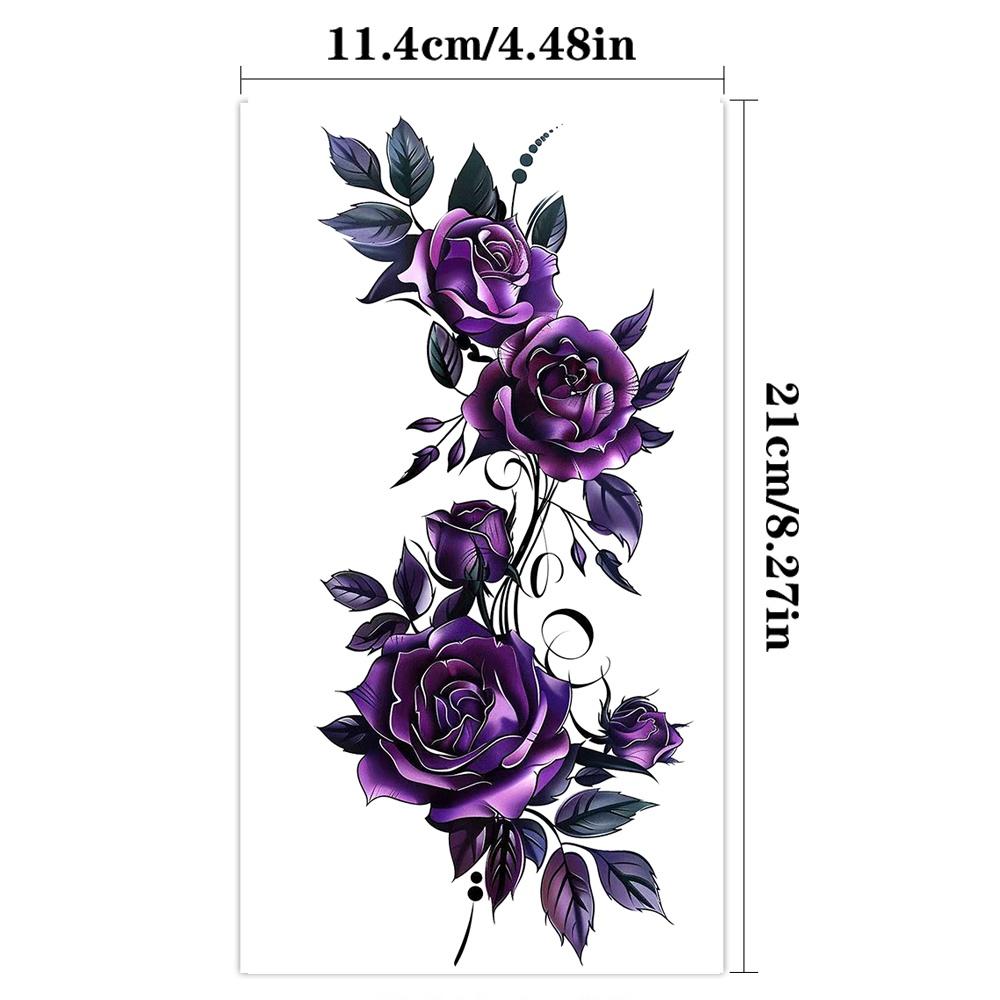 Tatuajes temporales coloridos y geniales con patrón floral de rosas, impermeables y de larga duración, adecuados para brazos, hombros, cuello, espalda, cintura y piernas de mujeres, fiestas de festivales, maquillaje corporal, cobertura de cicatrices, decoración corporal de moda diaria