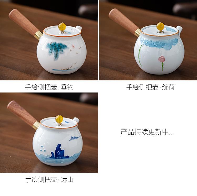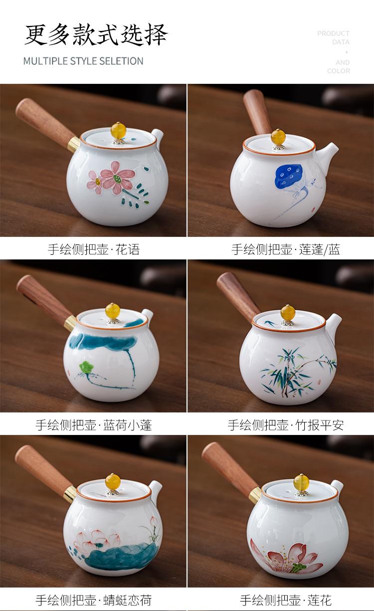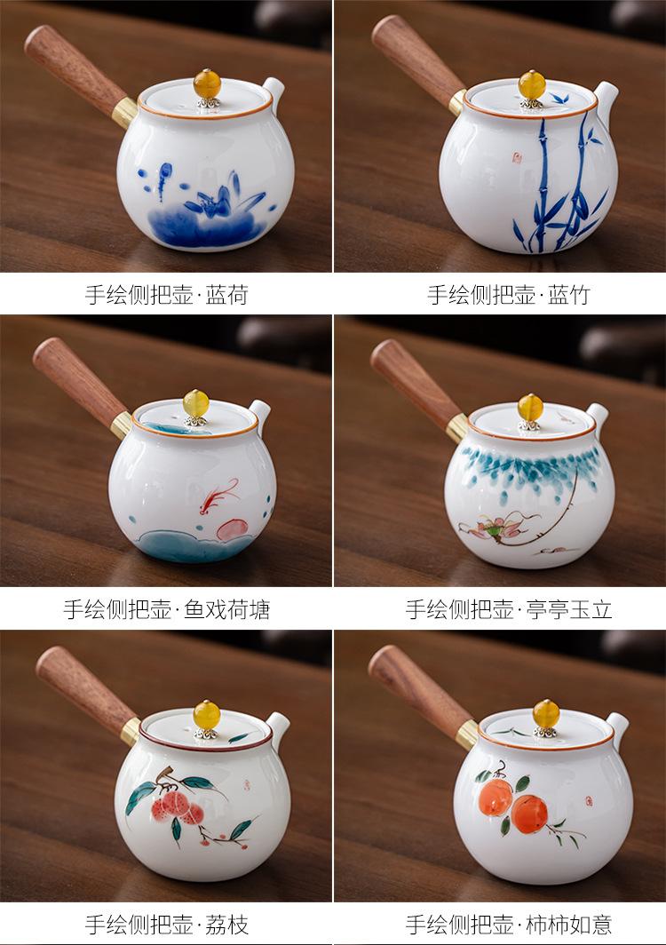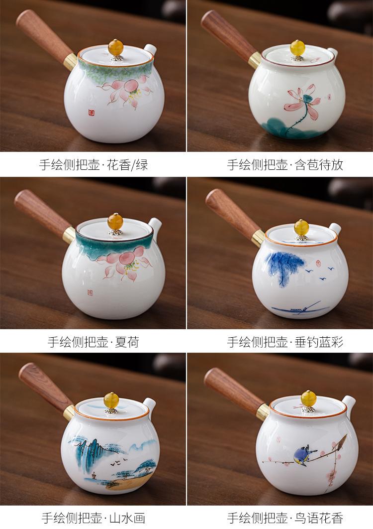 Compra Tetera de porcelana blanca jade con grasa de cordero pintada a mano, tetera individual hecha a mano con asa lateral, tetera Xishi, juego de té de kung fu, tetera al por mayor en Joom.pro