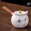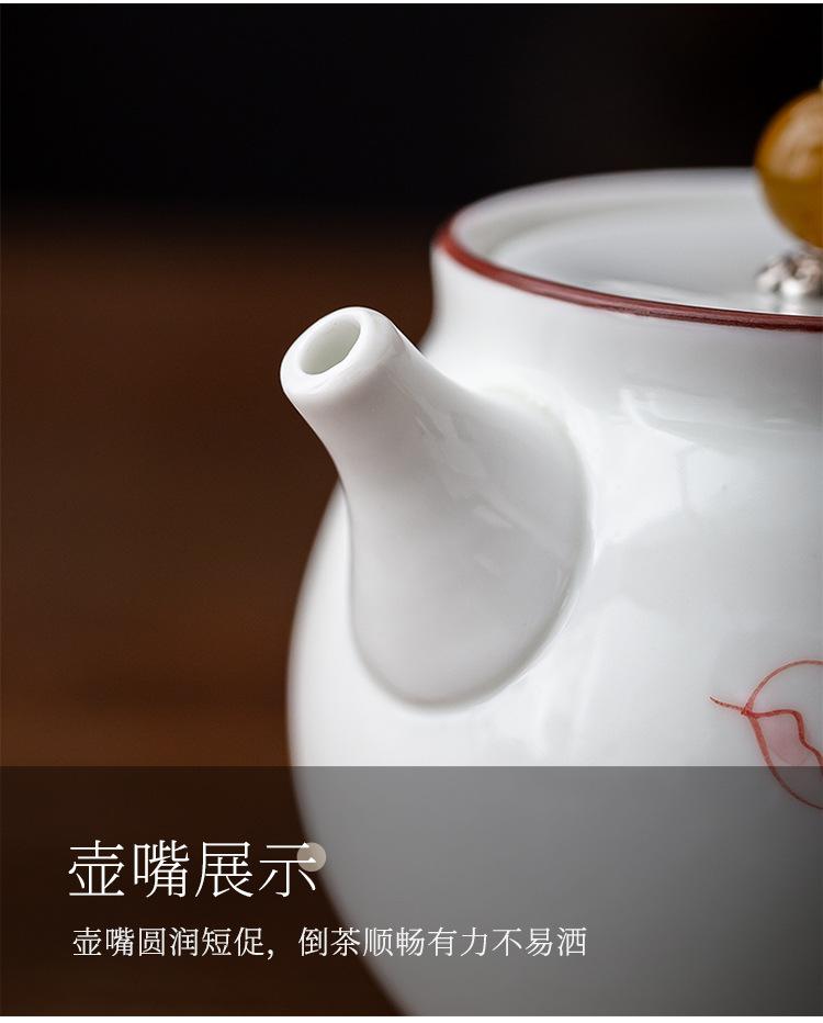 Tetera de porcelana blanca jade con grasa de cordero pintada a mano, tetera individual hecha a mano con asa lateral, tetera Xishi, juego de té de kung fu, tetera