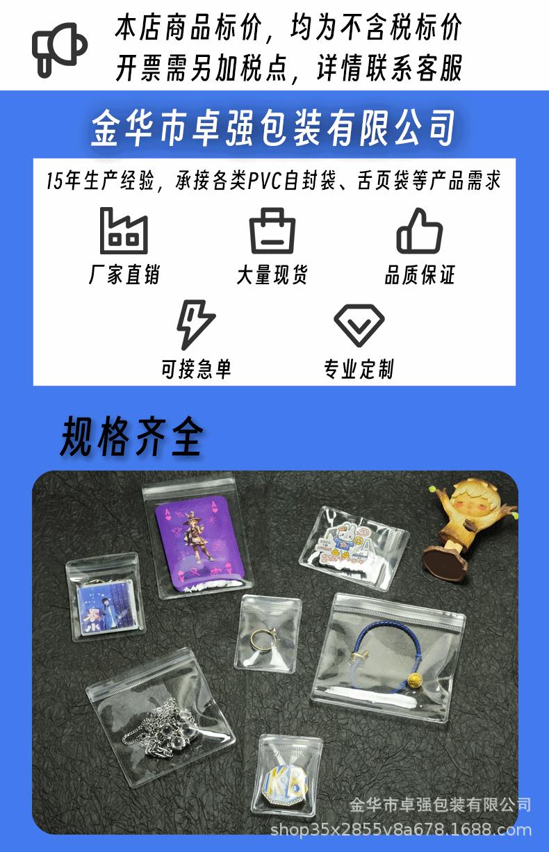 Bolsa Autoadhesiva de PVC Embalaje de Plástico Bolsillo con Cierre para Joyería Almacenamiento de Joyería Bolsa de Joyería Transparente Pinza