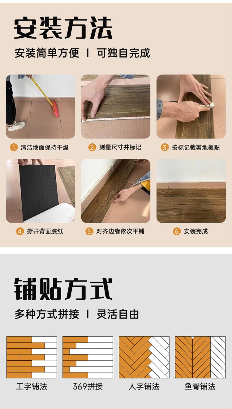 Adhesivos de Piso de PVC Autoadhesivos Cuero de Piso Hogar Piso de Cemento Recto Adhesivos Tapetes de Plástico para Piso Cadena de Suministro de Exportación Cadena