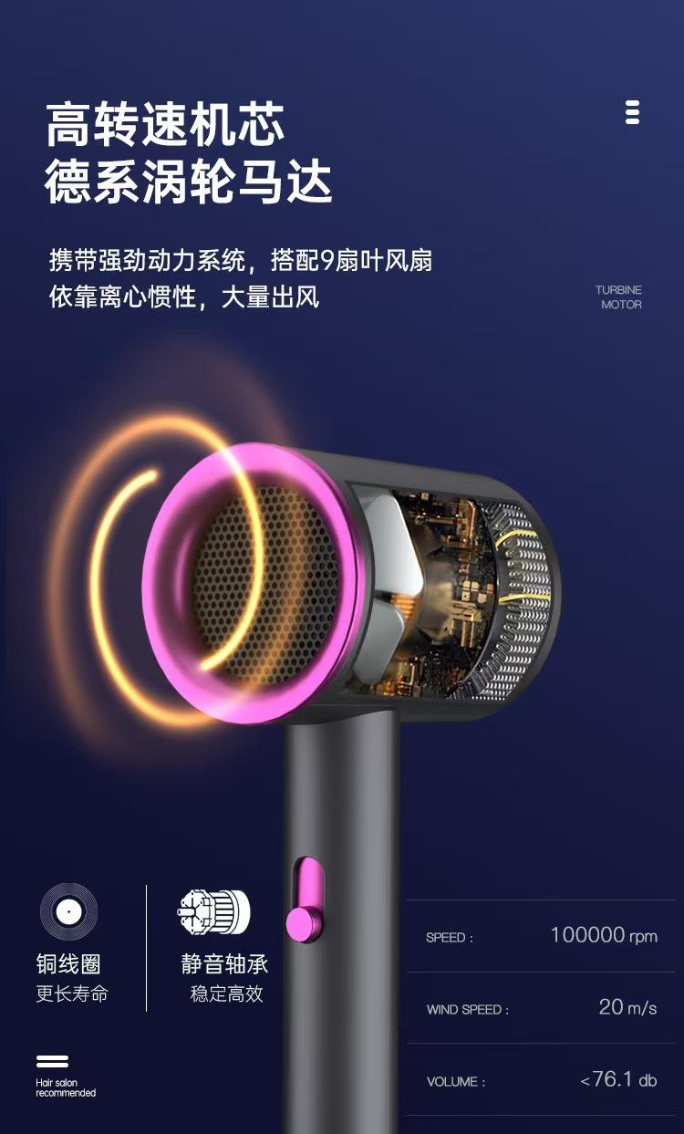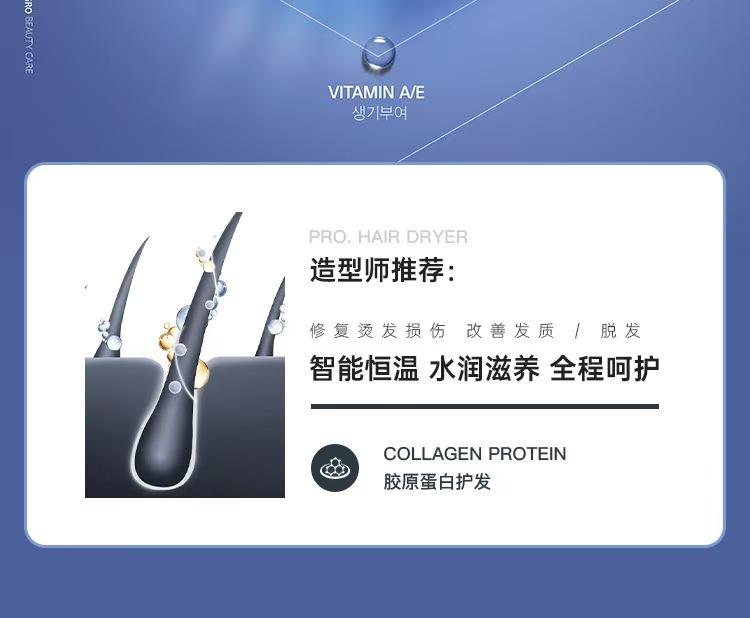 Blu-ray, negative ion, Constant temperature hair care, alternating hot and cold wind