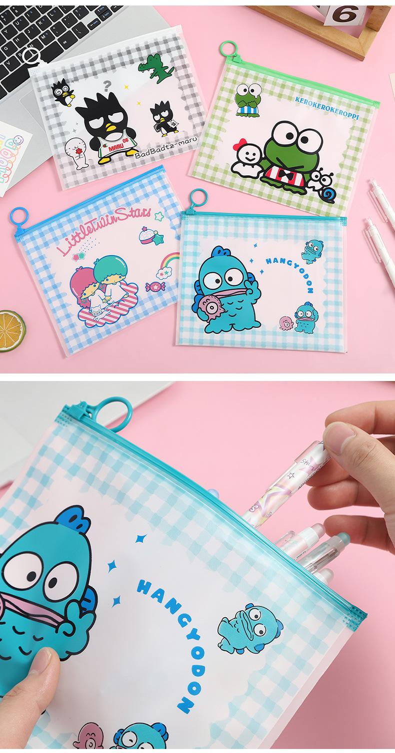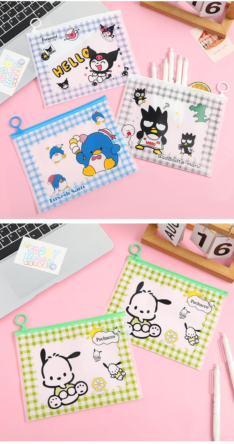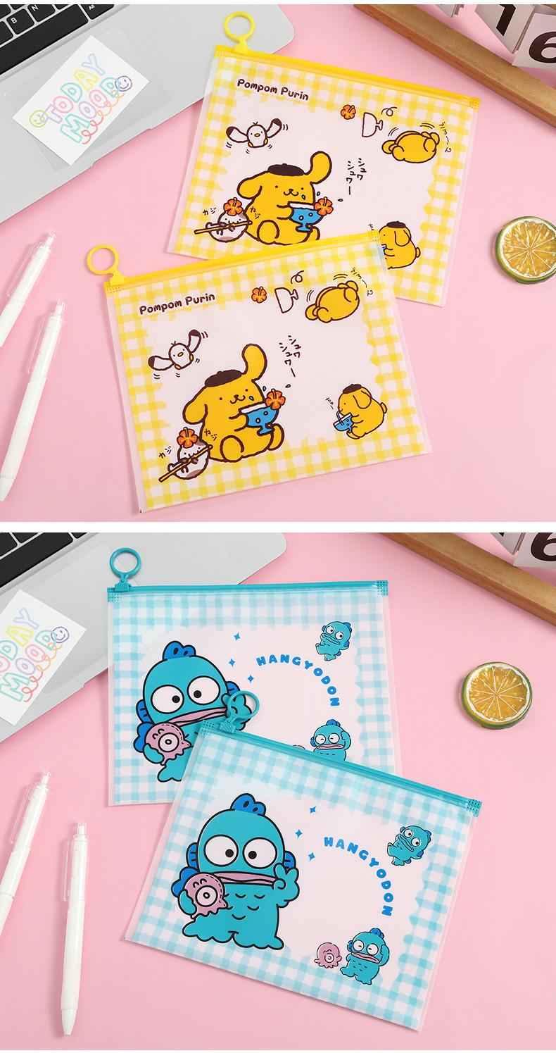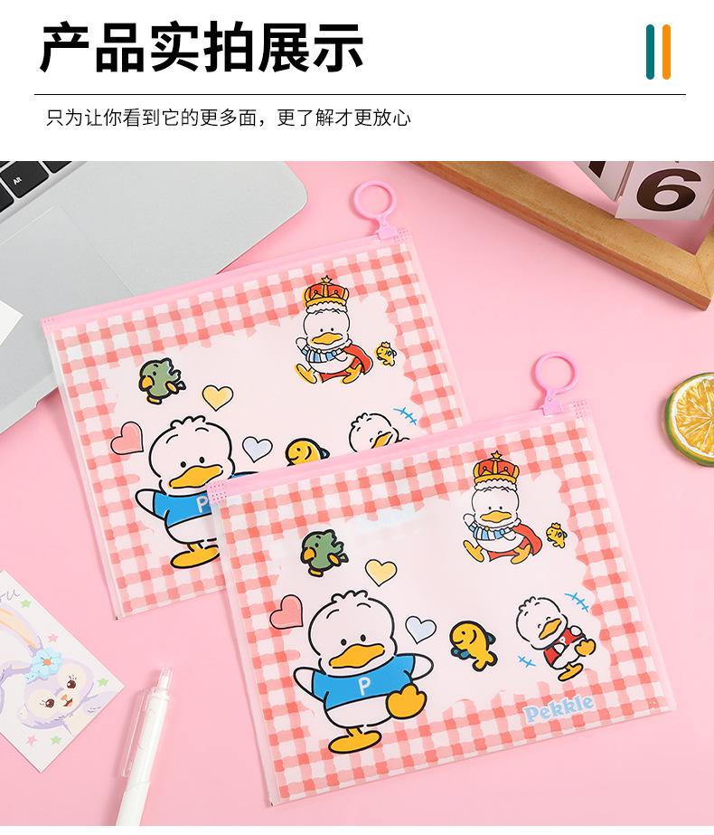 Bolsa de plástico fresca de dibujos animados con cremallera, linda bolsa para archivos de estudiante de aspecto elegante, gran capacidad, material, papelería, bolsa ziplock