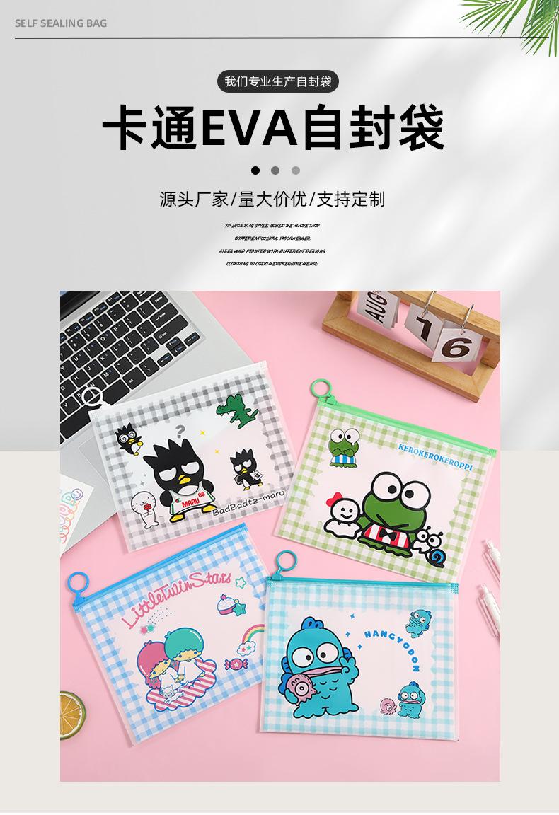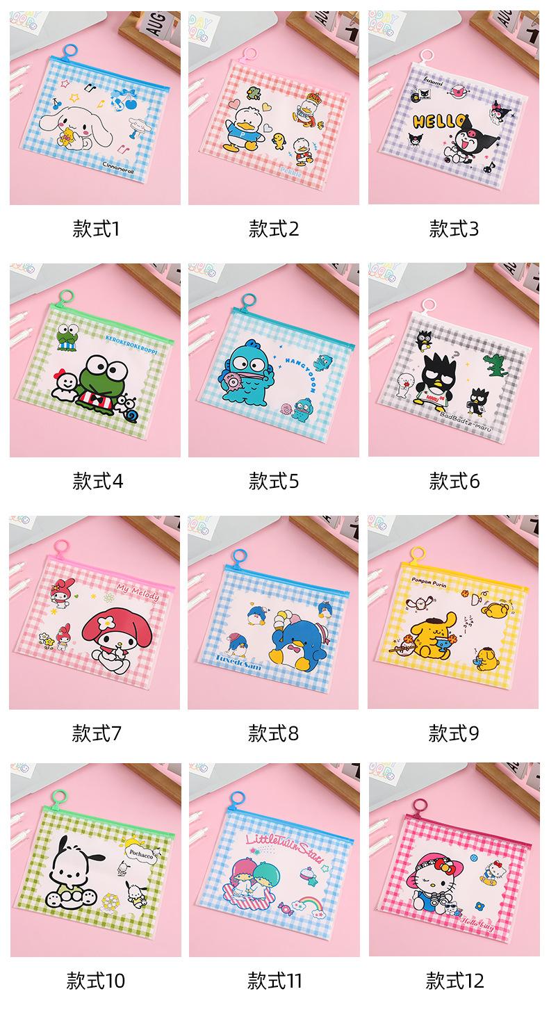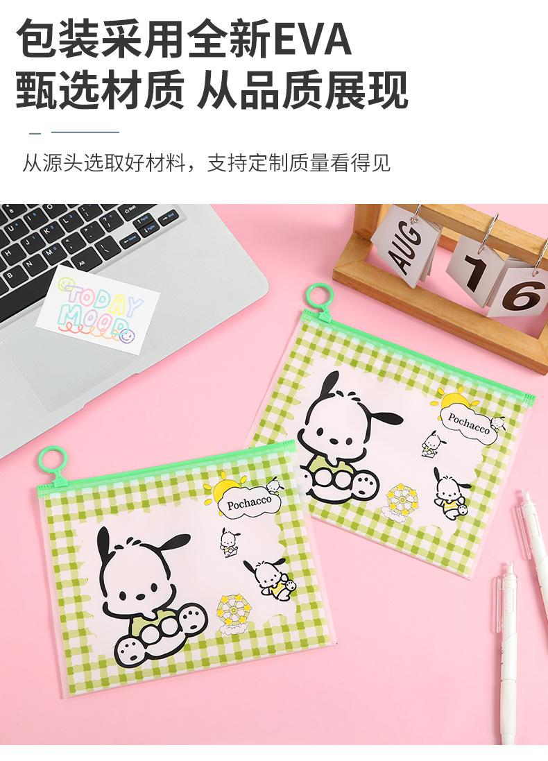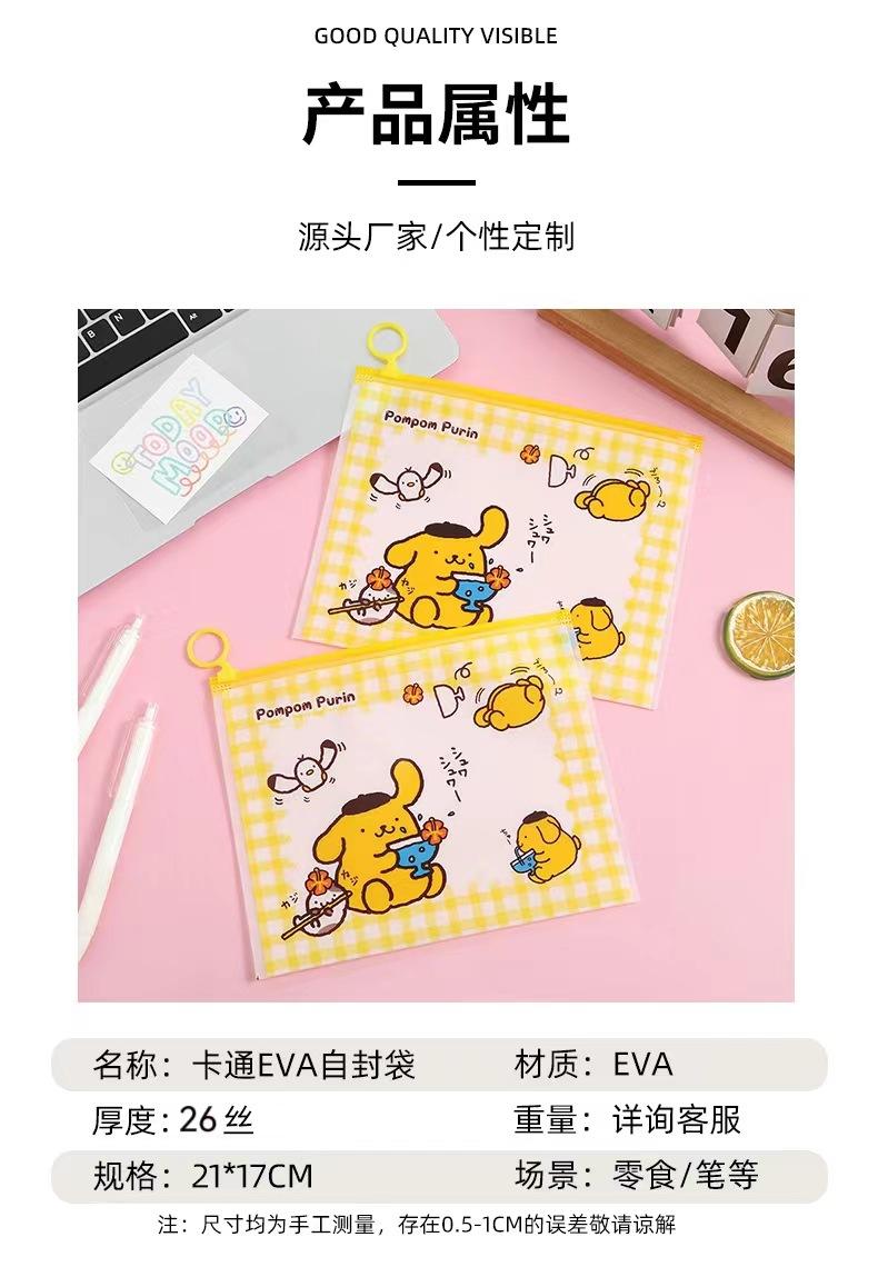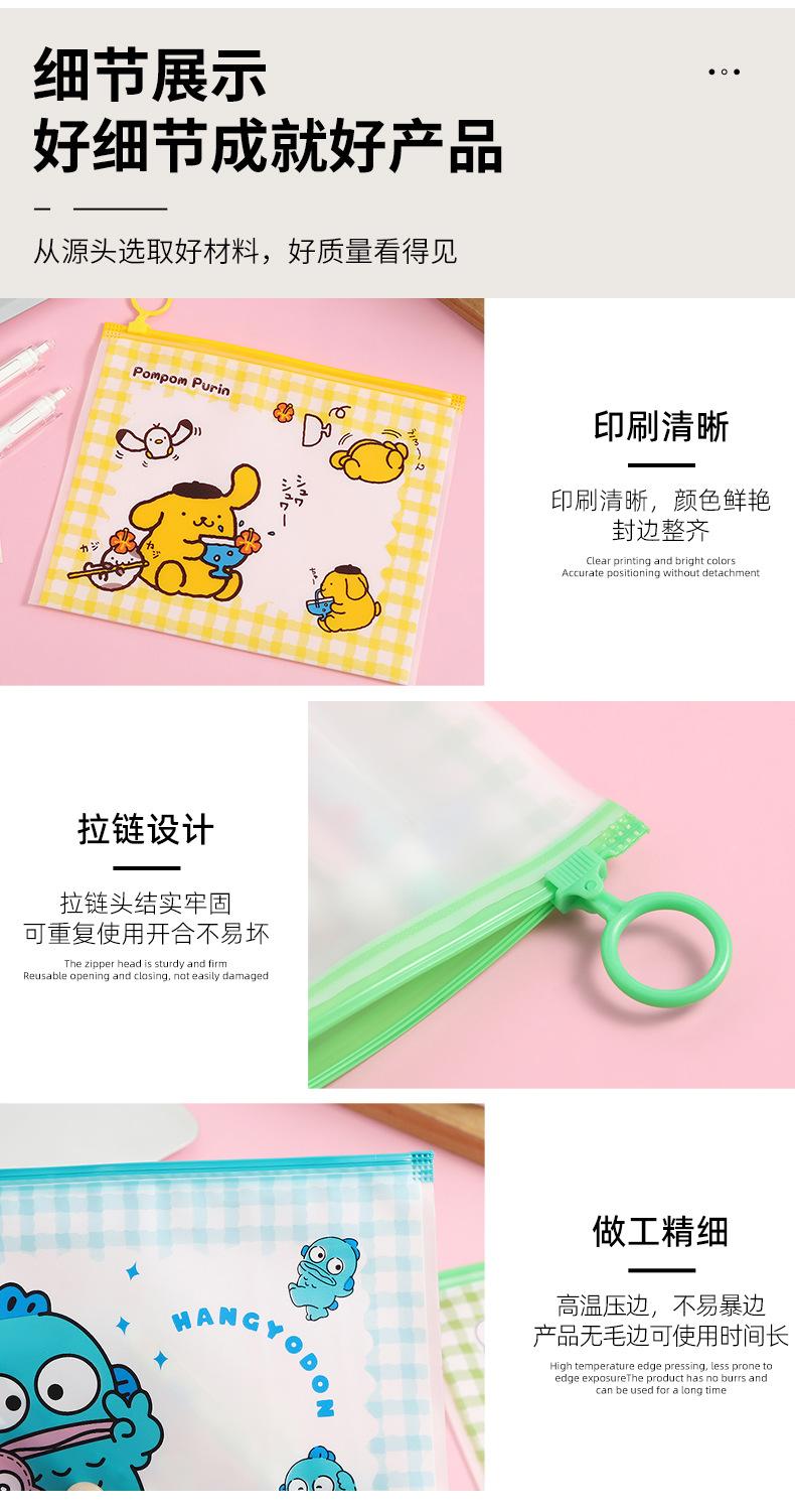 Bolsa de plástico fresca de dibujos animados con cremallera, linda bolsa para archivos de estudiante de aspecto elegante, gran capacidad, material, papelería, bolsa ziplock