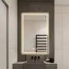 Espejo Inteligente de Baño LED Montado en la Pared Cuadrado Táctil Desempañador Pantalla Montado en la Pared Espejo Cosmético Multifuncional