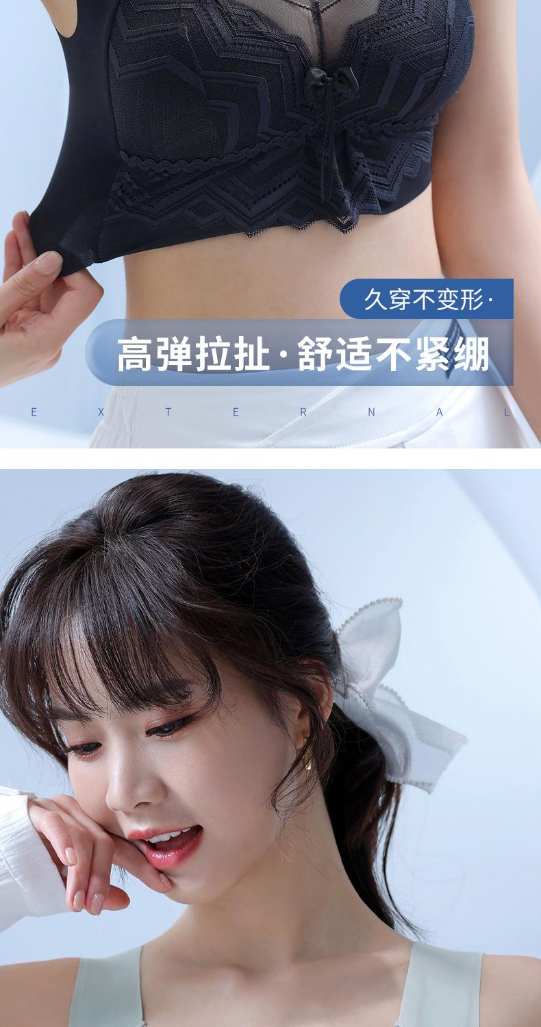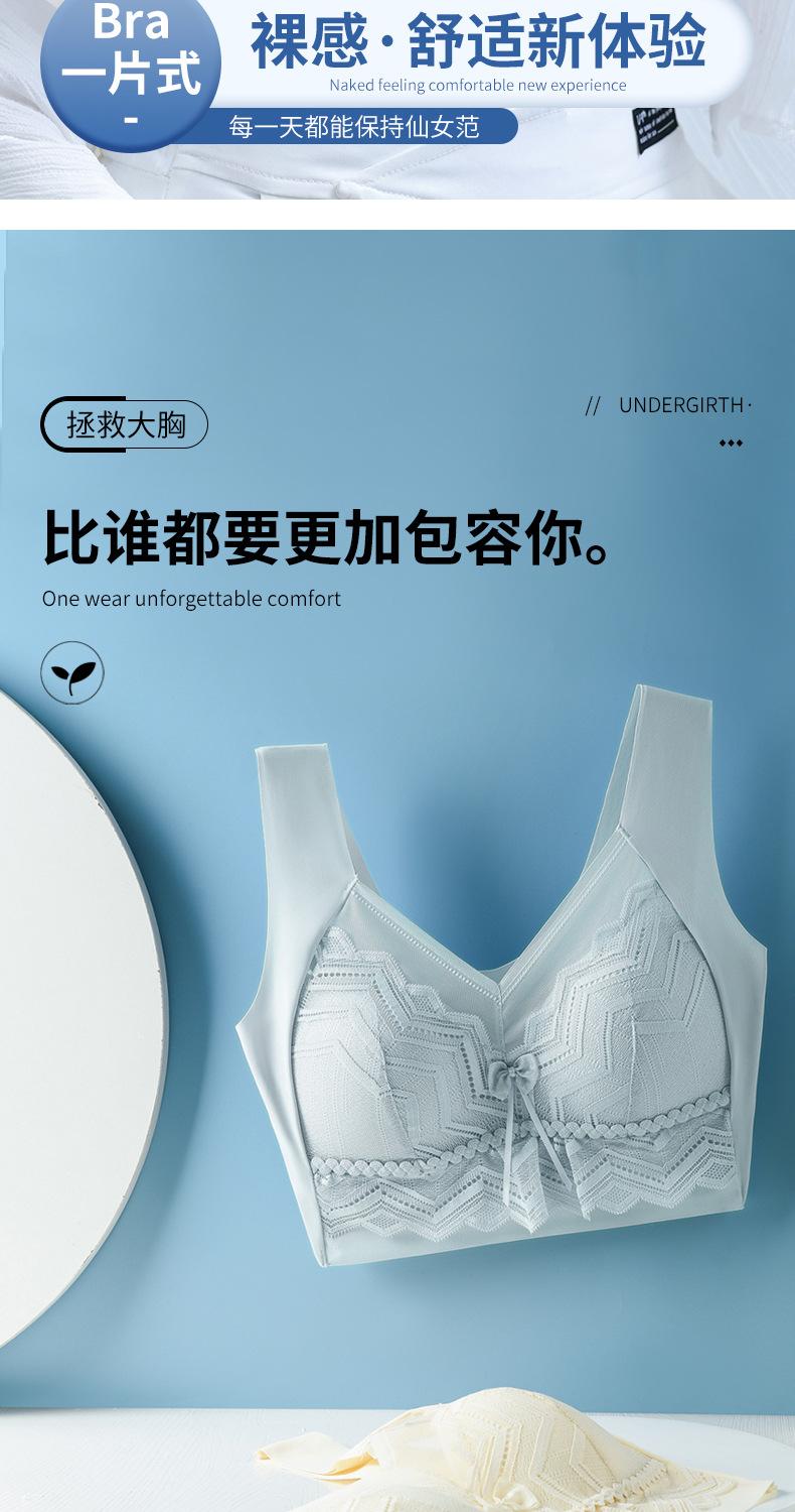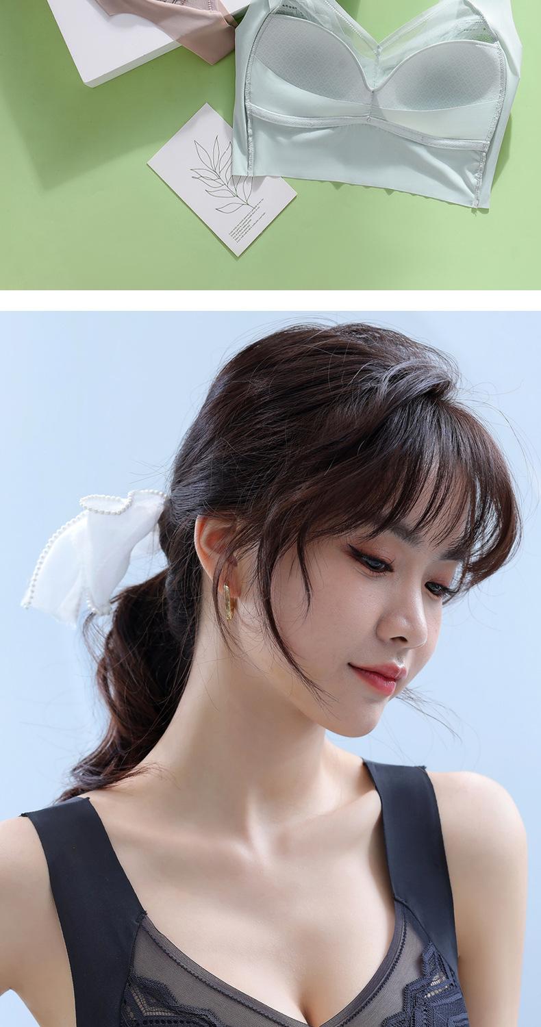 Talla grande Ropa interior sin costuras de seda de hielo para mujer, sin varillas, soporte superior, push up, delgada, pecho grande, muestra pequeño, espalda bonita, sujetador limpiable
