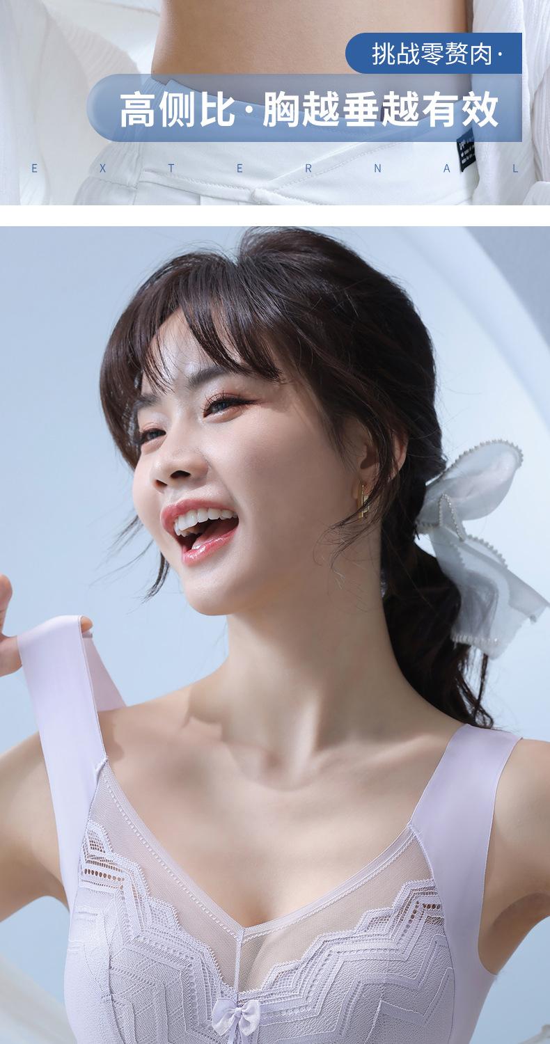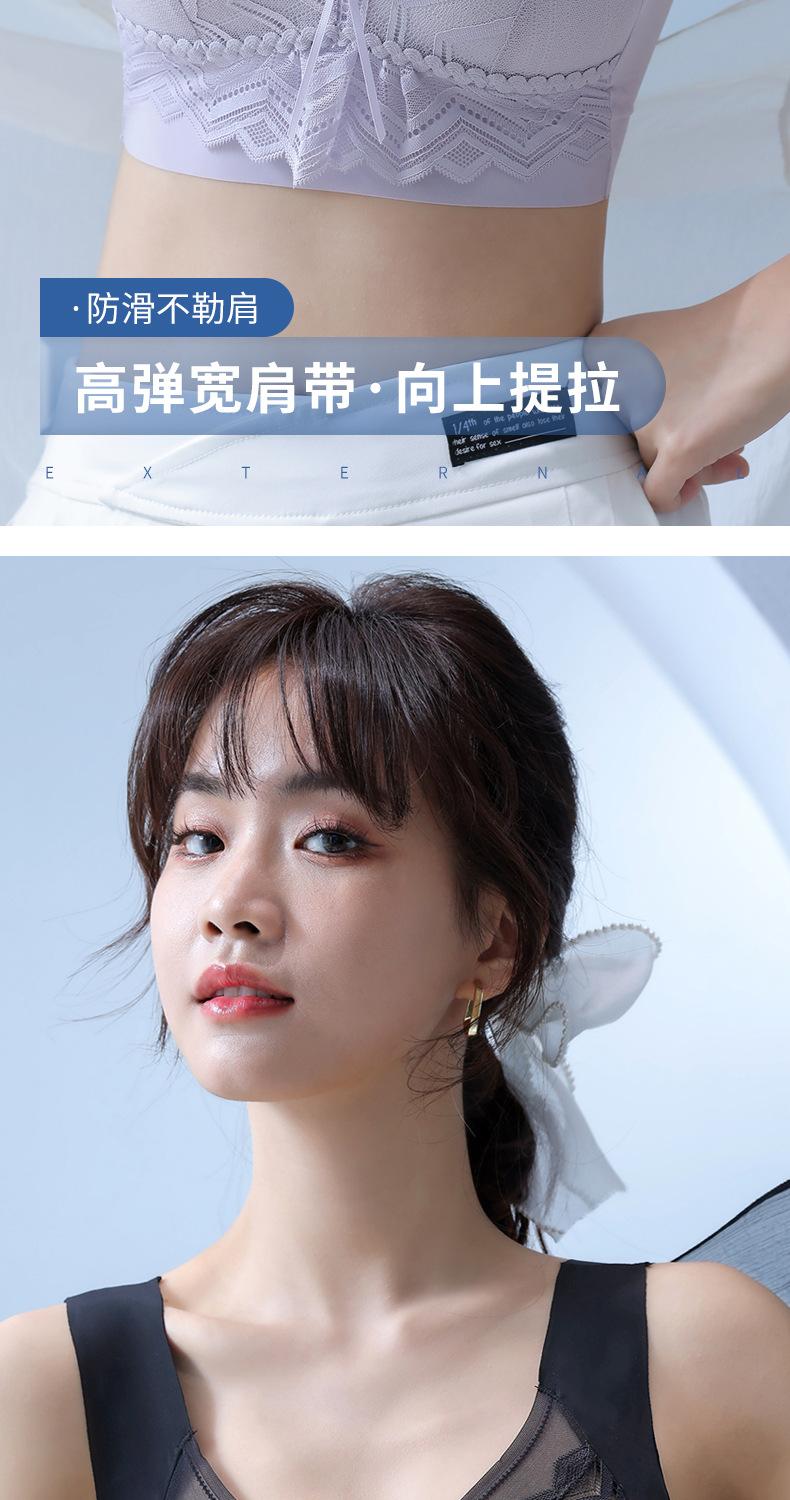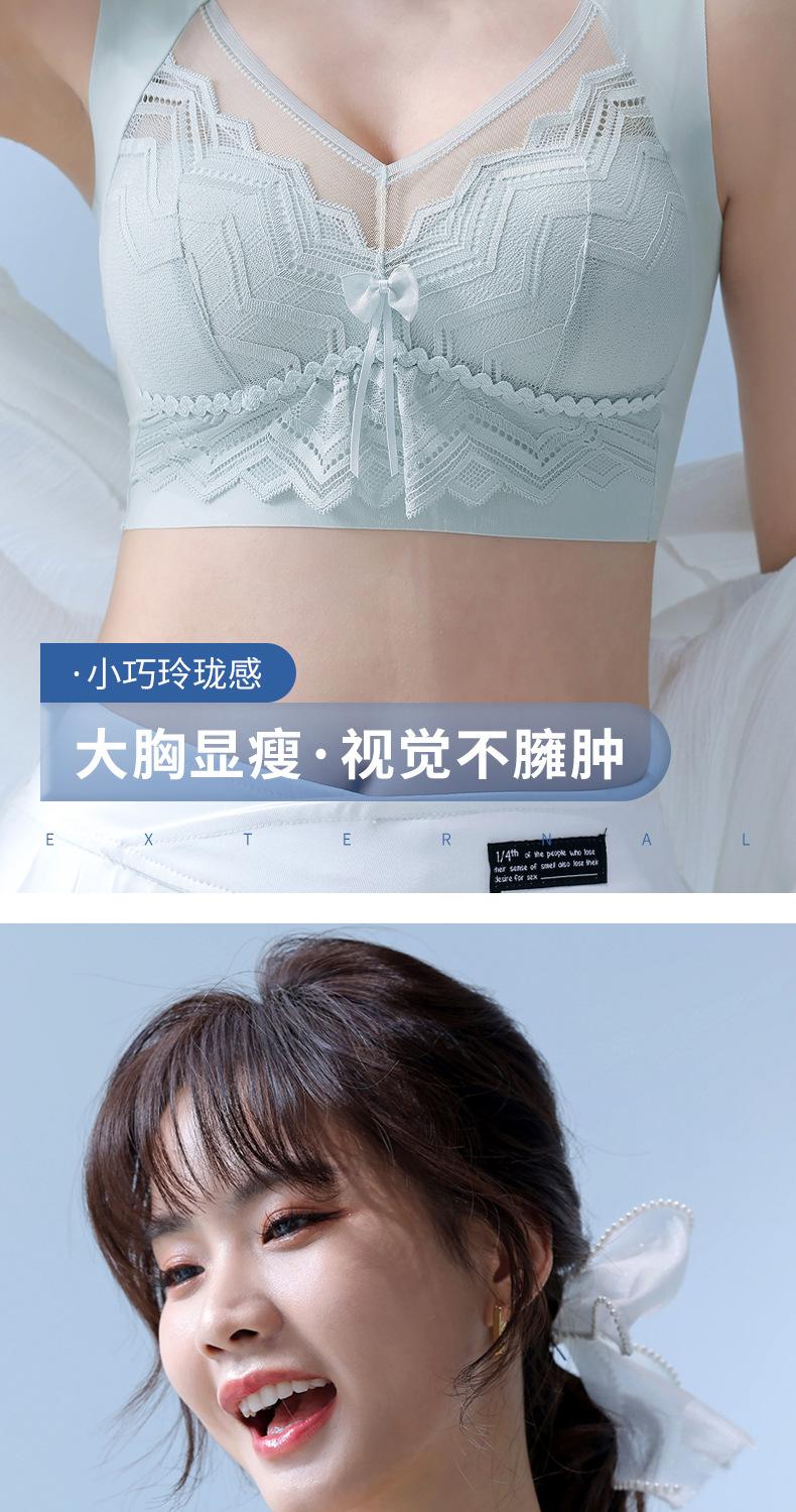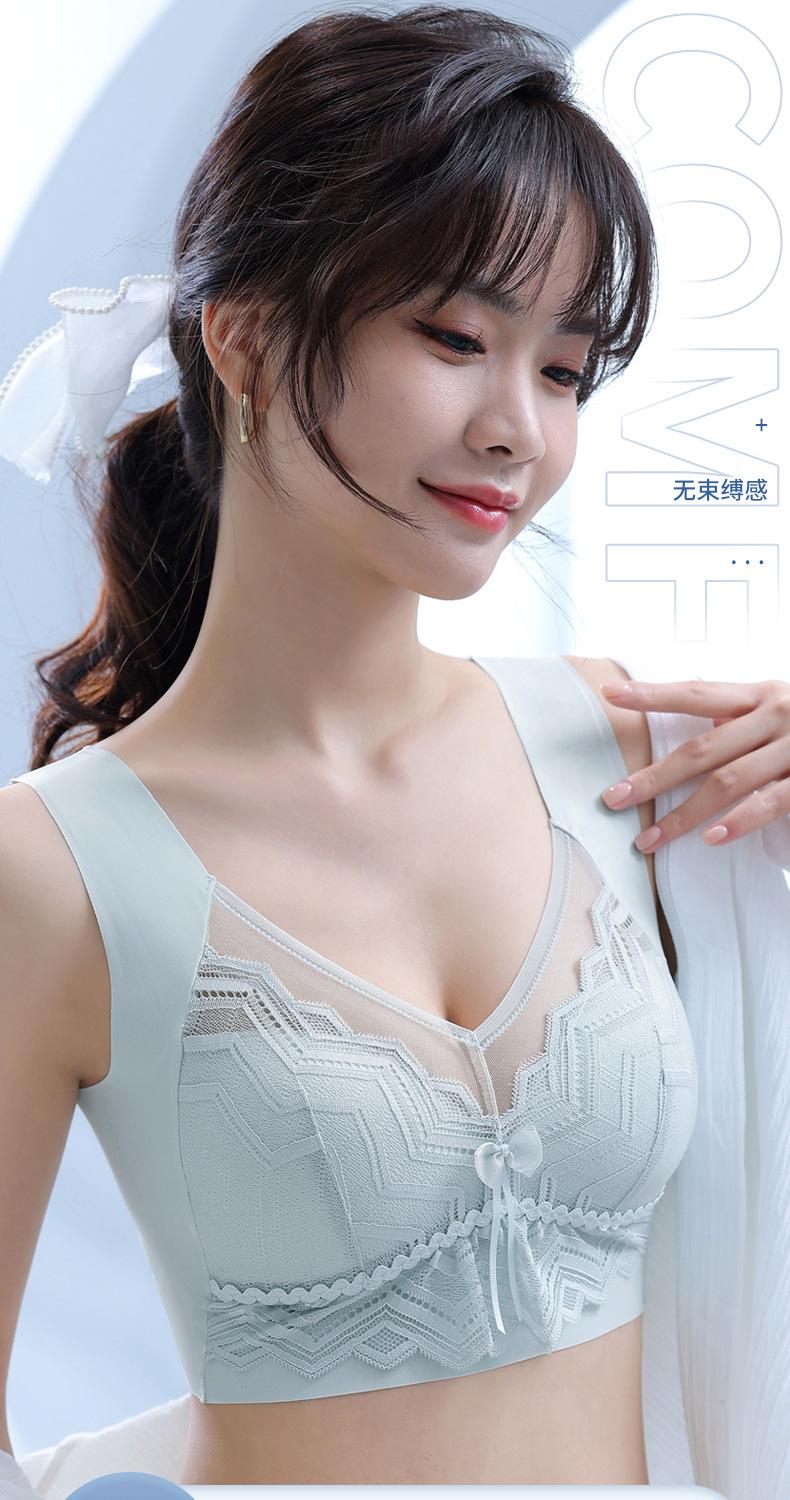 Talla grande Ropa interior sin costuras de seda de hielo para mujer, sin varillas, soporte superior, push up, delgada, pecho grande, muestra pequeño, espalda bonita, sujetador limpiable