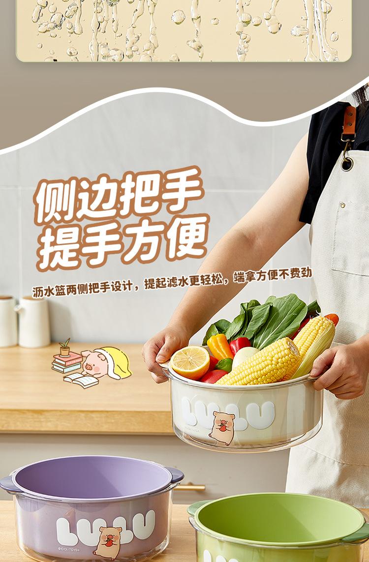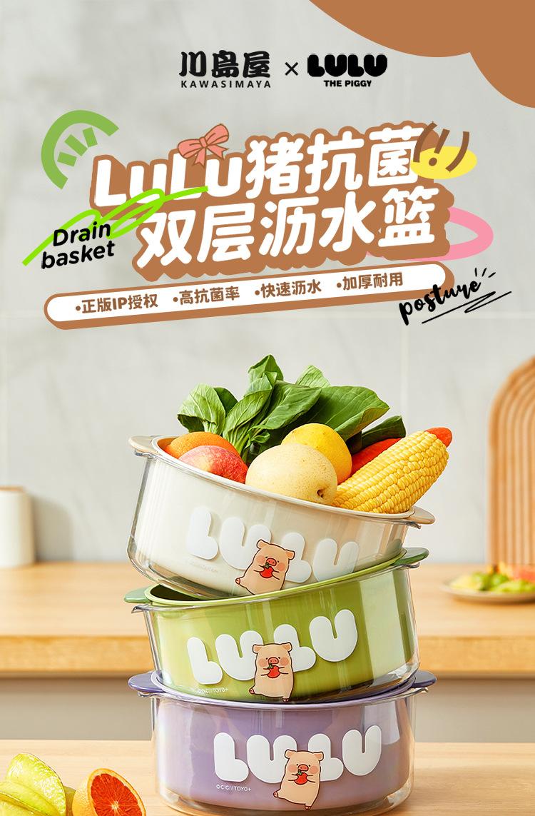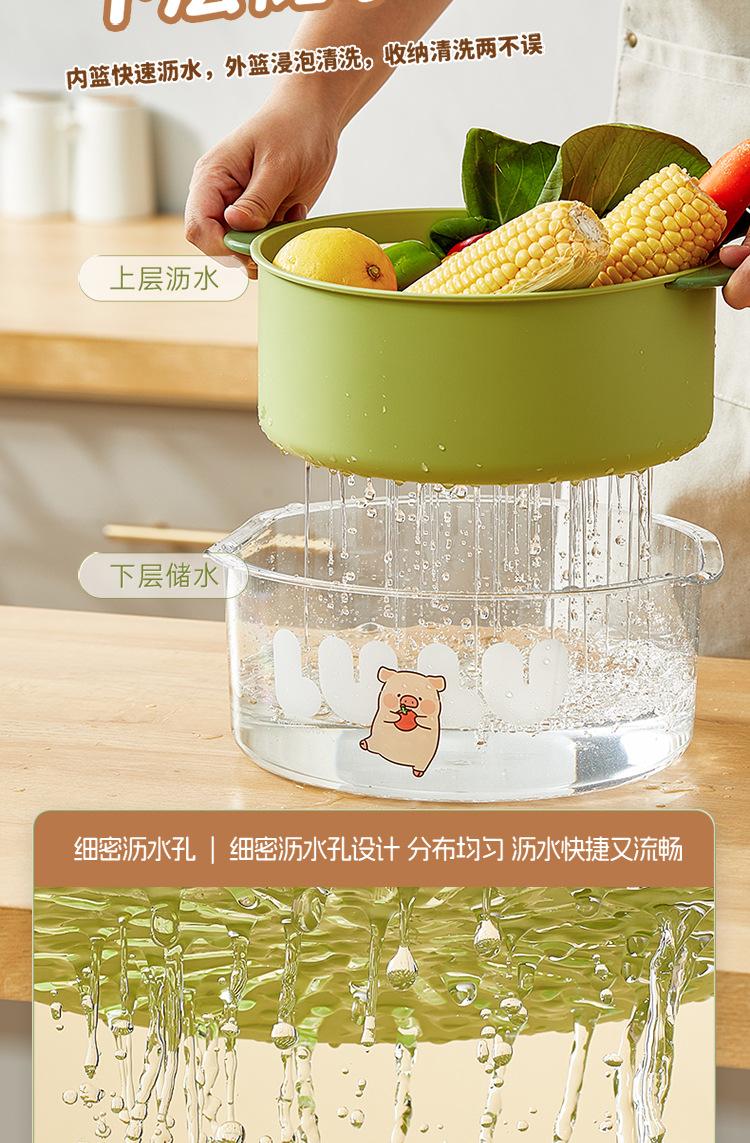 [99.9% antibacterial] lulu pig double-layer drain basket (green)