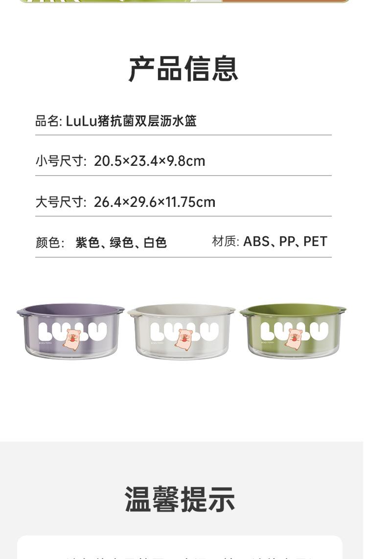 [99.9% antibacterial] lulu pig double-layer drain basket (purple)