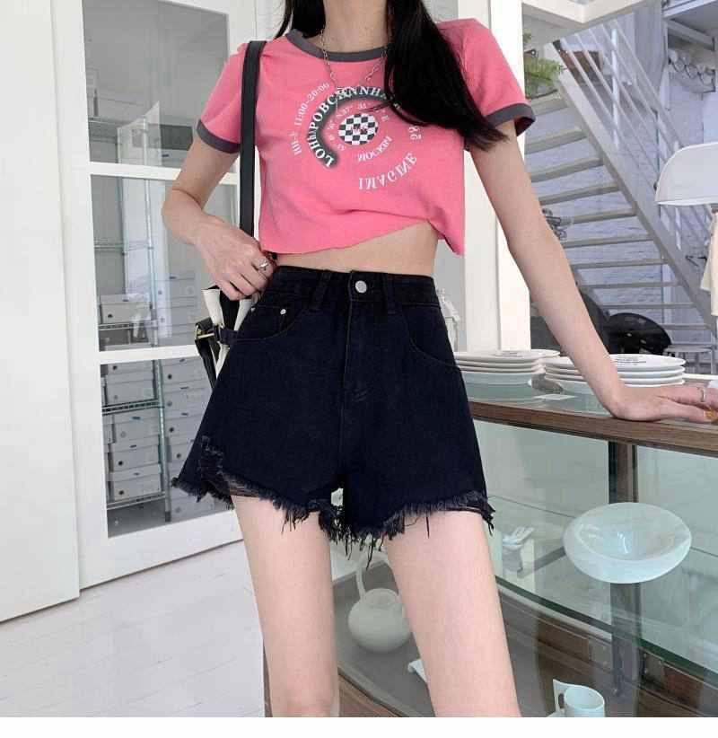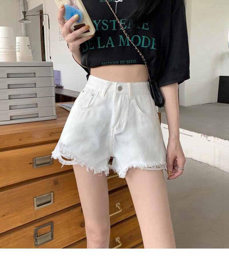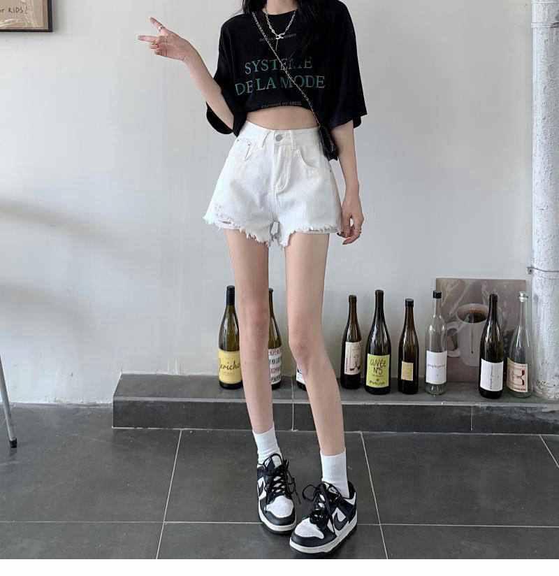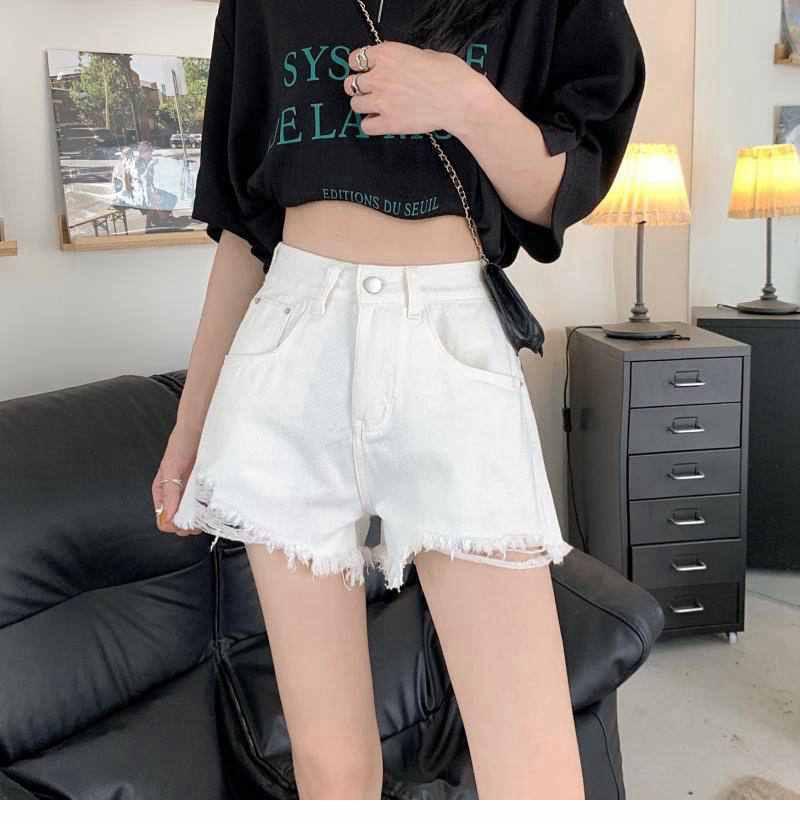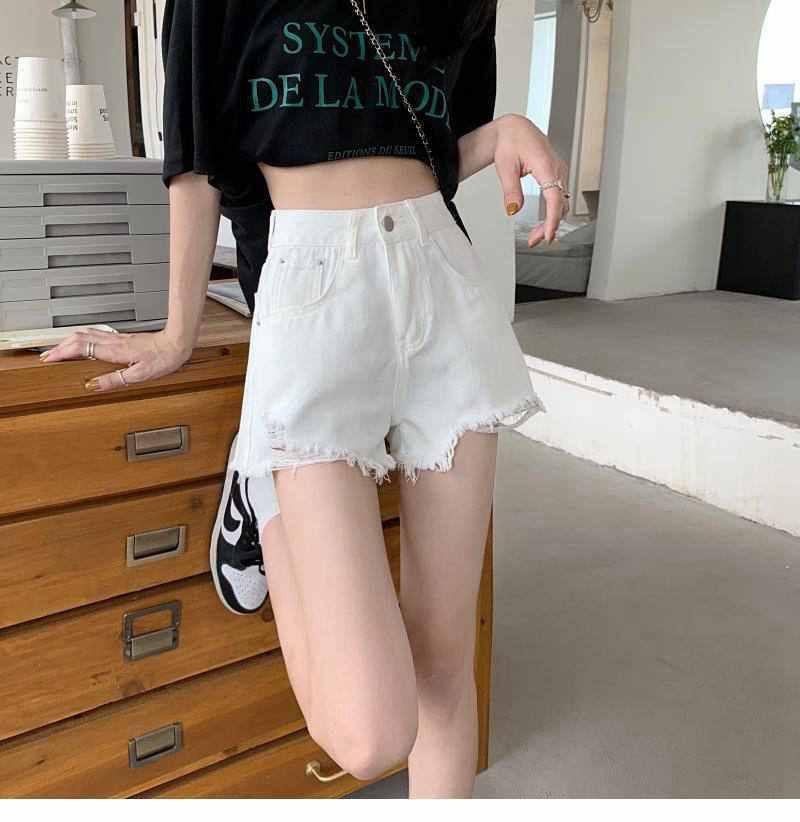 Shorts de mezclilla de cintura alta para mujer 2022 Verano Nueva llegada Todo combinado Rotos A- Carácter Sueltos Delgados Pierna ancha Calientes Modernos Pantalones Ins