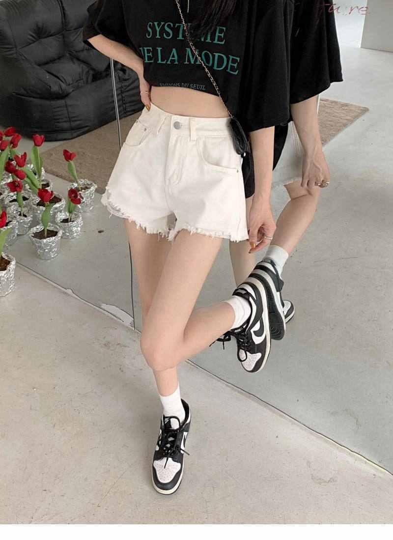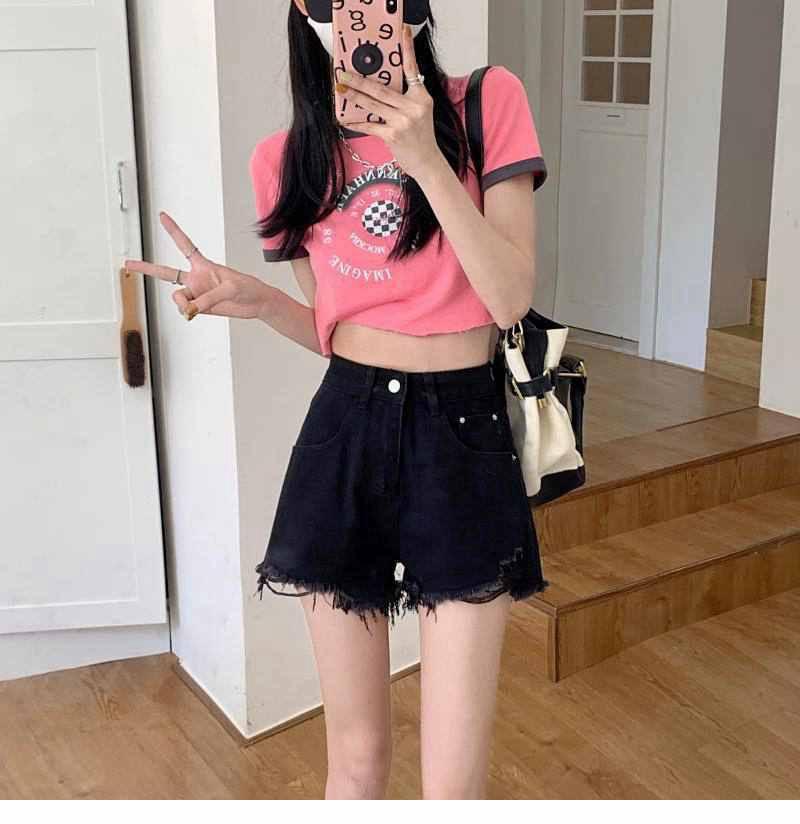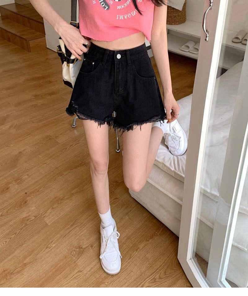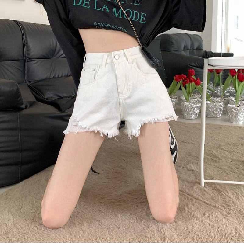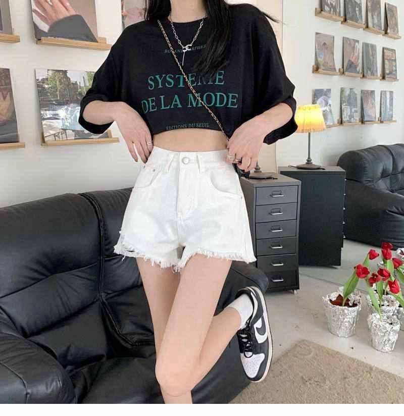 Shorts de mezclilla de cintura alta para mujer 2022 Verano Nueva llegada Todo combinado Rotos A- Carácter Sueltos Delgados Pierna ancha Calientes Modernos Pantalones Ins
