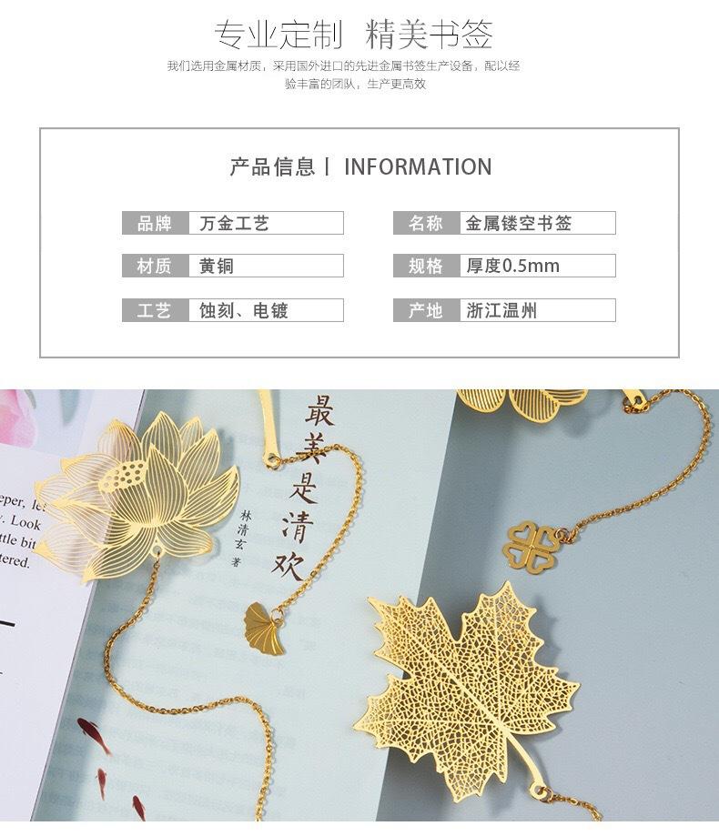 Separador de Metal Calado Latón Estilo Antiguo Clip para Libro con Colgante Separador Hoja de Arce Fresca Papelería para Estudiantes Regalo Venta al por Mayor
