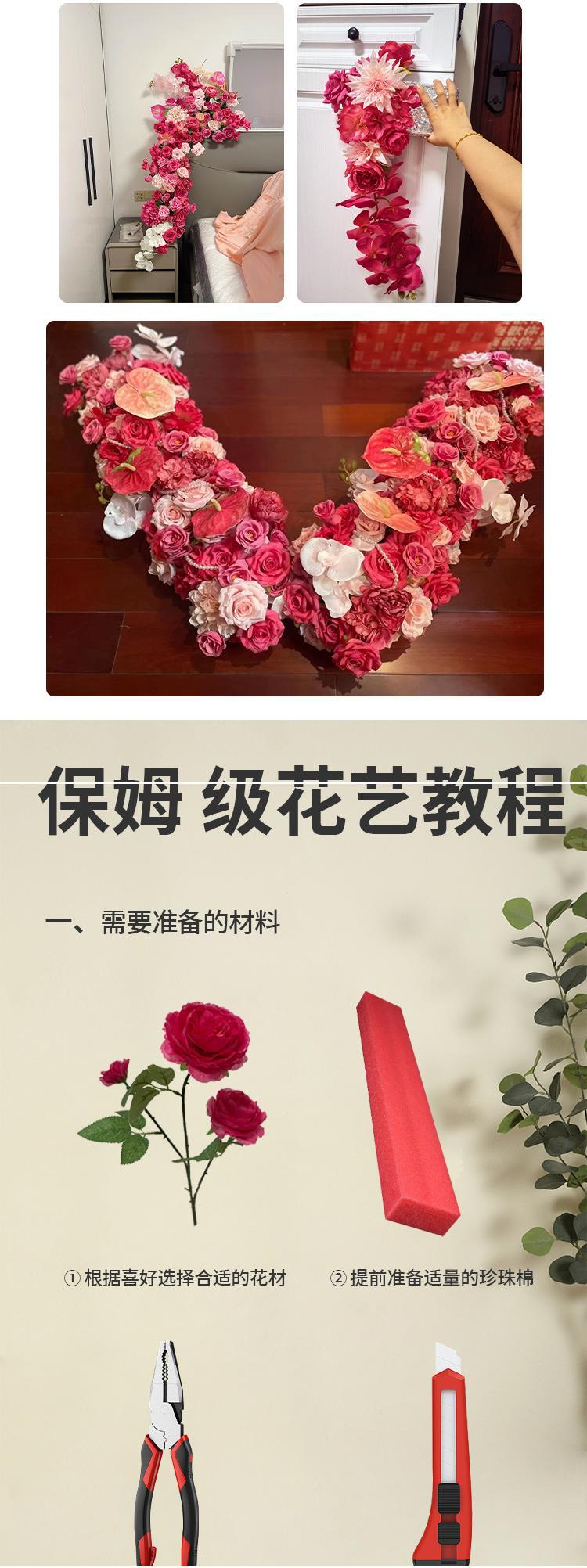 Banquete de Compromiso Flores Artificiales Rojo Rosa Flores Artificiales de Boda Arreglo Floral para Decoración de Salón de Bodas Camino de Flores Flores de Seda