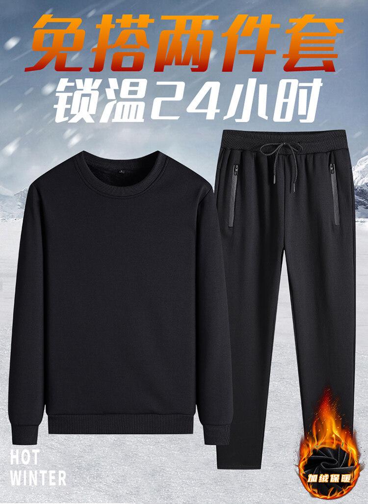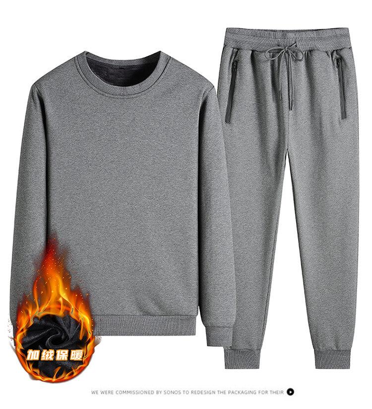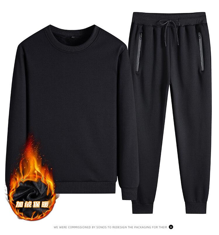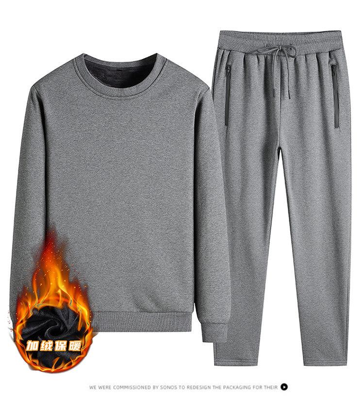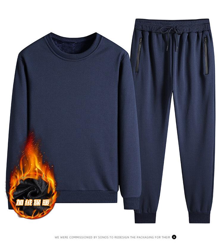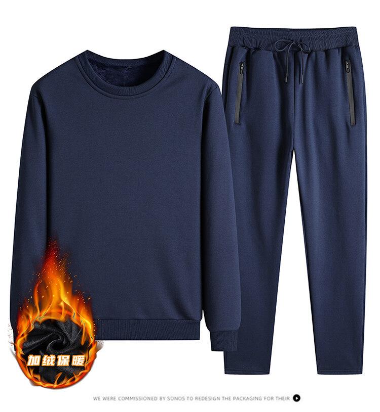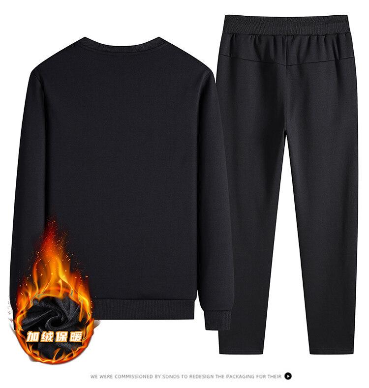 Traje deportivo casual para hombre 2021 nuevo suéter de algodón de cuello redondo más conjunto de dos piezas acolchado de terciopelo