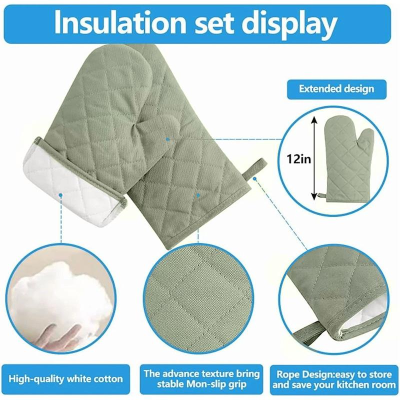 Guantes de cocina de algodón y lino con lunares del fabricante, guantes para horno microondas, juego de 4 piezas, guantes para horno, guantes antiquemaduras