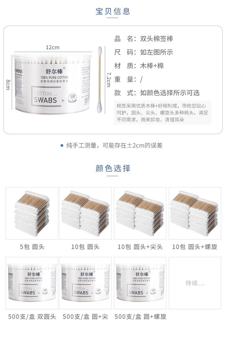 Hisopos de Algodón Redondos en Caja de Doble Punta para Oídos y Desmaquillantes, Portátiles para el Hogar, Desechables para Limpieza y Desinfección