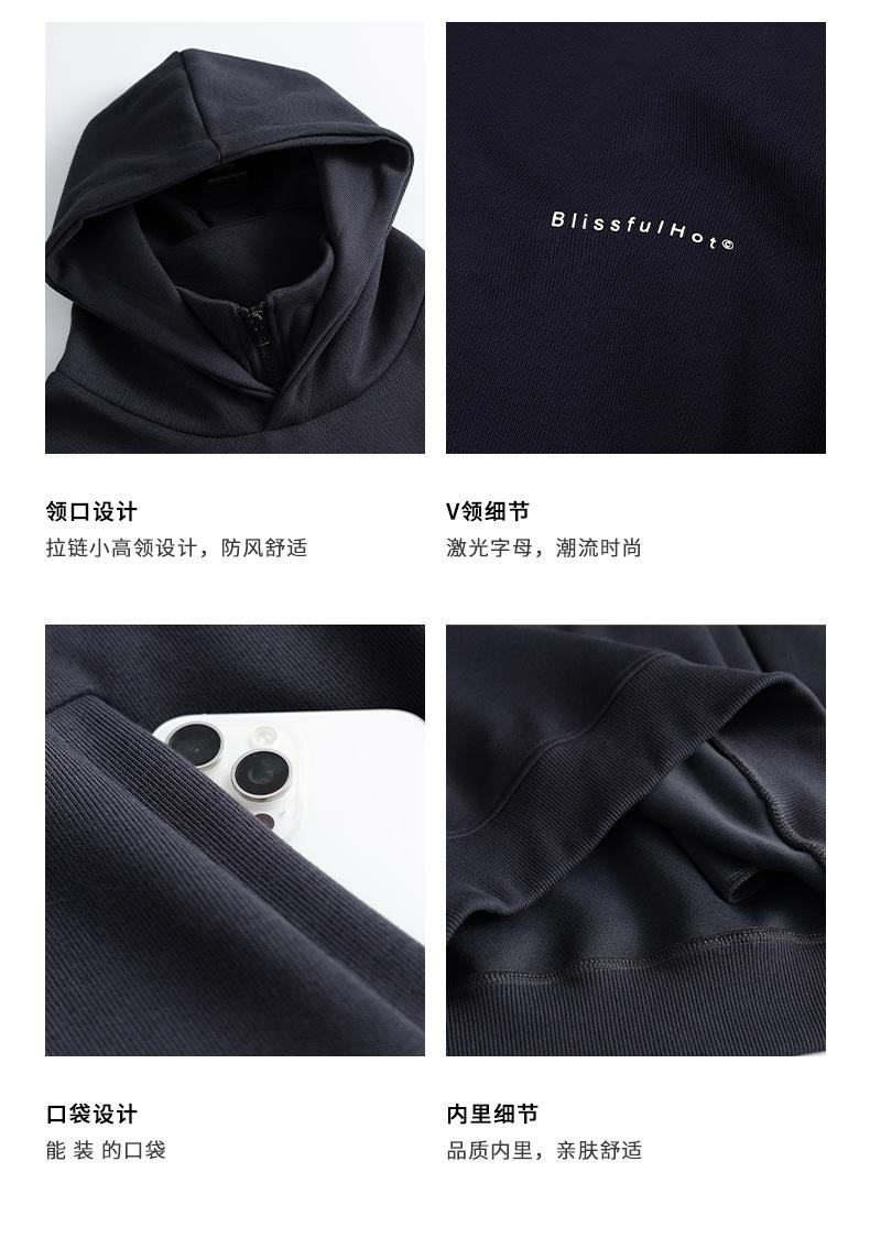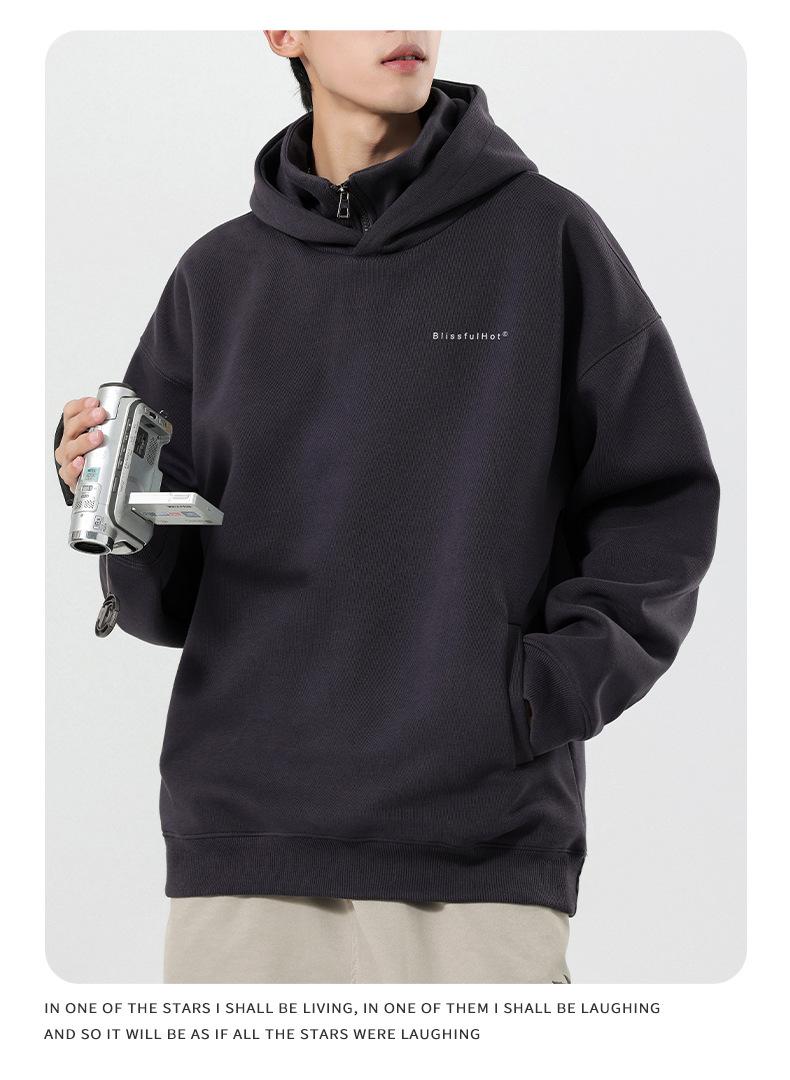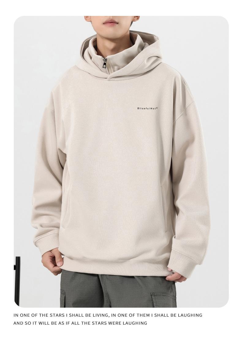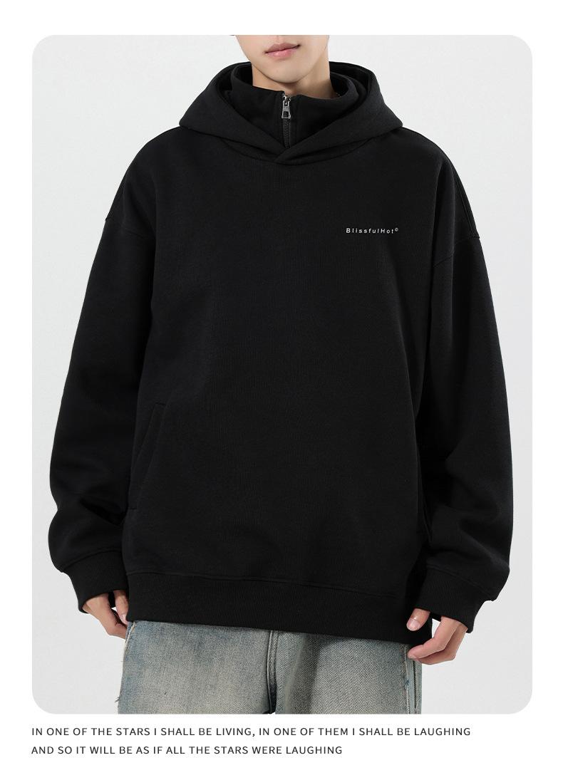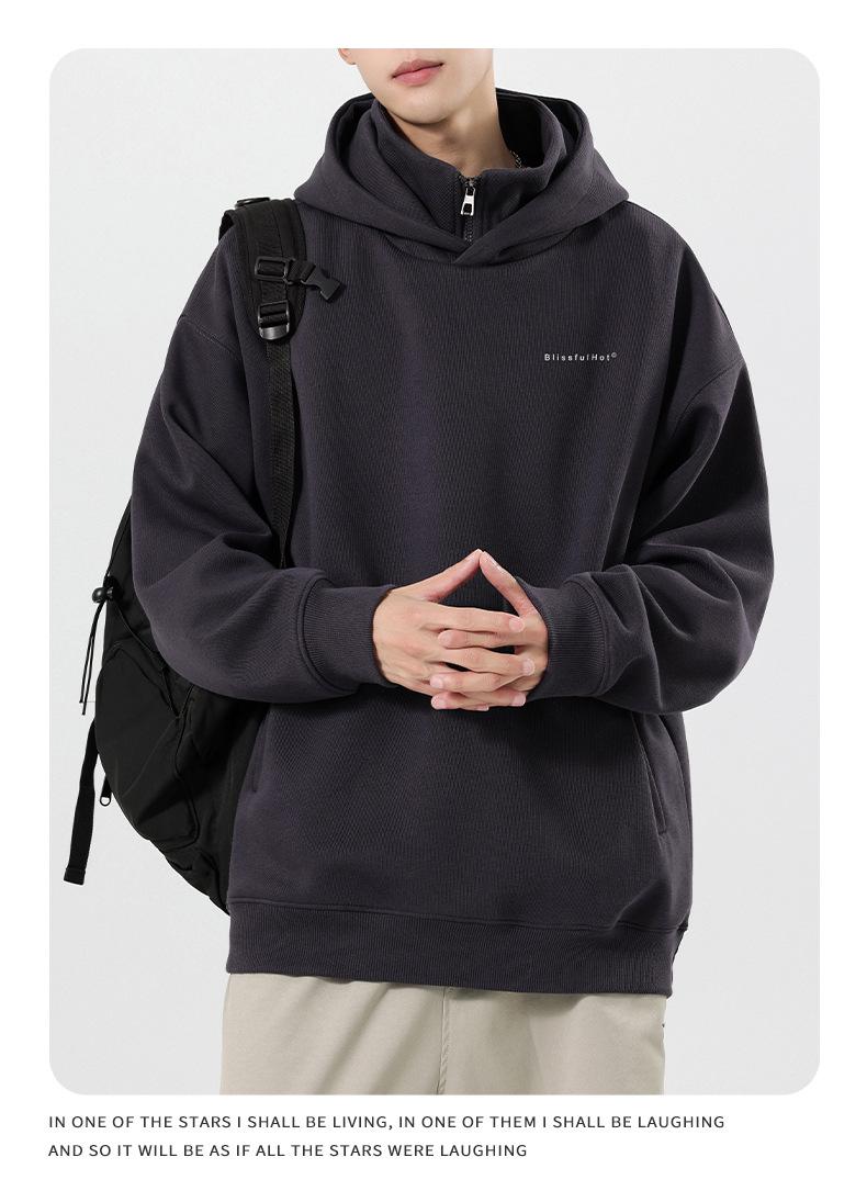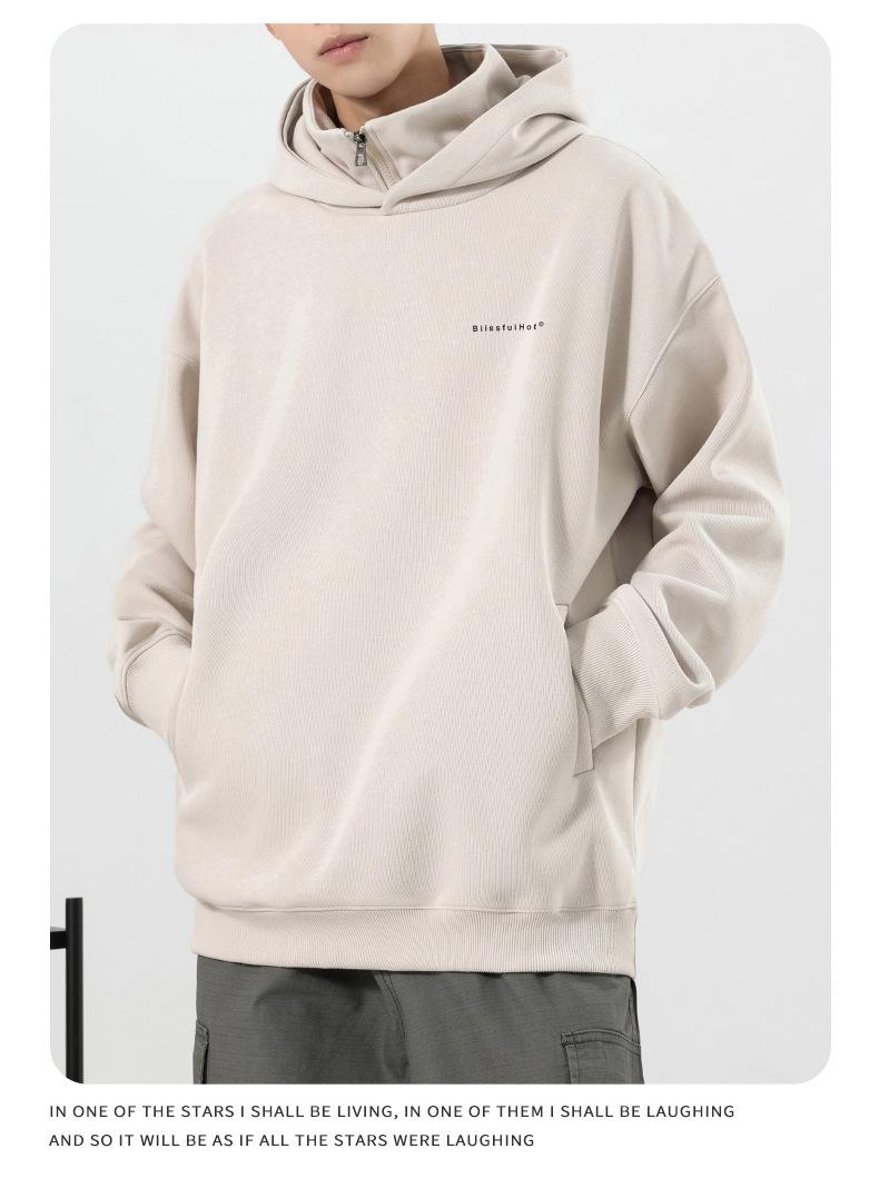 Sudadera con capucha para hombre marca de moda otoño e invierno nuevo nicho diseño de cuello alto con media cremallera holgada moda estampado chaqueta para hombre