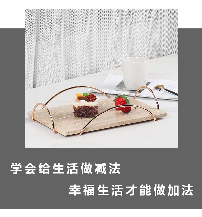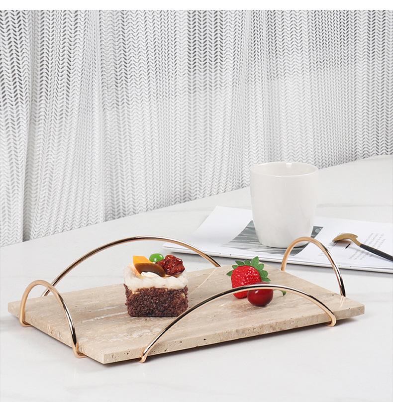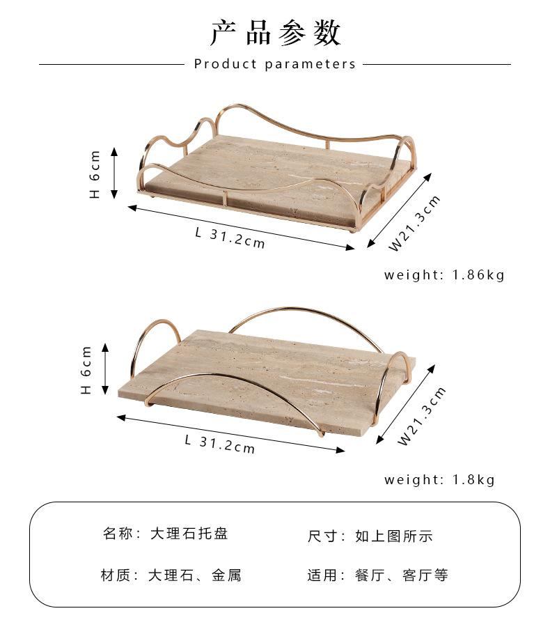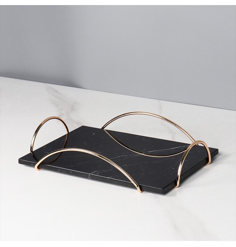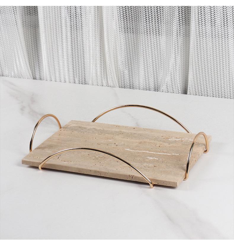 Jazz white metal frame tray, Black and white root metal frame tray, Yellow travertine metal frame tray