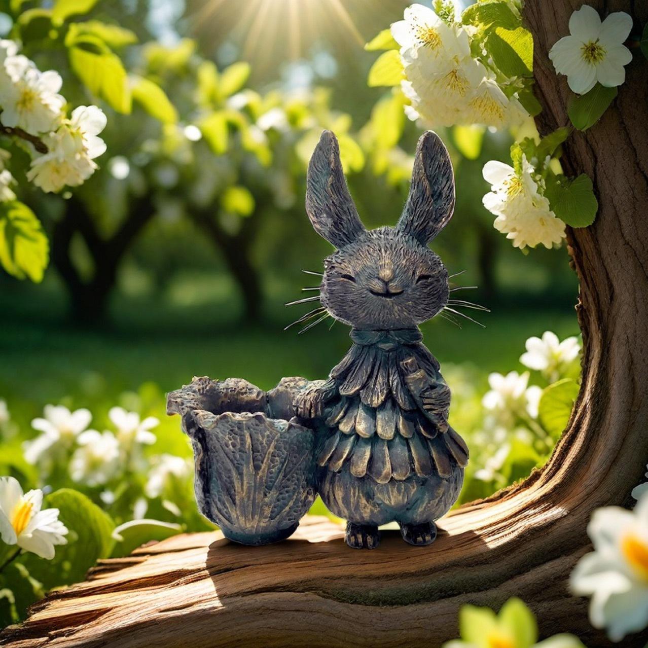 Conejo de Pascua Transfronterizo Maceta de Flores de Simulación de Col Decoración de Jardín Suculenta Resina Exterior Adornos Artesanales para el Hogar