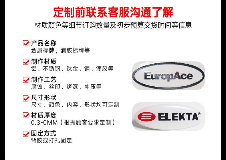 Fabricante Personalizado Alto Brillo Cepillado Estéreo Estampado Metal Señal Etiqueta Acero Inoxidable Corrosión Mecánica Placa de Nombre
