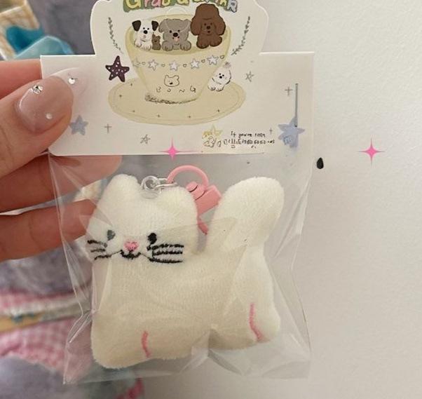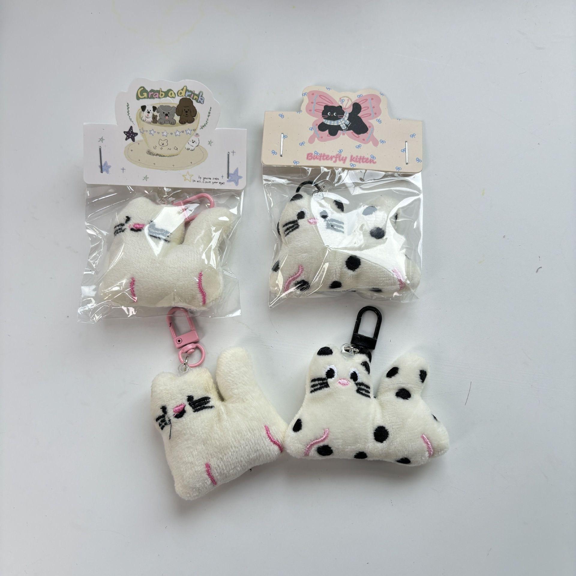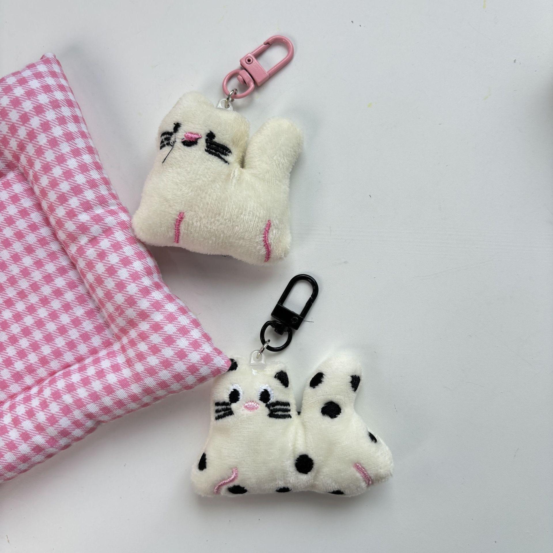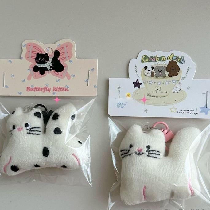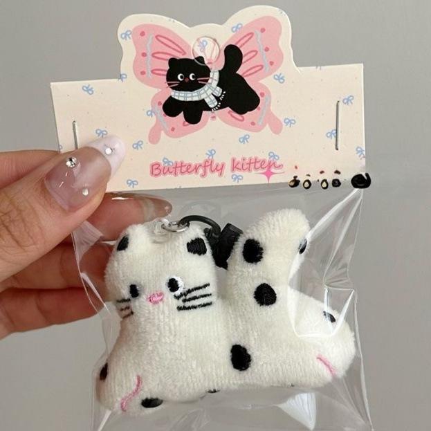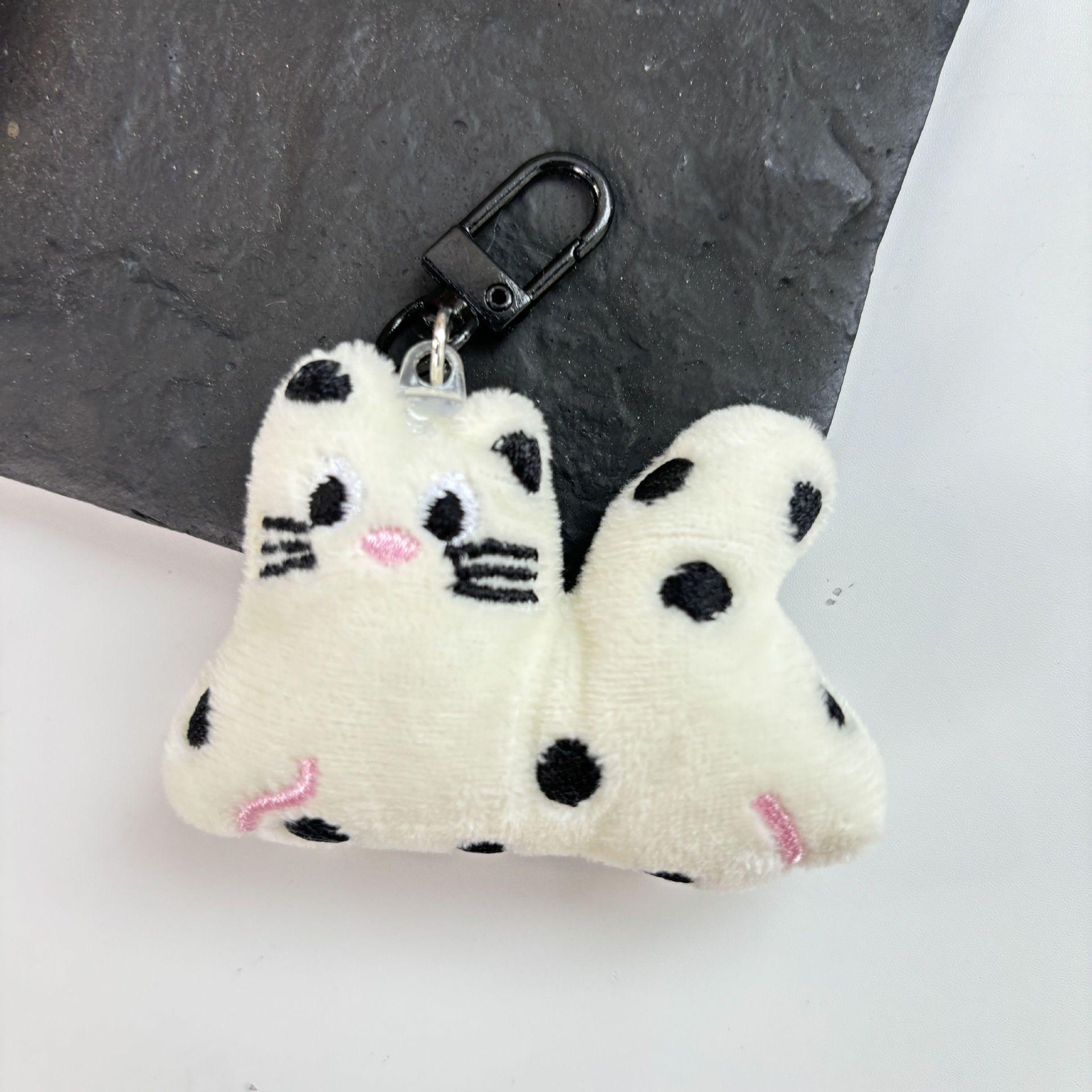 Colgante de Gato de Lunares Blanco y Negro de Dibujos Animados Lindo Colgante de Peluche para Bolso Mejor Amigo Estudiante Llavero Accesorios Colgante