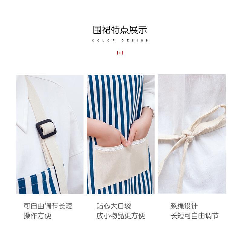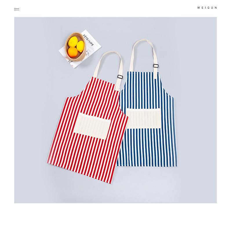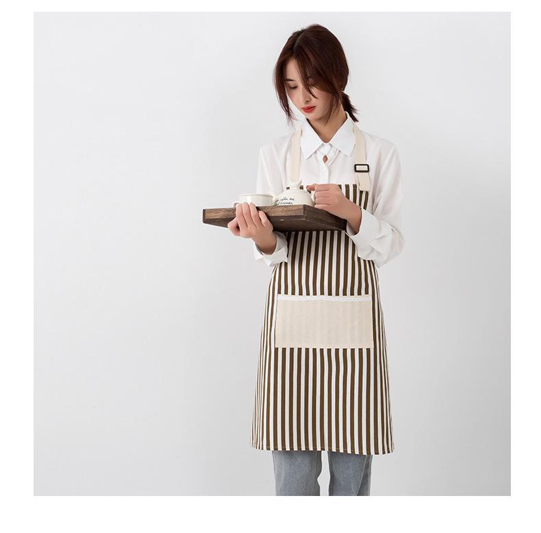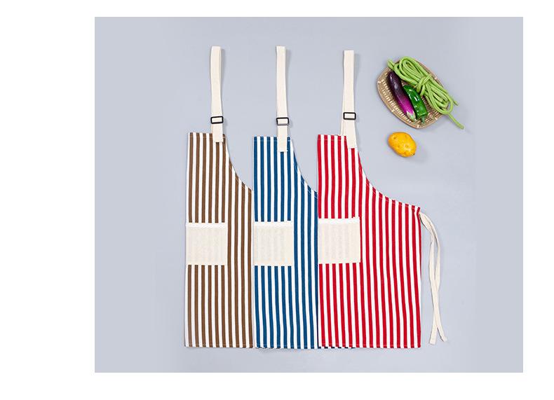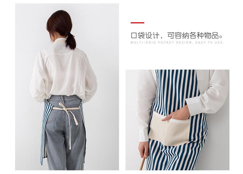 Delantal de Trabajo de Catering para el Hogar Transfronterizo de Algodón Lino Japonés a Rayas Transpirable Impresión de Logotipo Personalizado Fábrica Venta al por Mayor