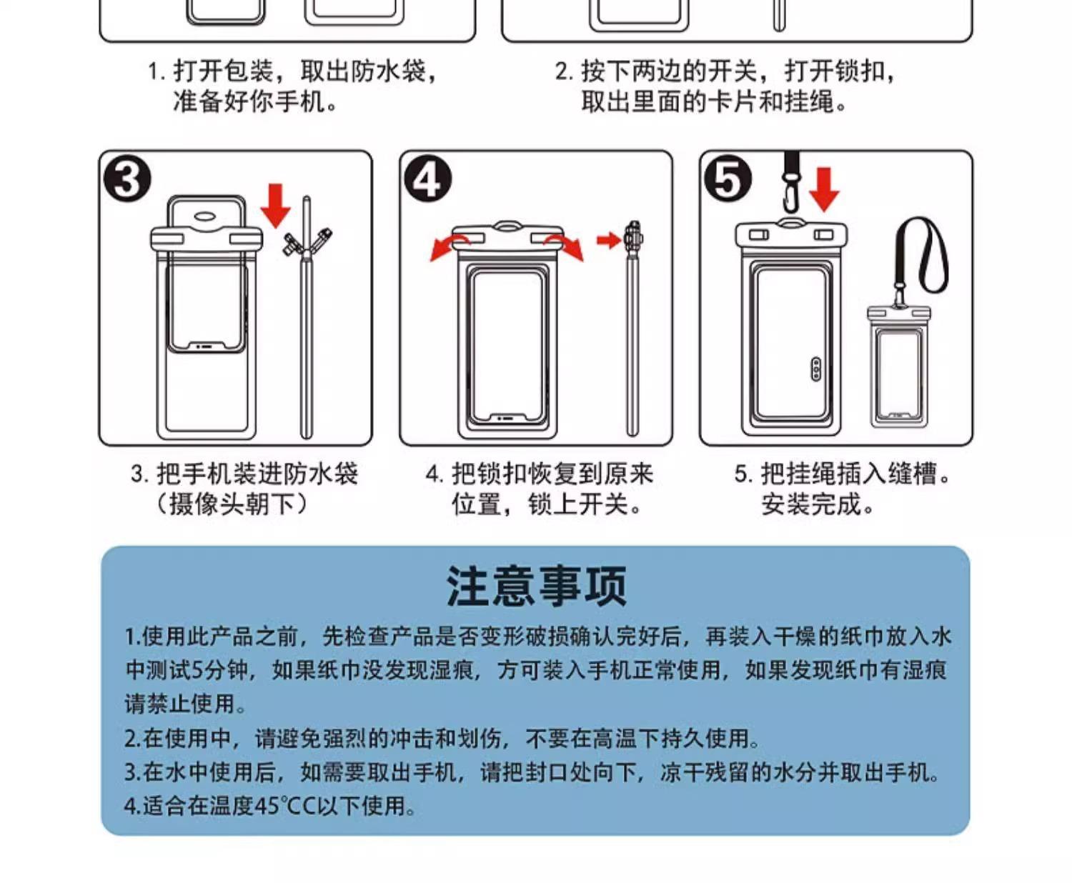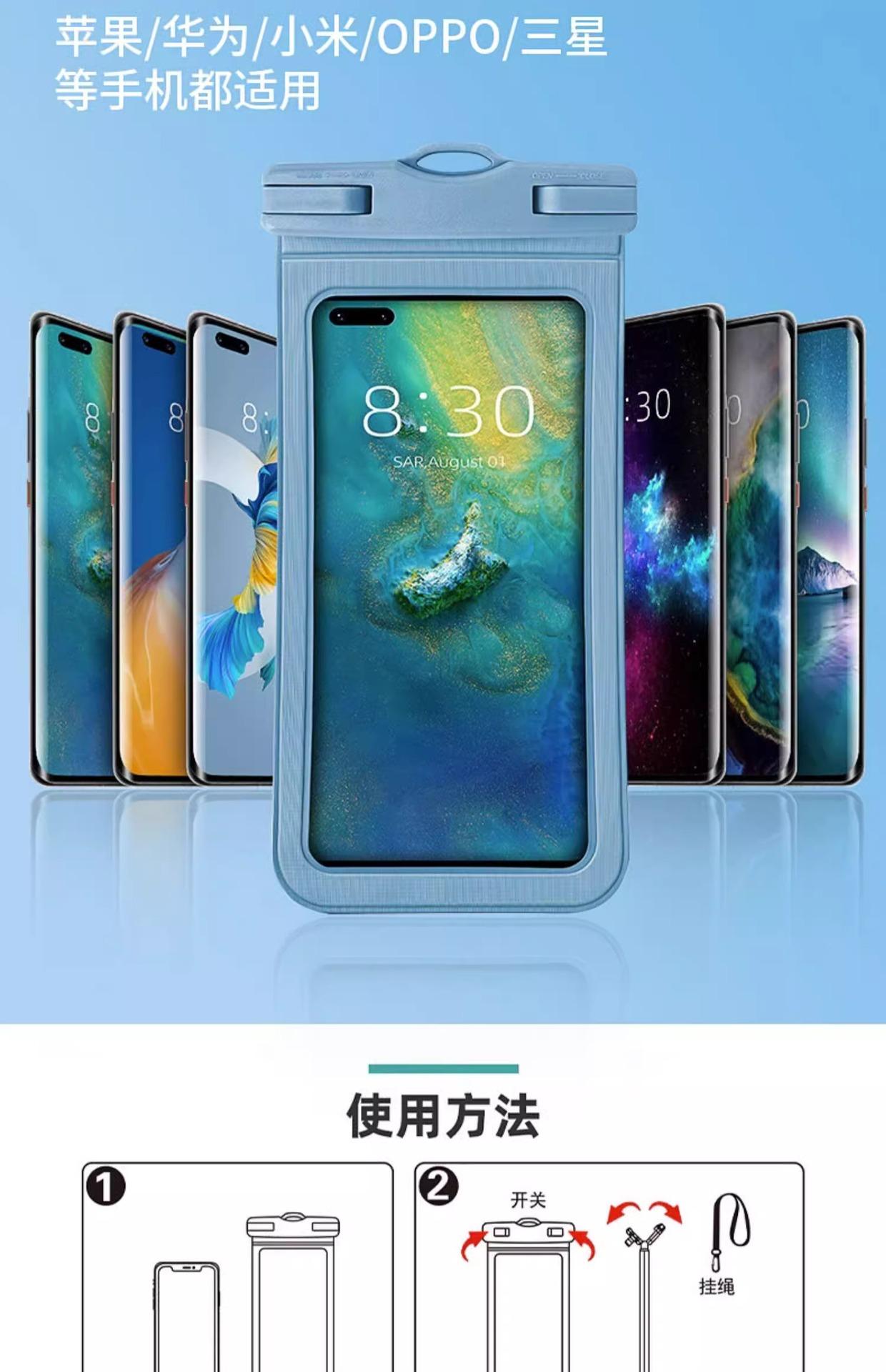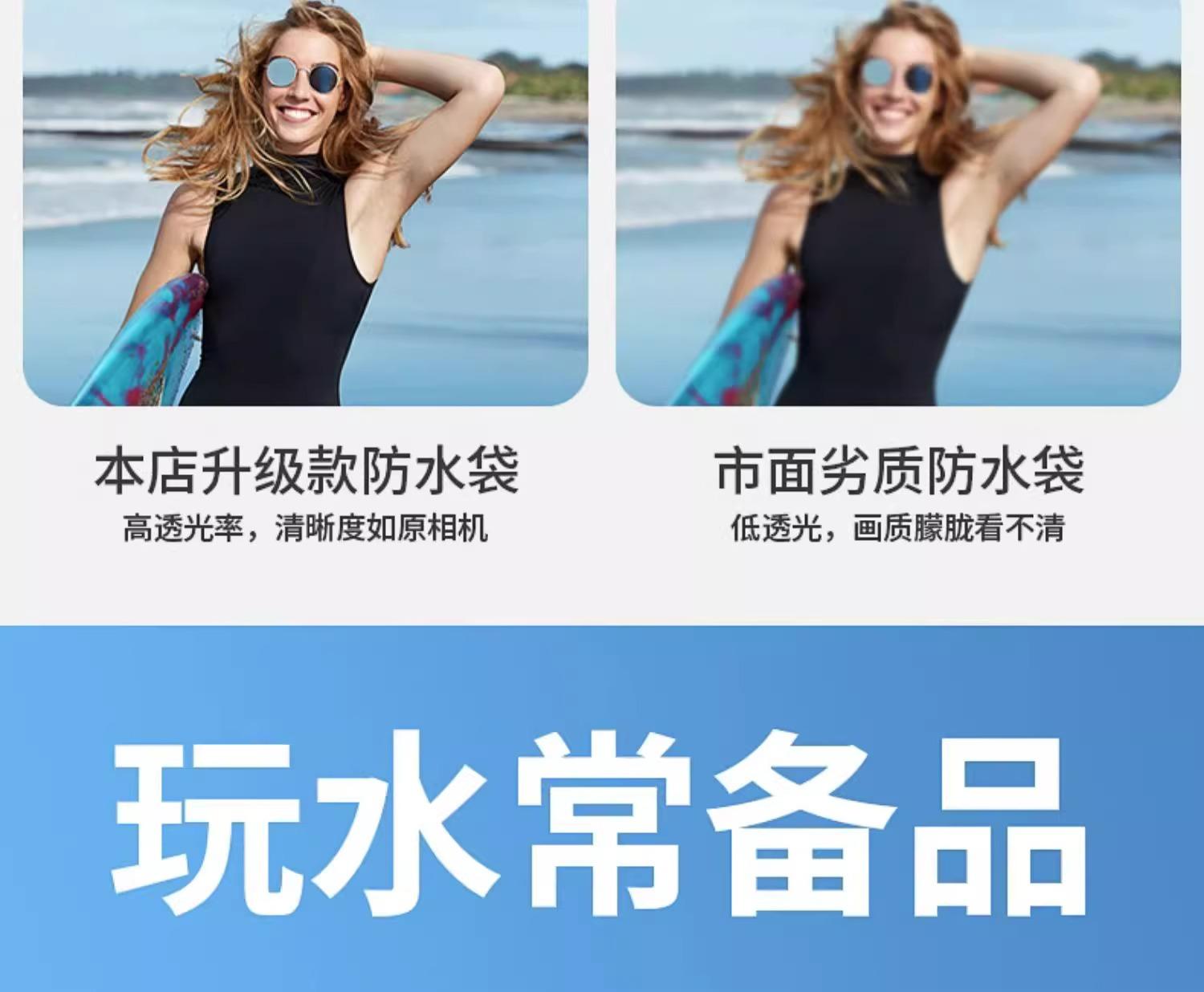 Bolsa impermeable para teléfono móvil transfronteriza foto HD pantalla táctil funda impermeable para teléfono móvil natación rafting funda impermeable una generación de cabello
