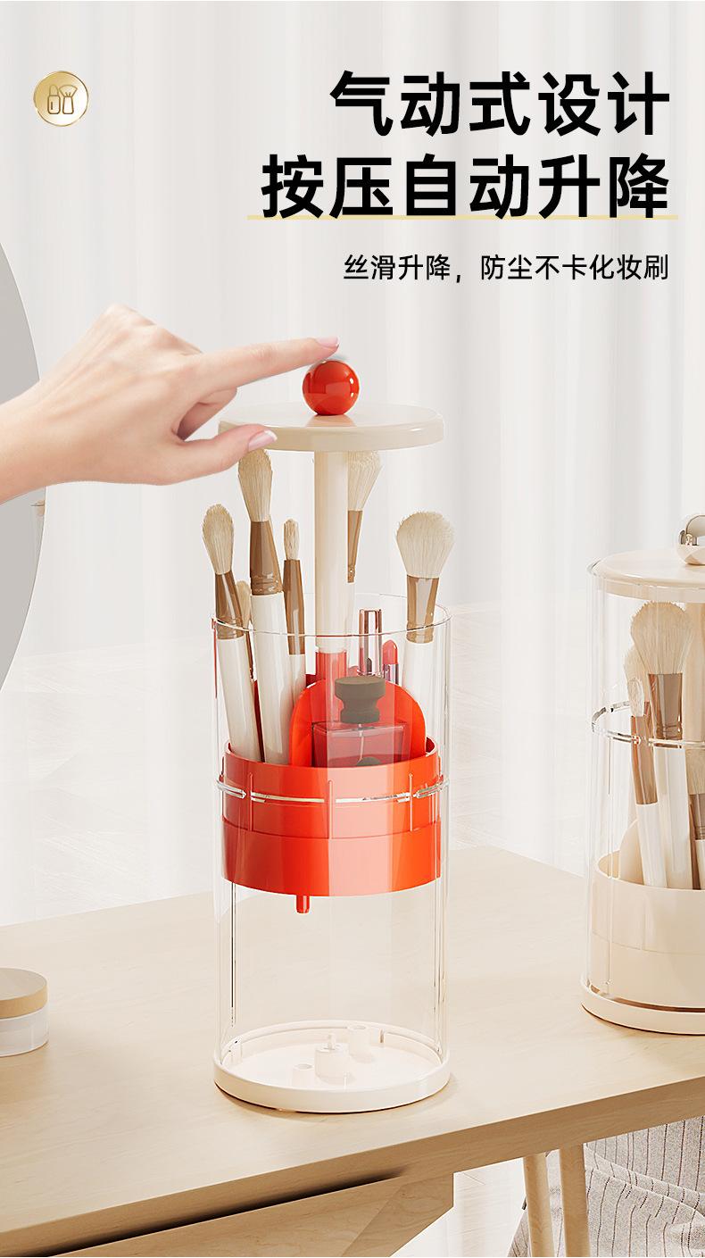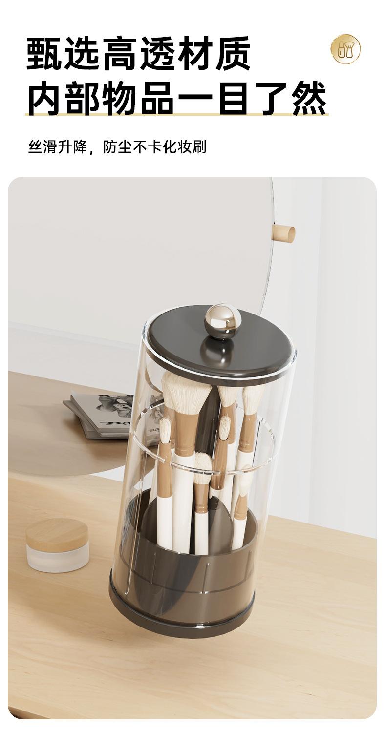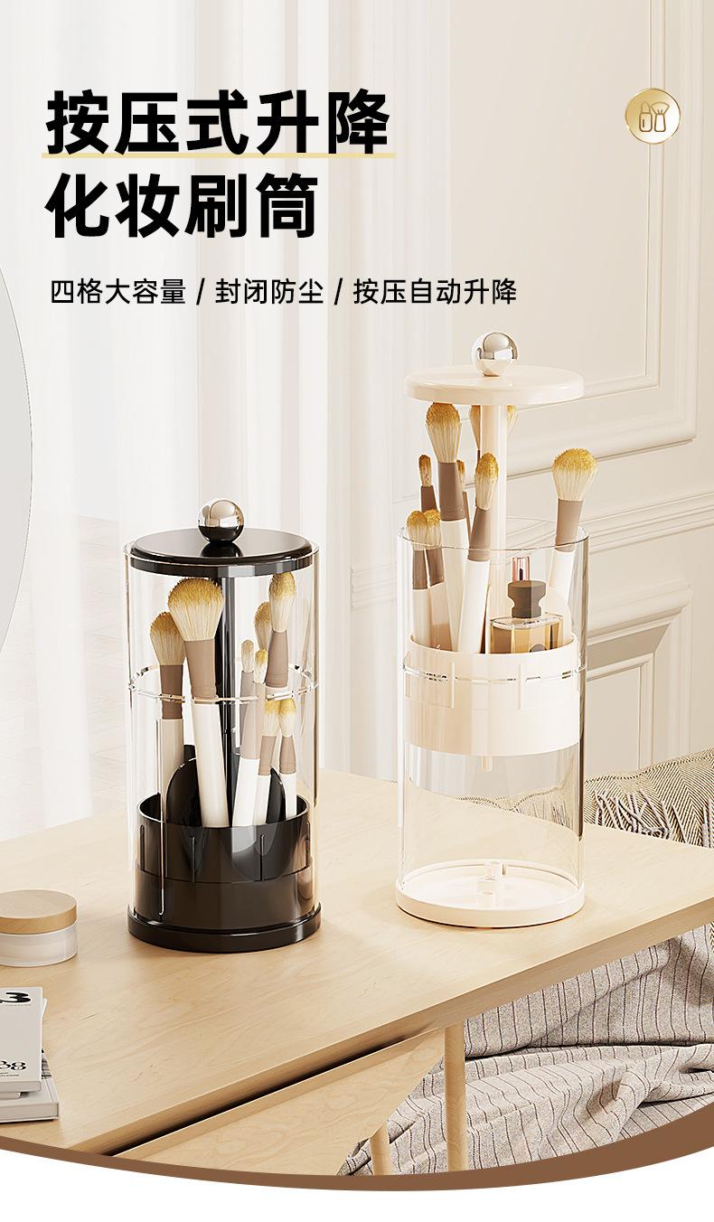 Cubo de Almacenamiento para Brochas de Maquillaje Elevación Automática Escritorio de Tocador Lápiz para Cejas Delineador Brocha de Maquillaje Caja de Almacenamiento a Presión a Prueba de Polvo