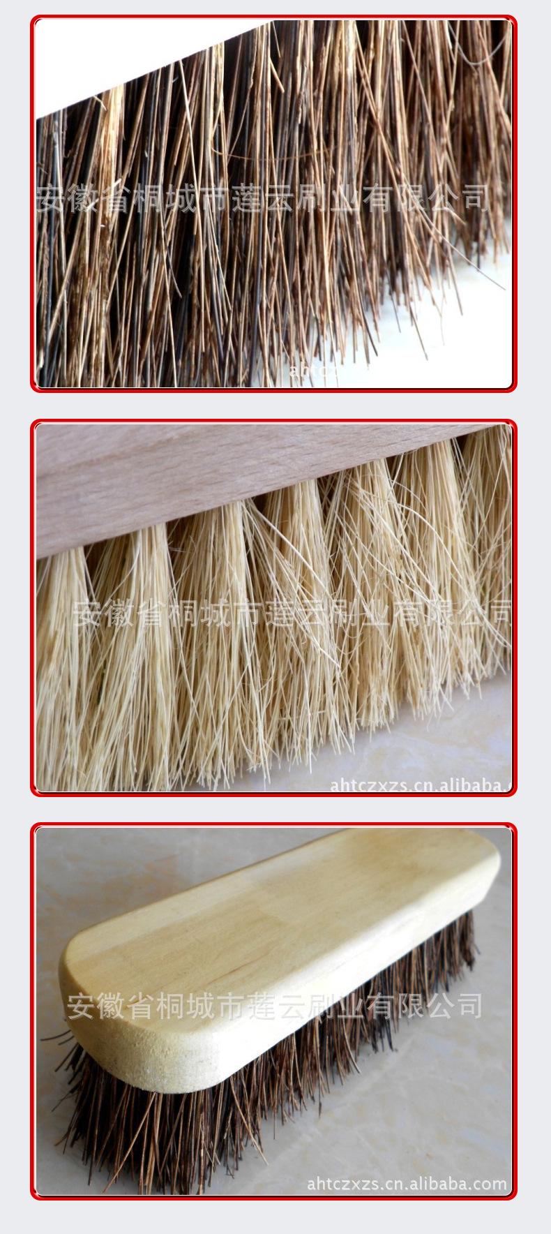 Los materiales de las cerdas incluyen: PP/PVC/PET y otros filamentos de plástico, así como fibra de palma brasileña, fibra de Tampico, sisal y otras fibras vegetales.