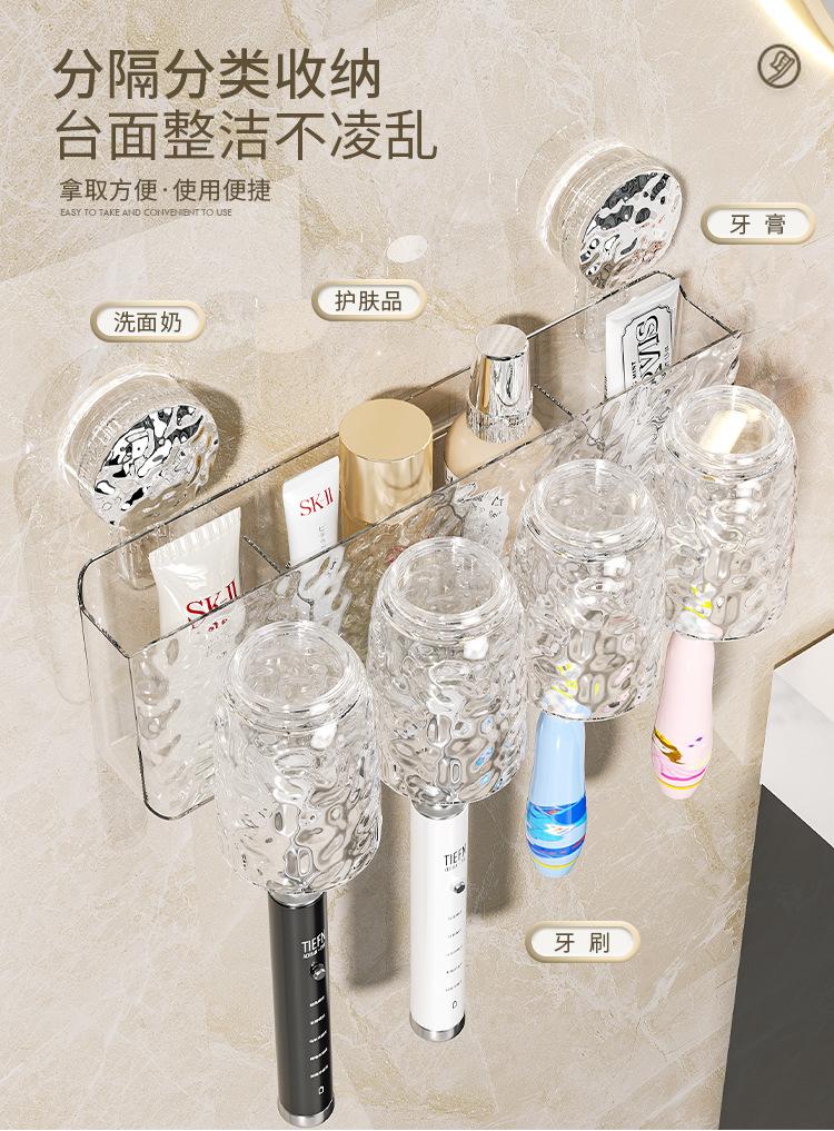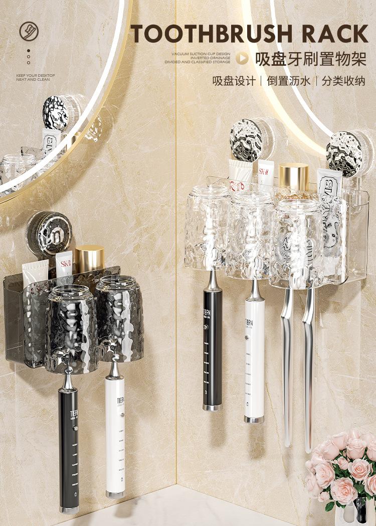 Compra Almacenamiento sin perforaciones Soporte para cepillo de dientes eléctrico montado en la pared Ventosa Estante para cepillos de dientes Juego de vaso para enjuague bucal Vaso para enjuague bucal de baño al por mayor en Joom.pro