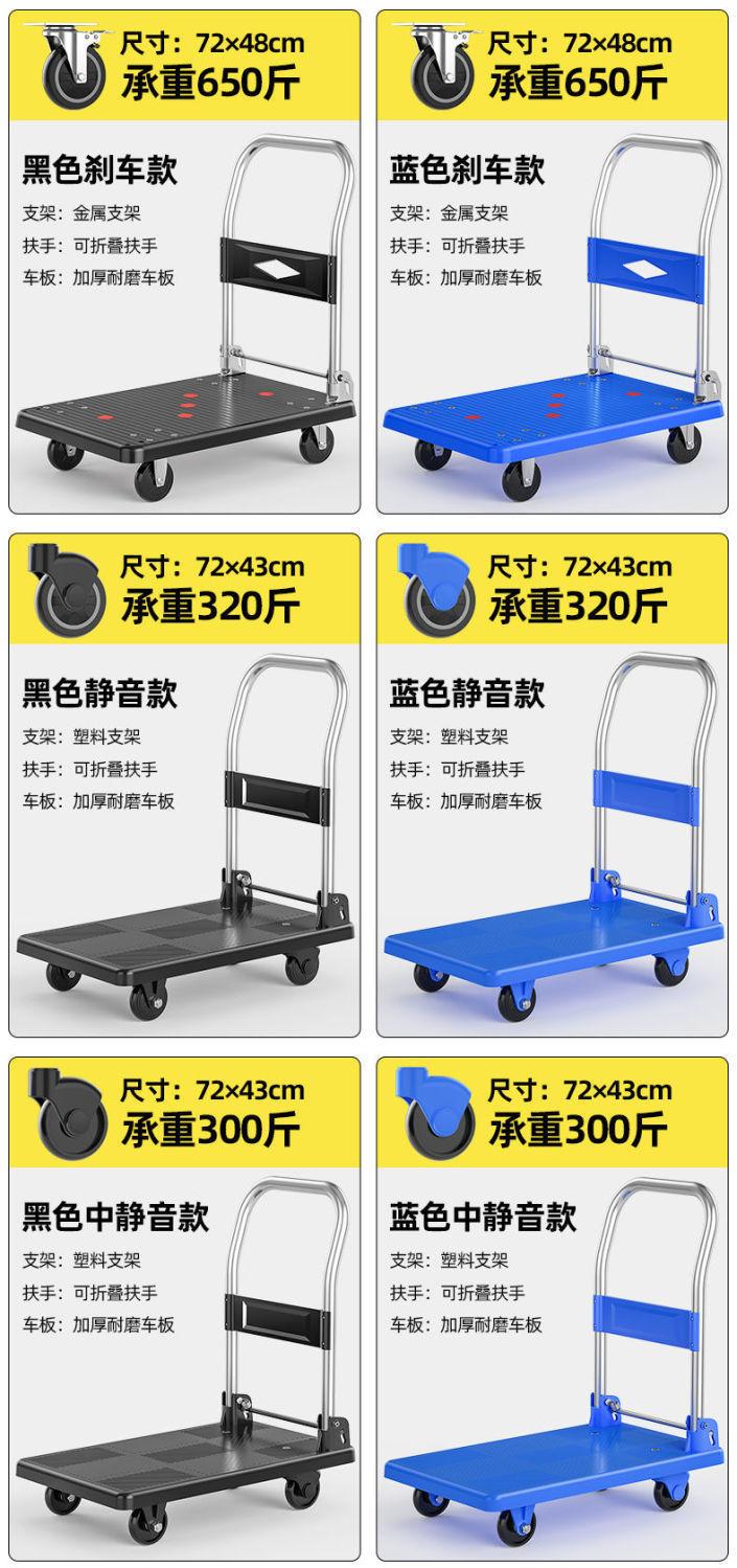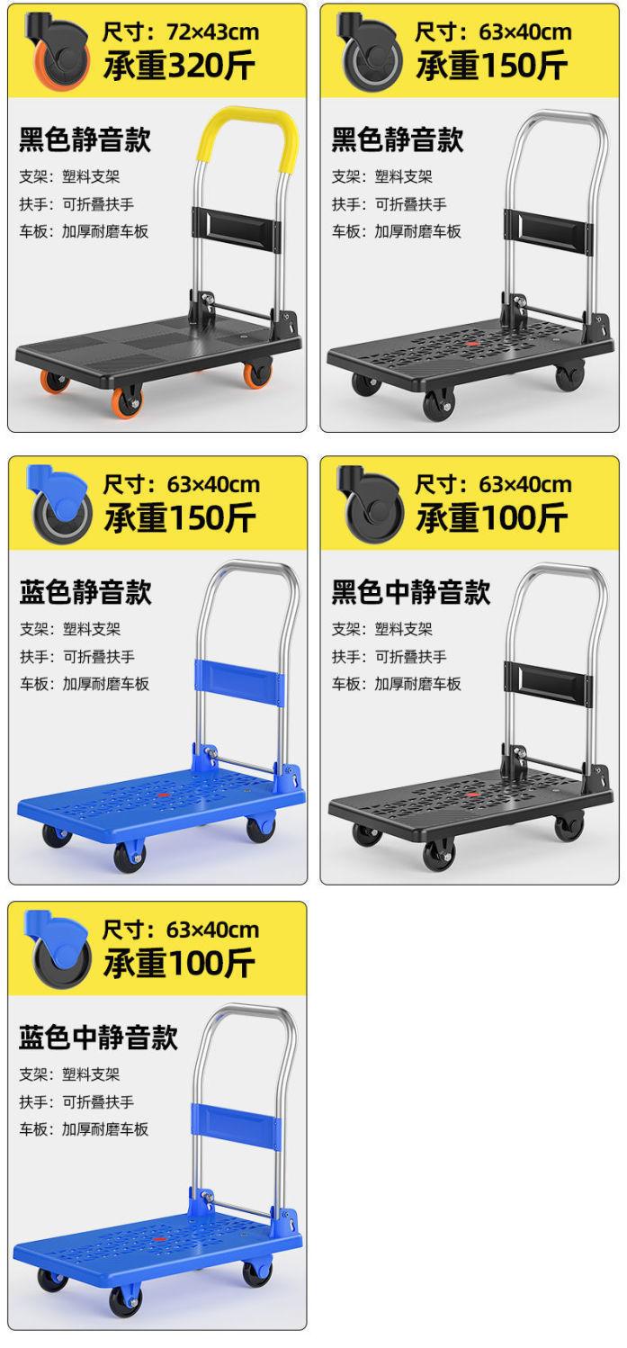 Carro de plataforma plegable engrosado silencioso Nuevo carro pequeño plegable Camión de mano Carrito de tracción doméstico conveniente Carrito de mano