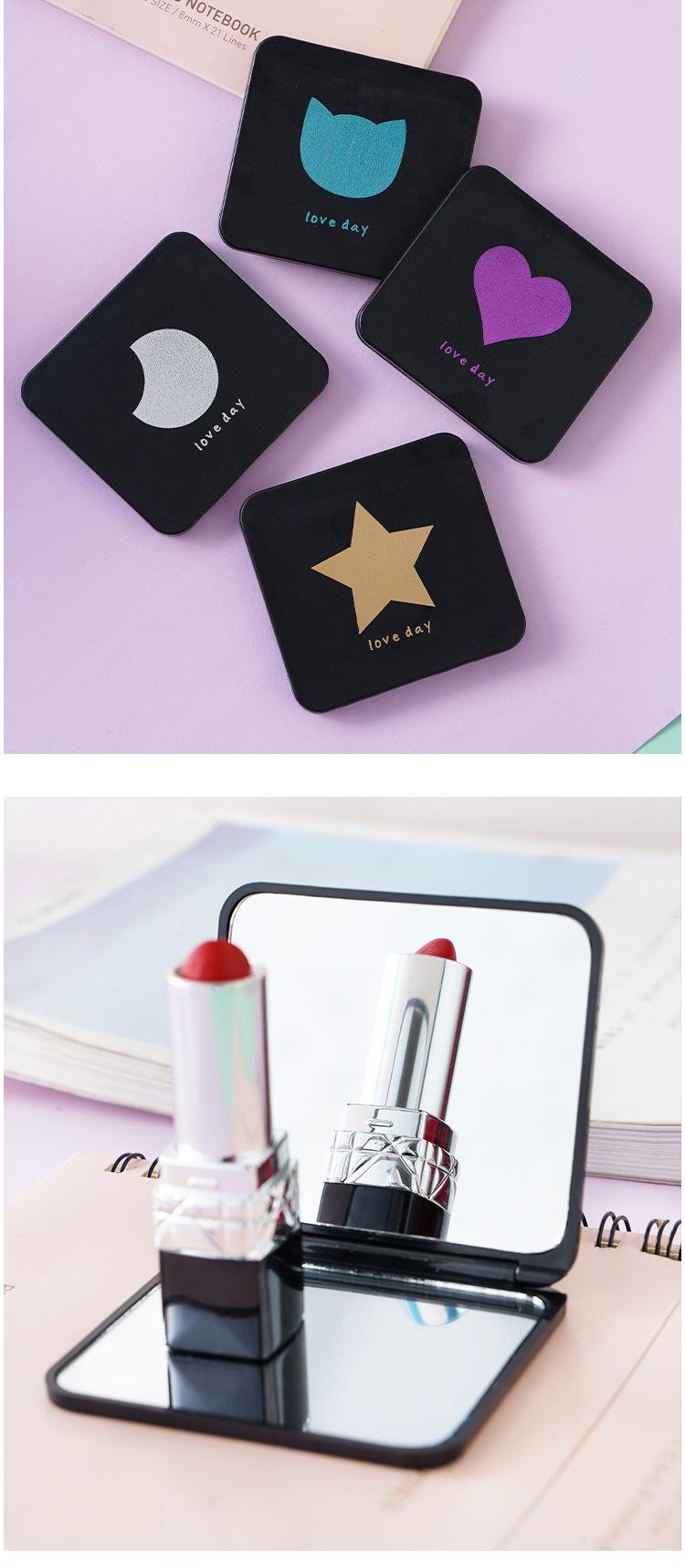Lindo Espejo Pequeño Portátil Mini Espejo de Maquillaje Doble Cara Portátil Dormitorio de Estudiantes de Mano Plegable Hogar