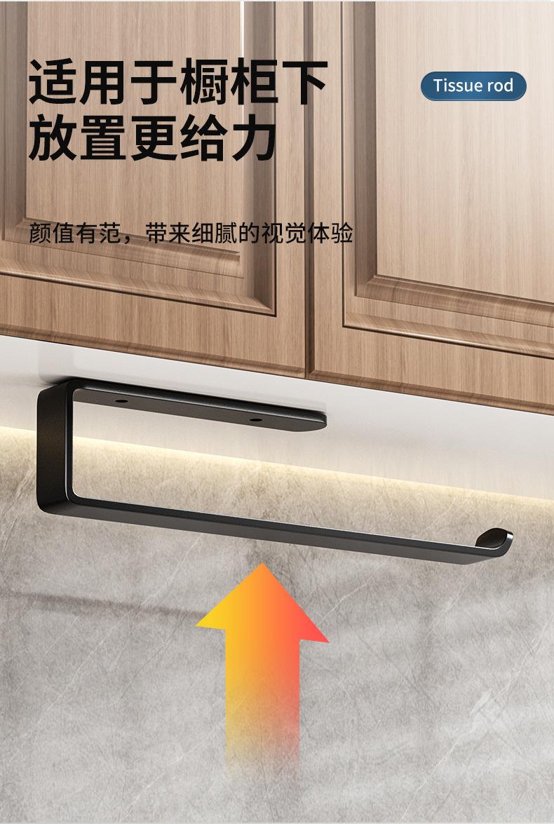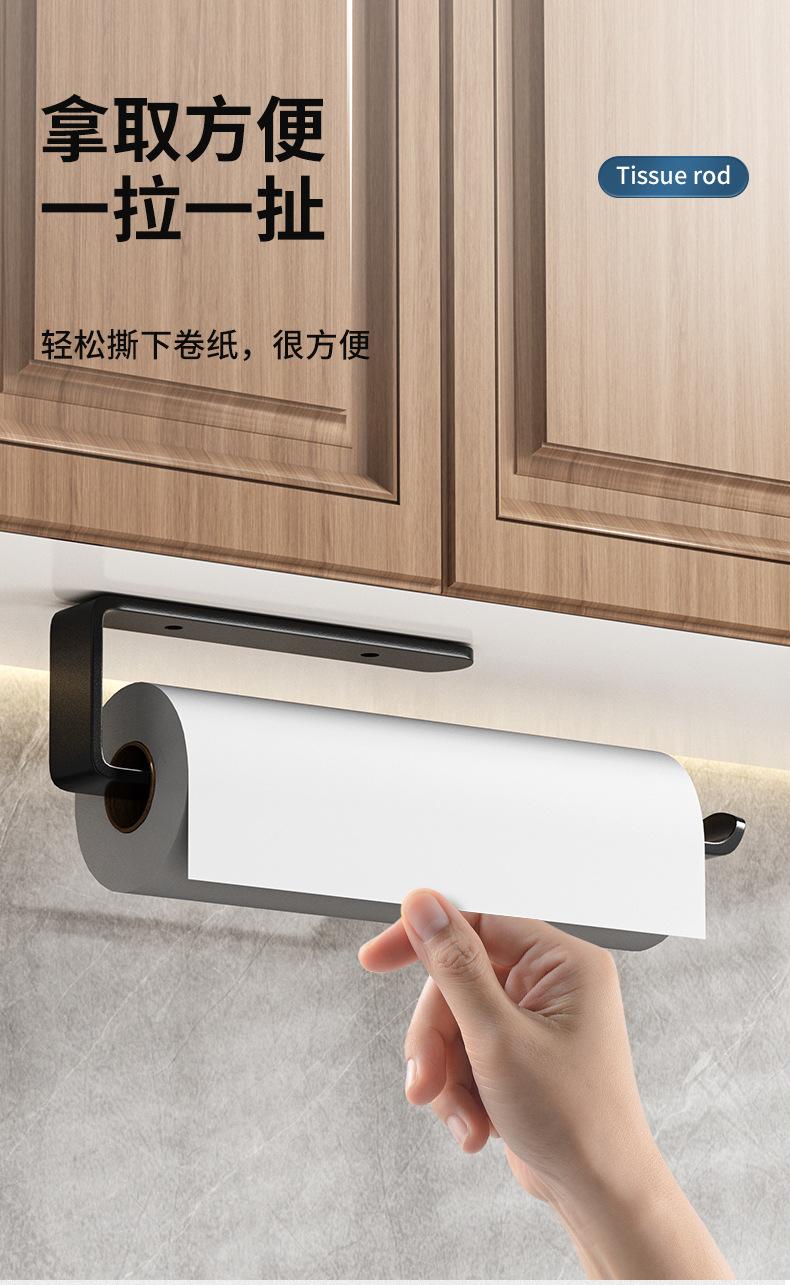 Soporte para toallas de papel para gabinete de cocina transfronterizo Soporte para papel film Aluminio espacial Montado en la pared sin perforaciones Baño Soporte para papel de rollo Soporte para papel higiénico