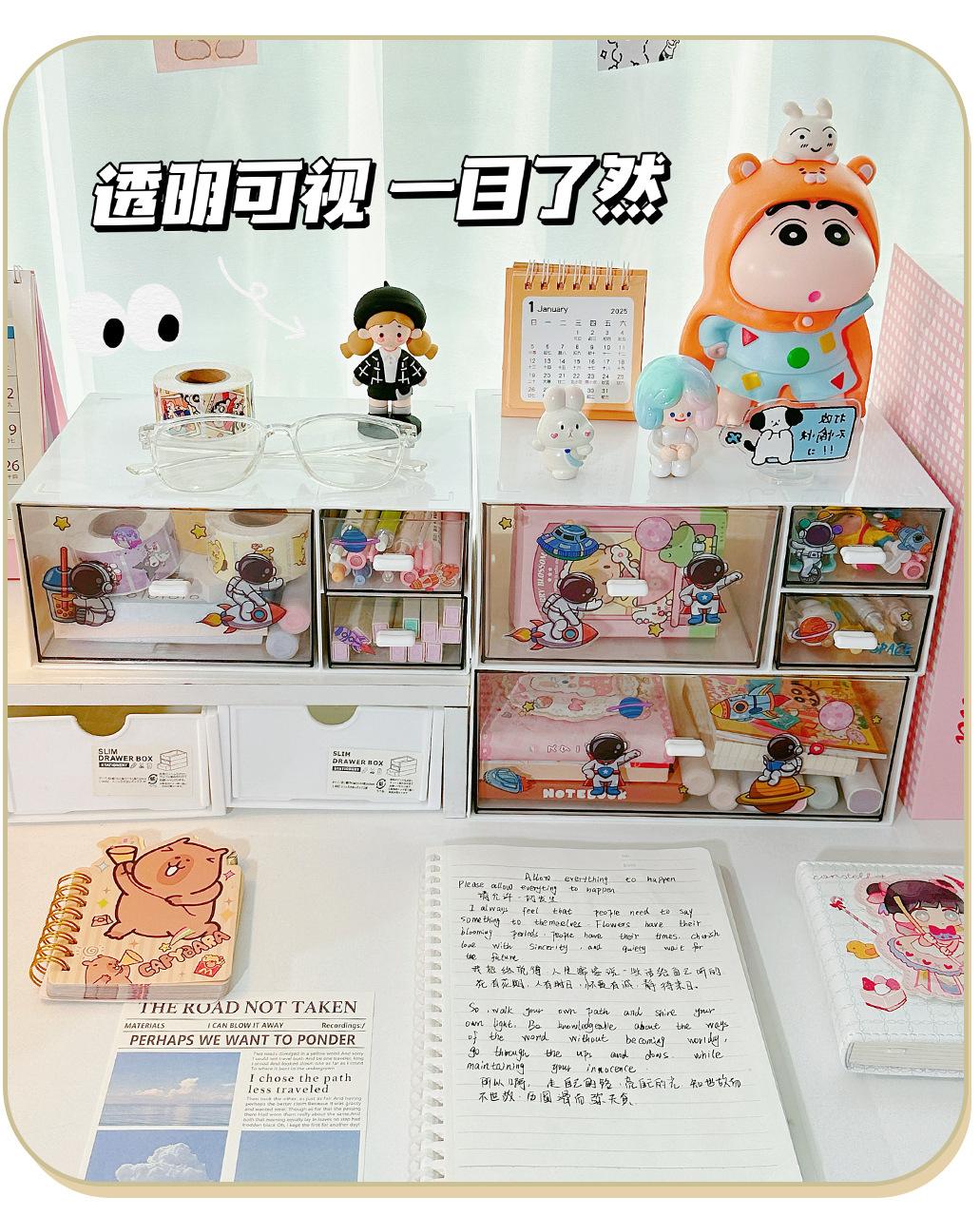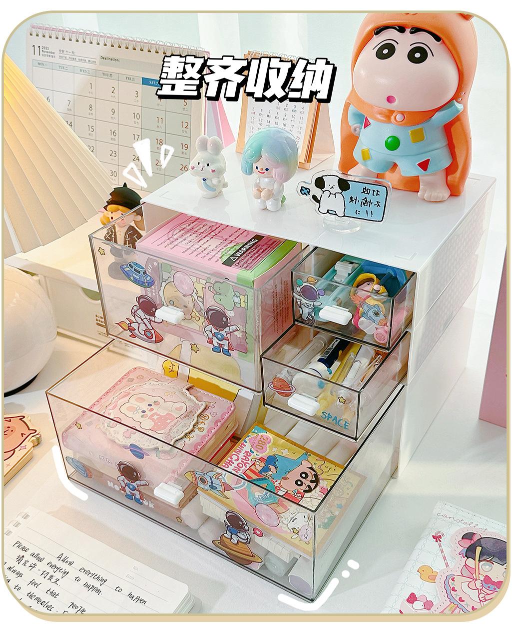 Stackable Storage Box [Flat Head White] Single Layer Single Drawer with Random Cartoon Stickers