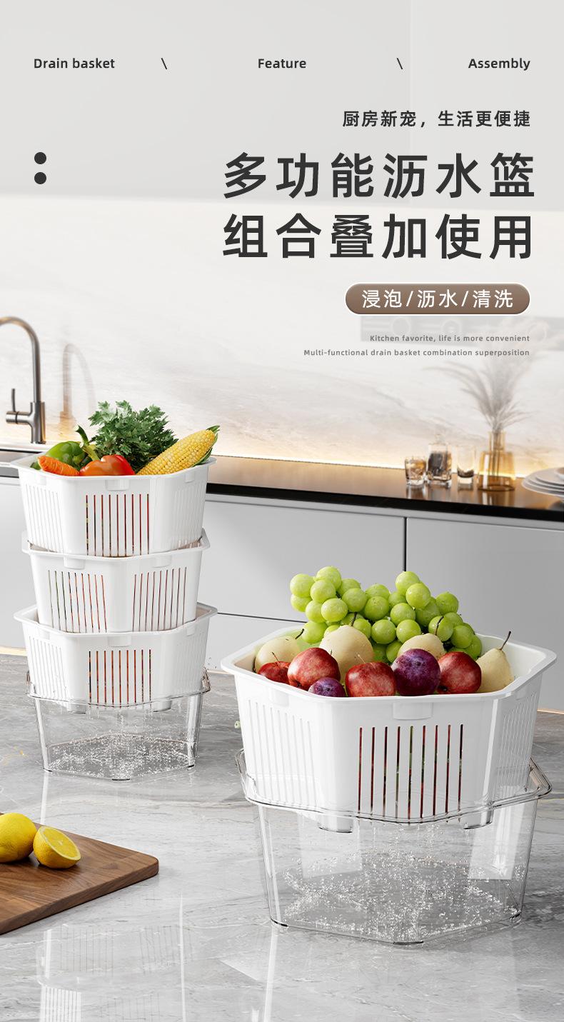 Nuevo Escurridor de Doble Capa para Lavar Verduras, Cesta de Drenaje, Hogar, Sala de Estar, Plástico, Frutero, Cocina, Cesta de Filtro Engrosada, Cesta para Lavar Verduras