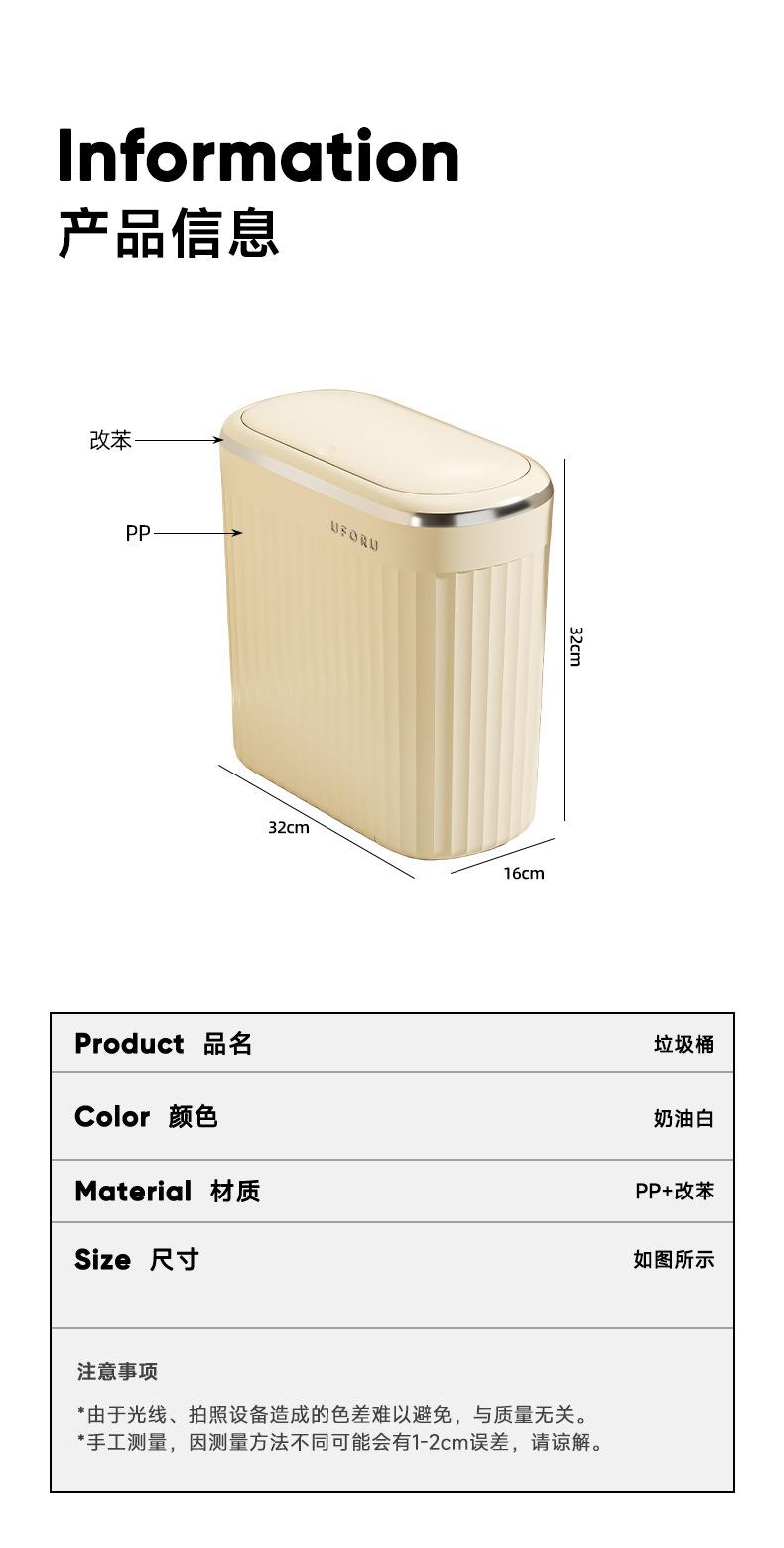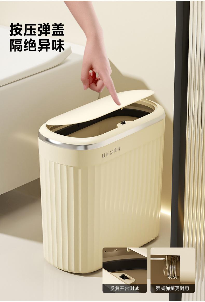 Bote de Basura Doméstico de Alta Gama de Gran Capacidad para Baño Inodoro Rendija con Tapa Tipo Presión Tapa Emergente Cubo de Basura