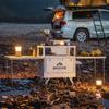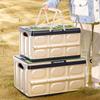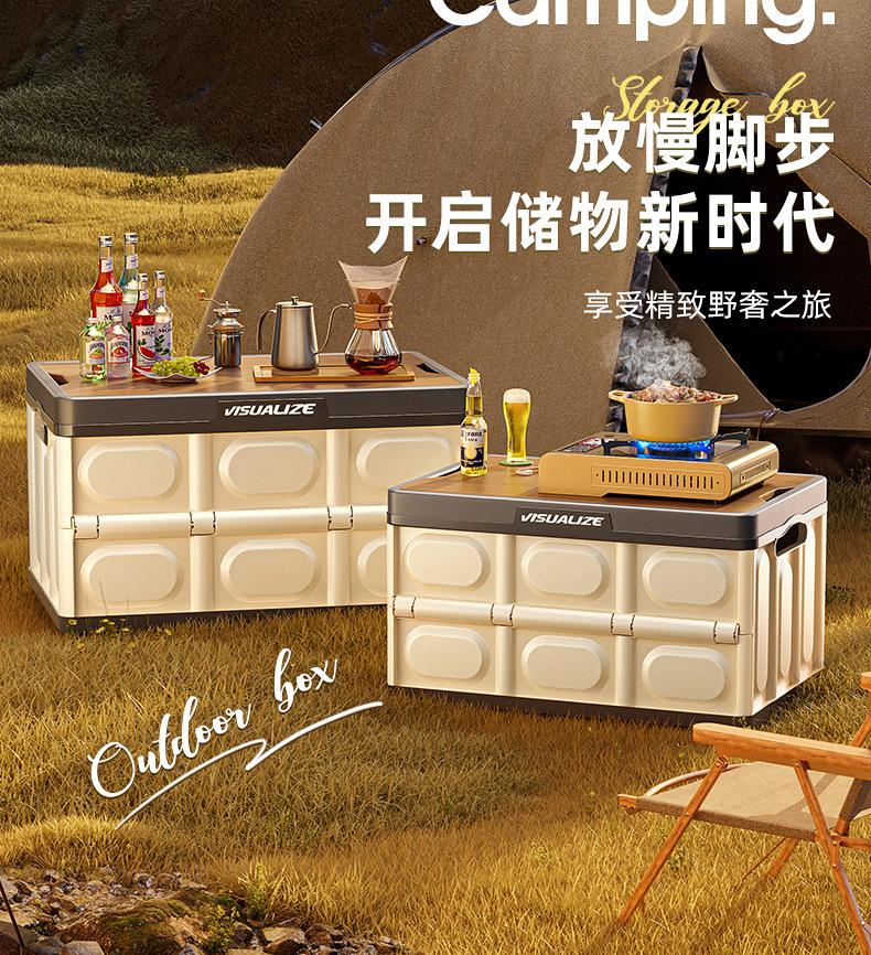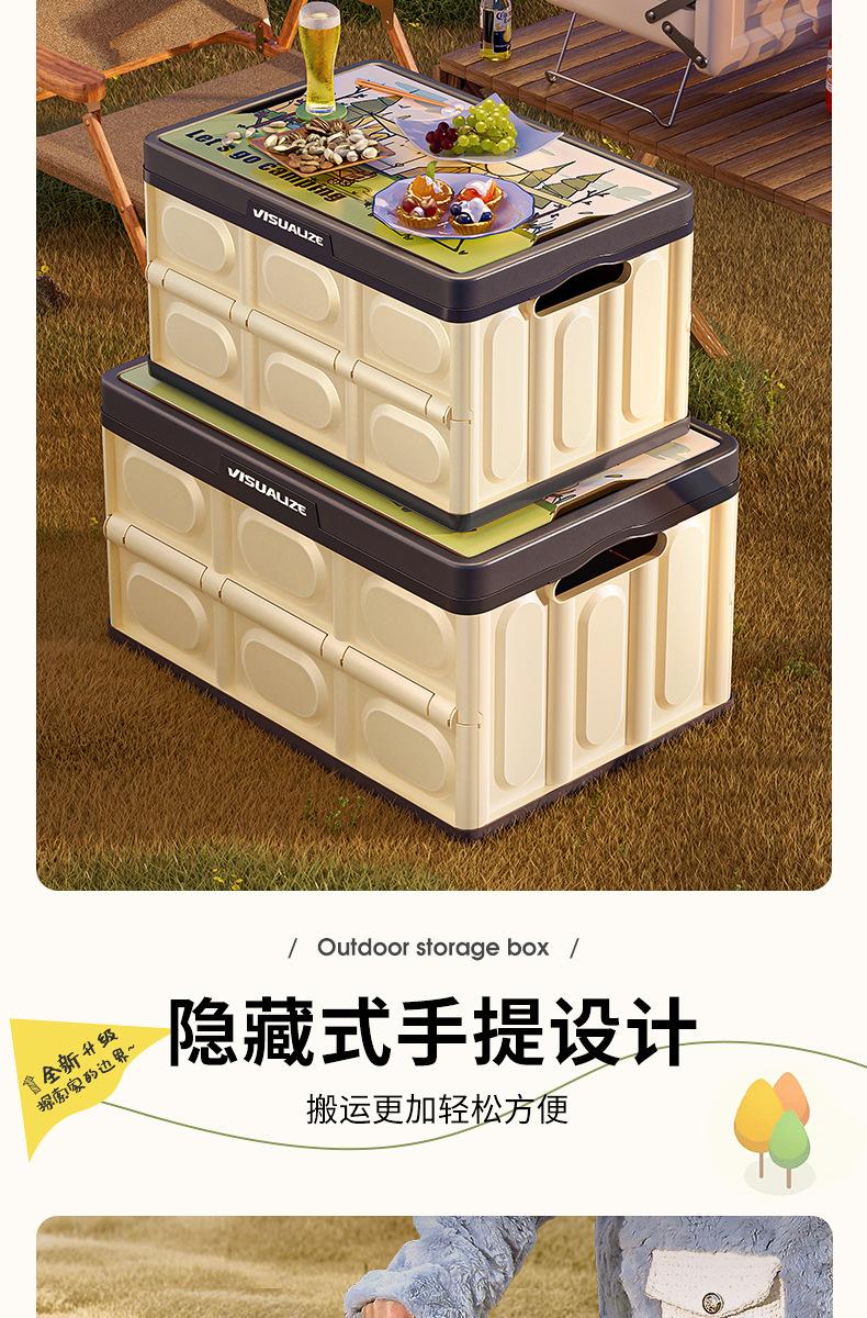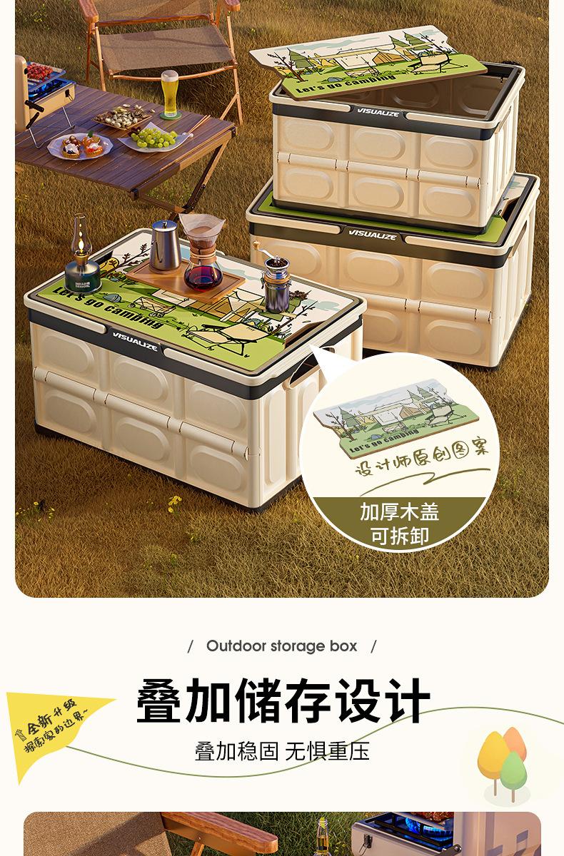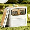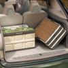 Caja de Almacenamiento para Camping al Aire Libre con Tapa de Madera, Organizador para Maletero de Coche, Caja Plegable para Picnic con Asa