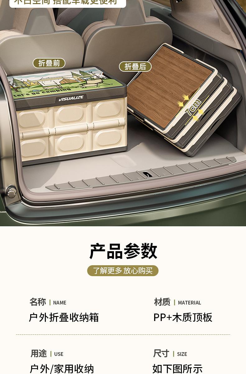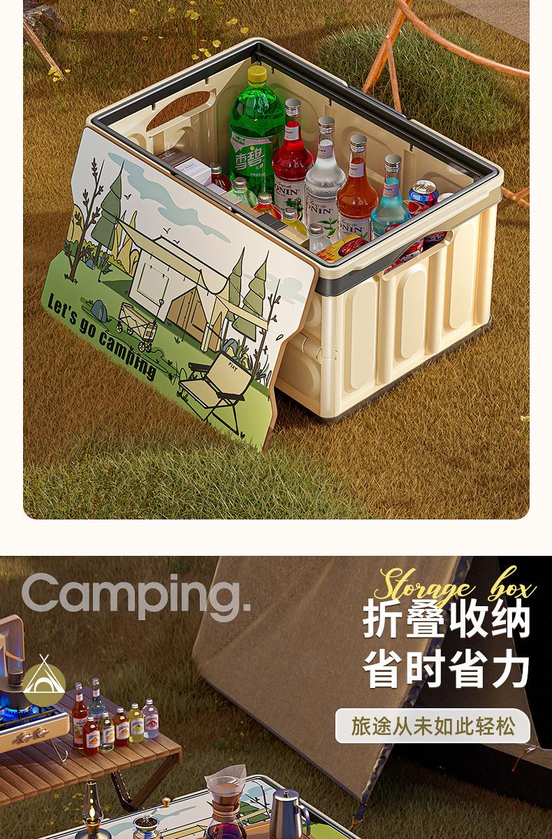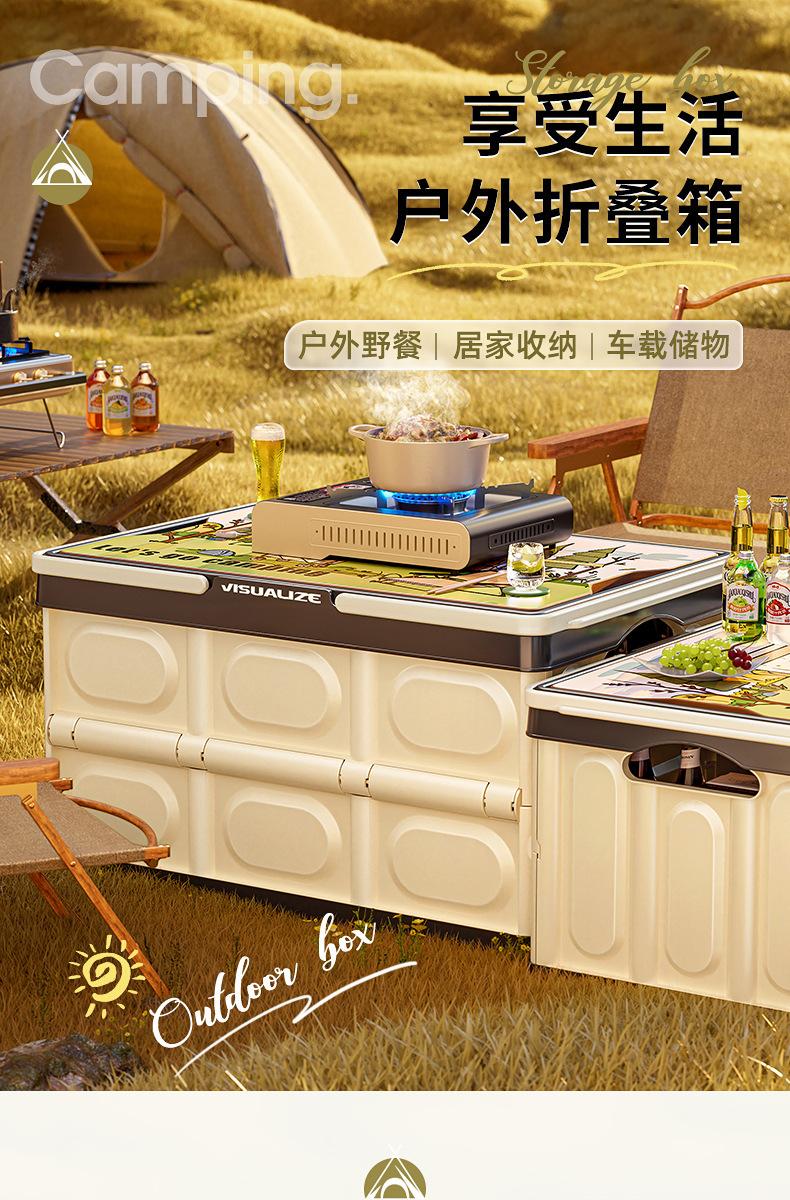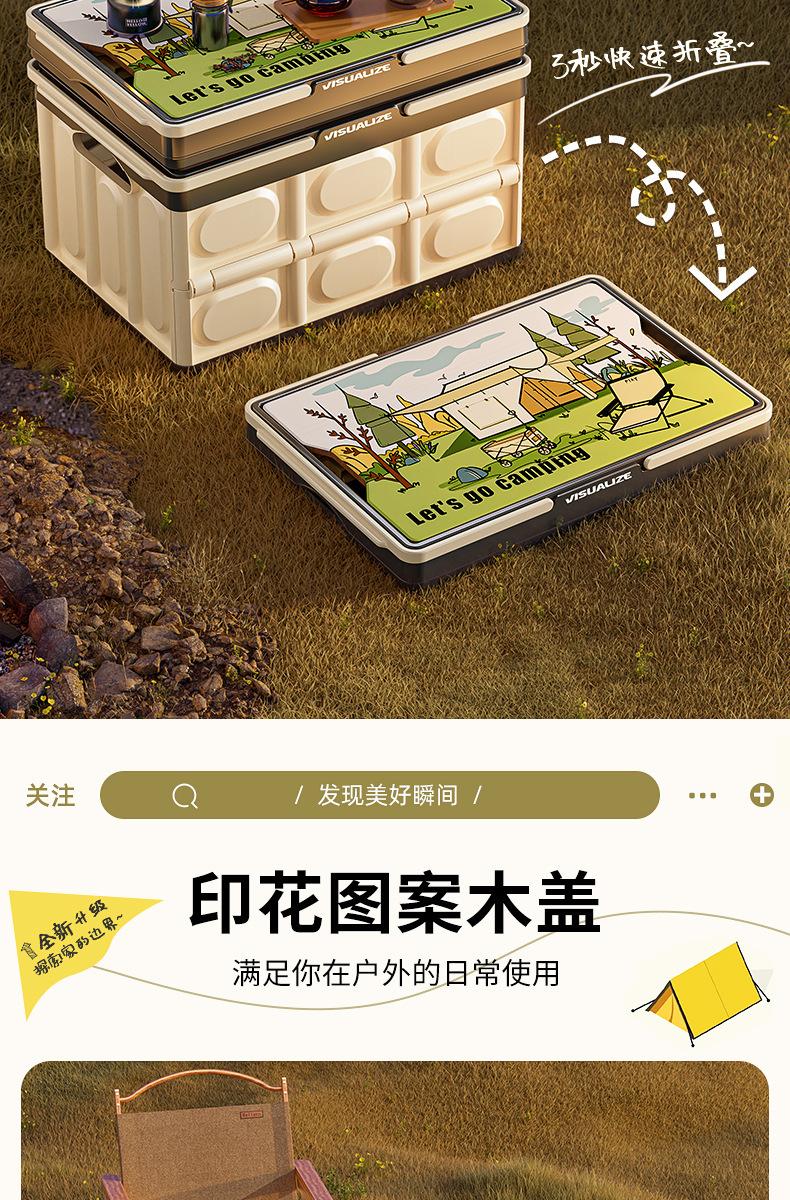 、、Caja de Almacenamiento Plegable para Camping al Aire Libre, Restaurante, Puesto Callejero con Tapa, Mango con Textura de Madera y Plástico, Portátil, para Montar en el Coche, Caja de Gran Capacidad