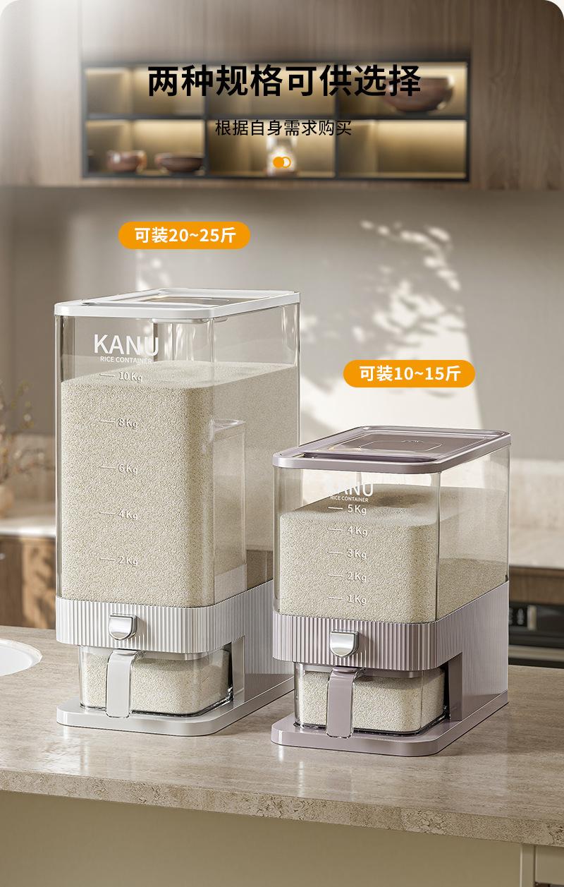 Ivory White-10 jin capacity-Free Rice Bowl【One-button Press Sealing Insect-proof】, Khaki-10 jin package-Free r...