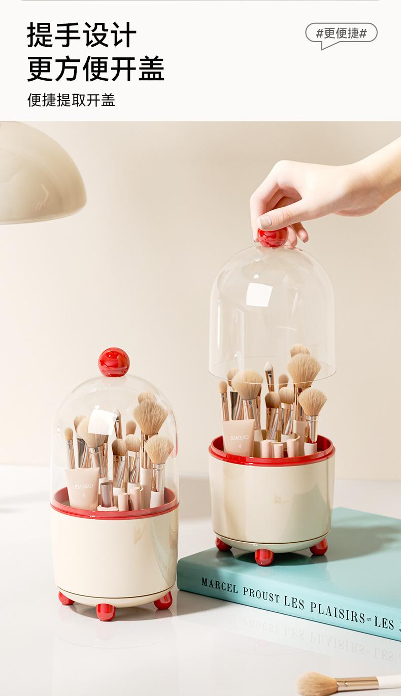 Caja de almacenamiento para brochas de maquillaje giratoria de escritorio para cosméticos, almacenamiento de labiales, tubo de almacenamiento a prueba de polvo, cubo de almacenamiento para tocador