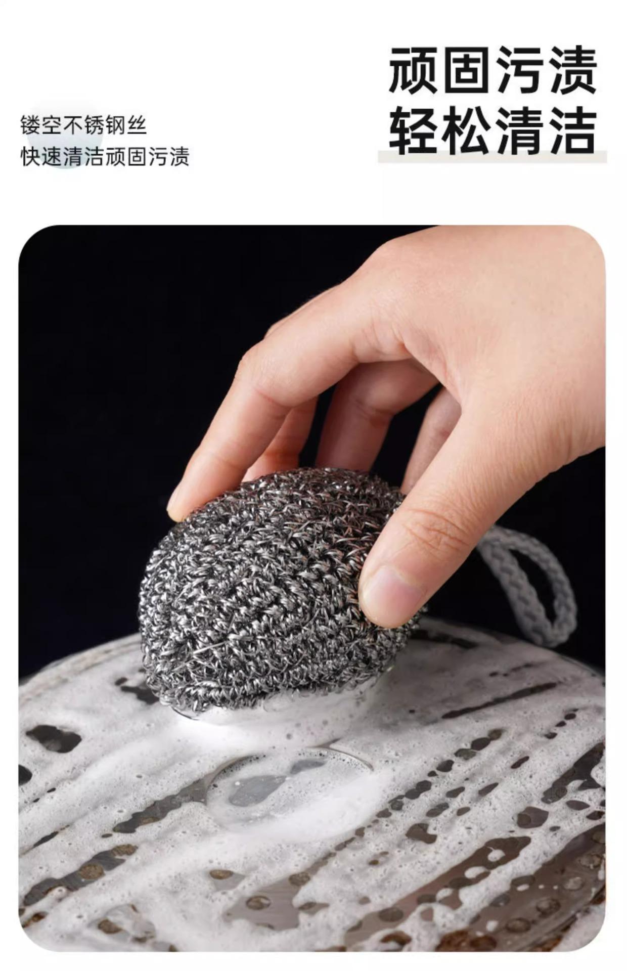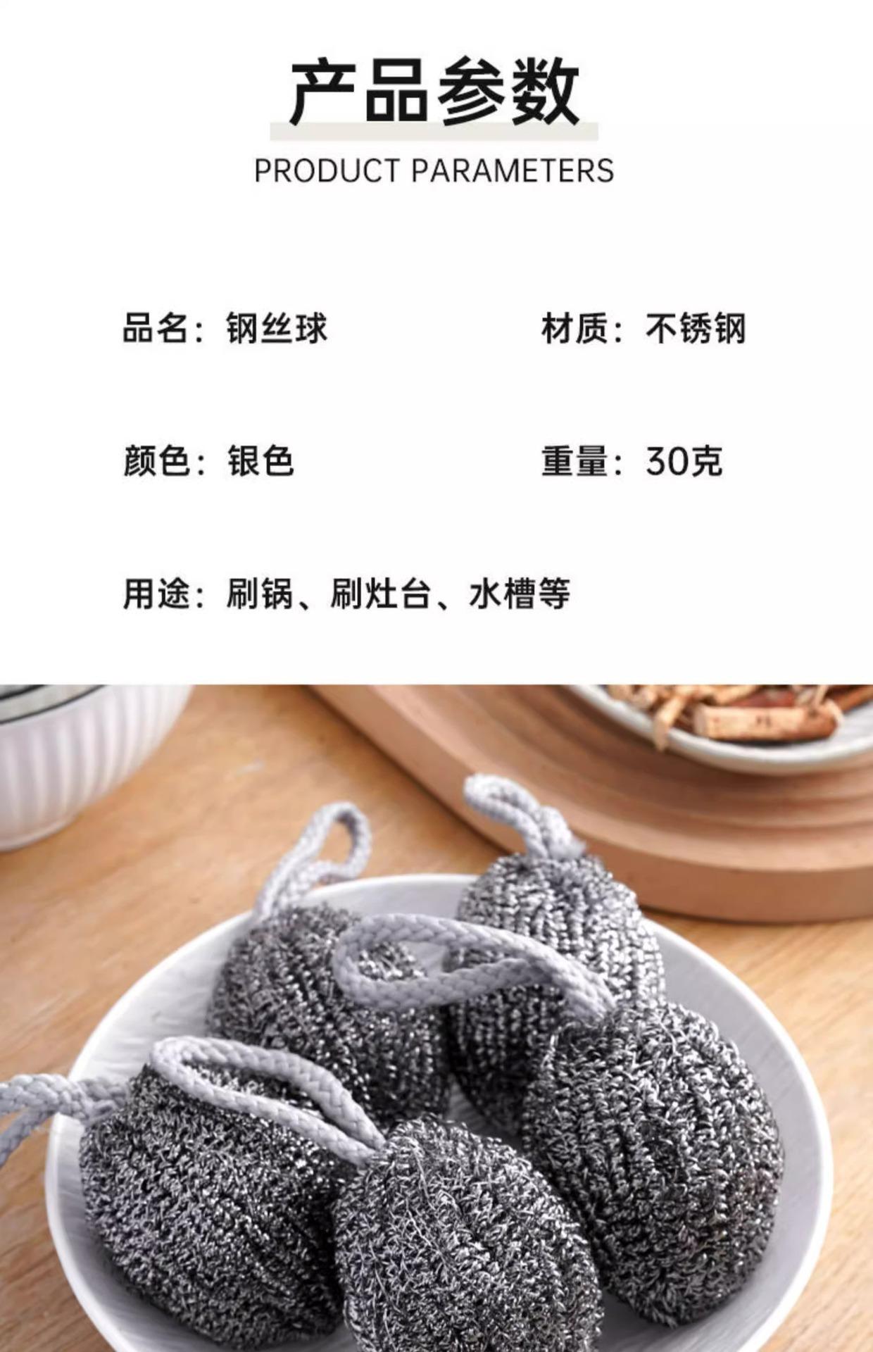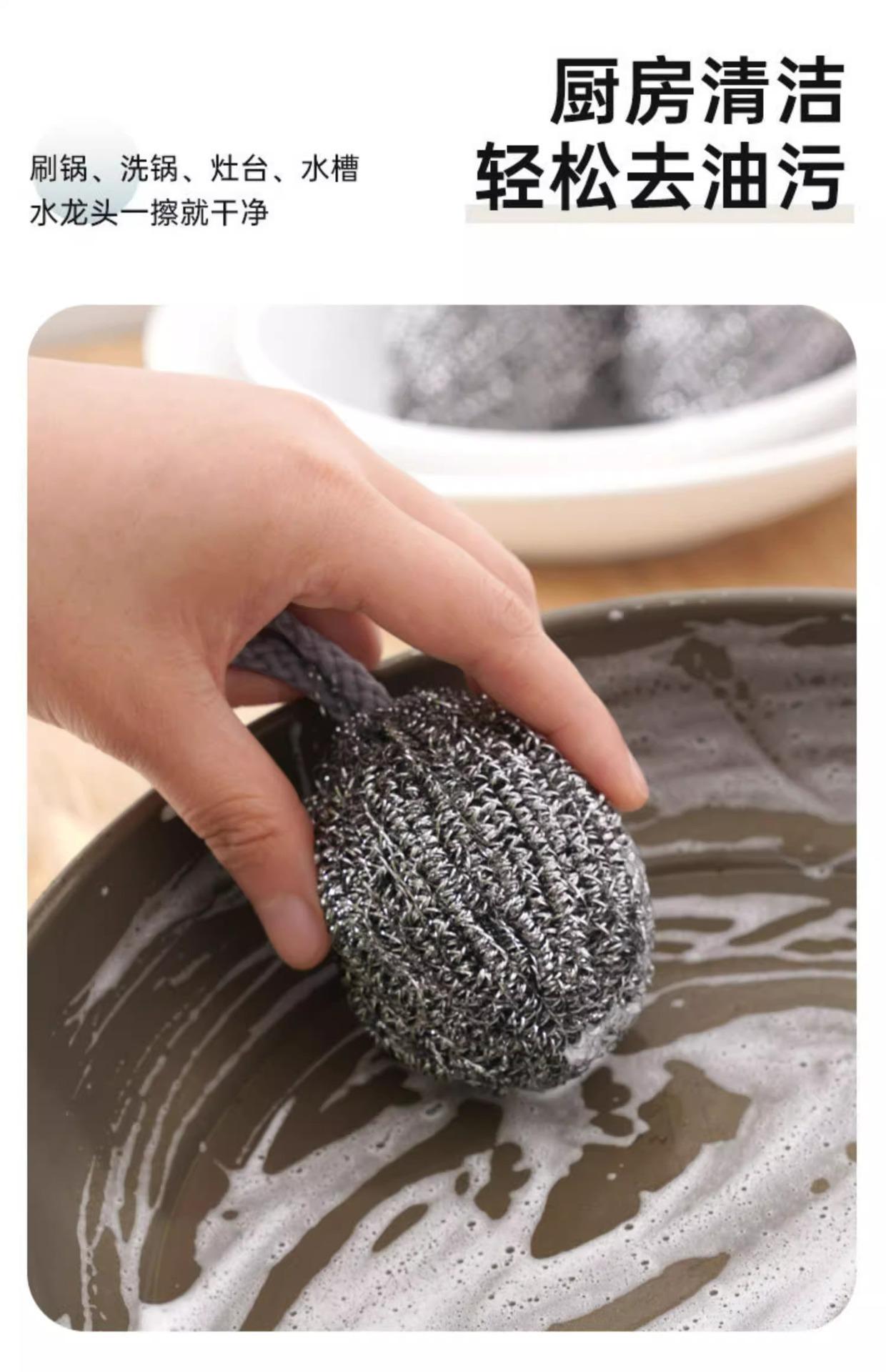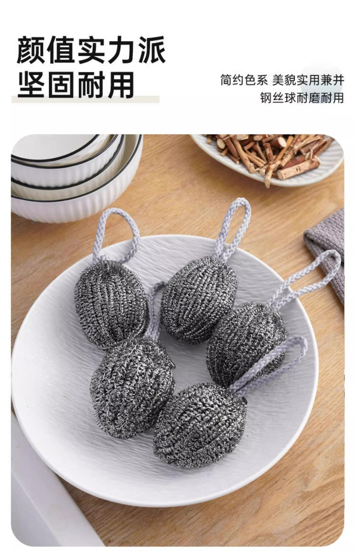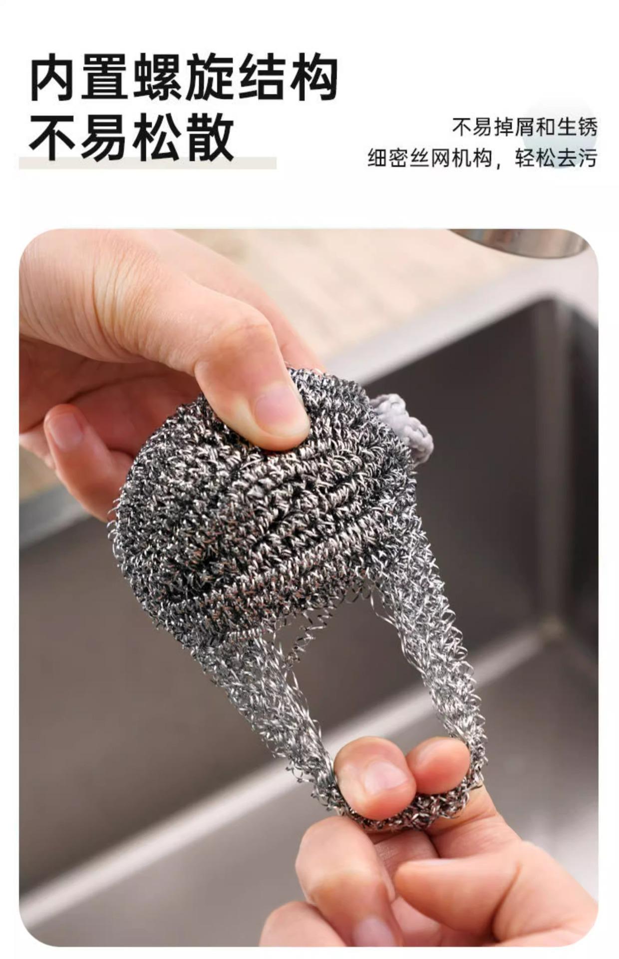 Bola Limpiadora de Acero Inoxidable con Cordón Estropajo para Ollas de Cocina Lana de Acero para Lavavajillas Hogar Inoxidable Tareas Domésticas