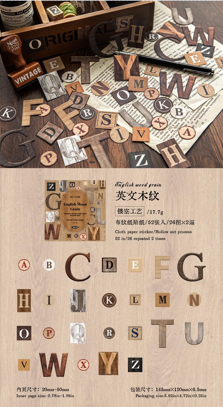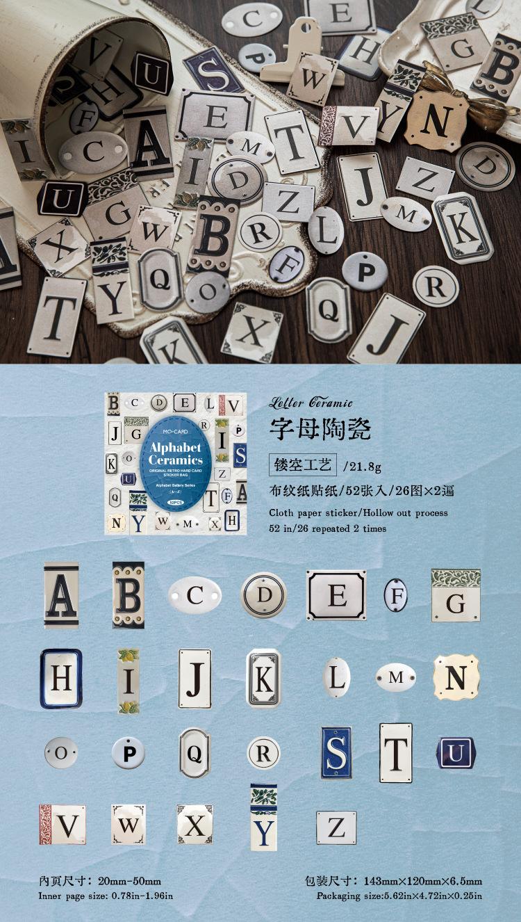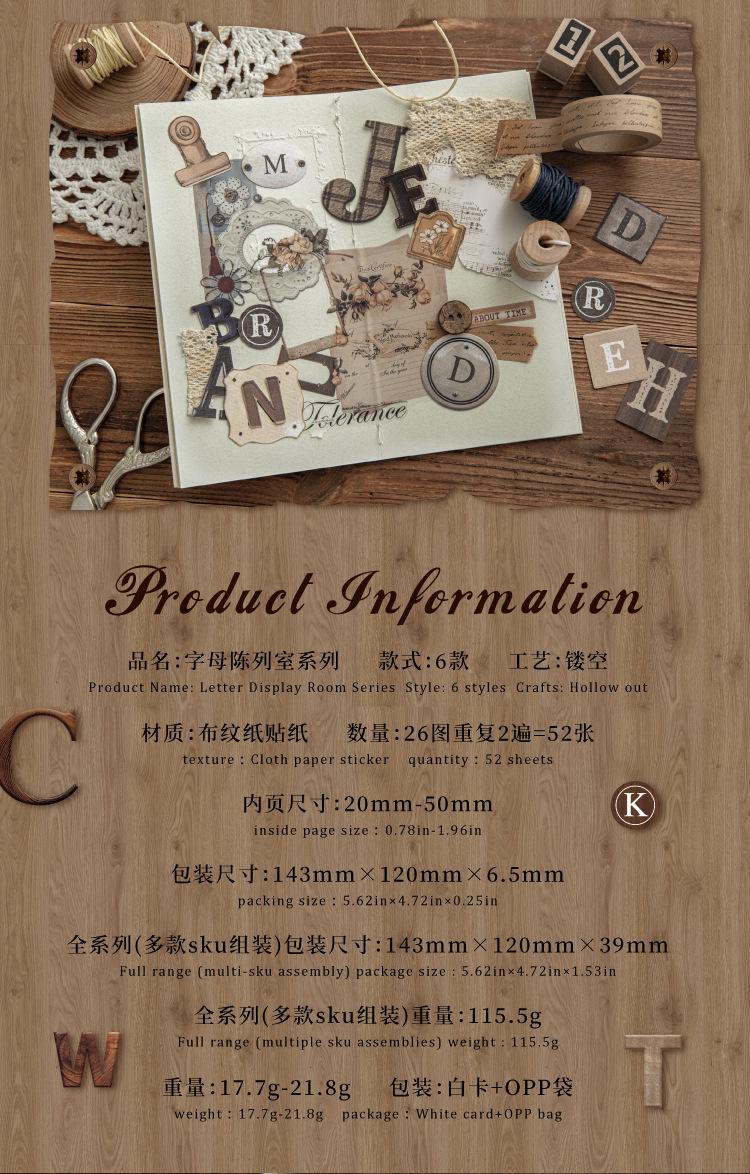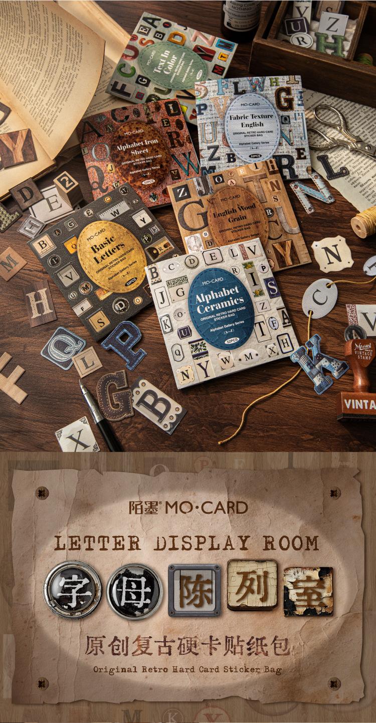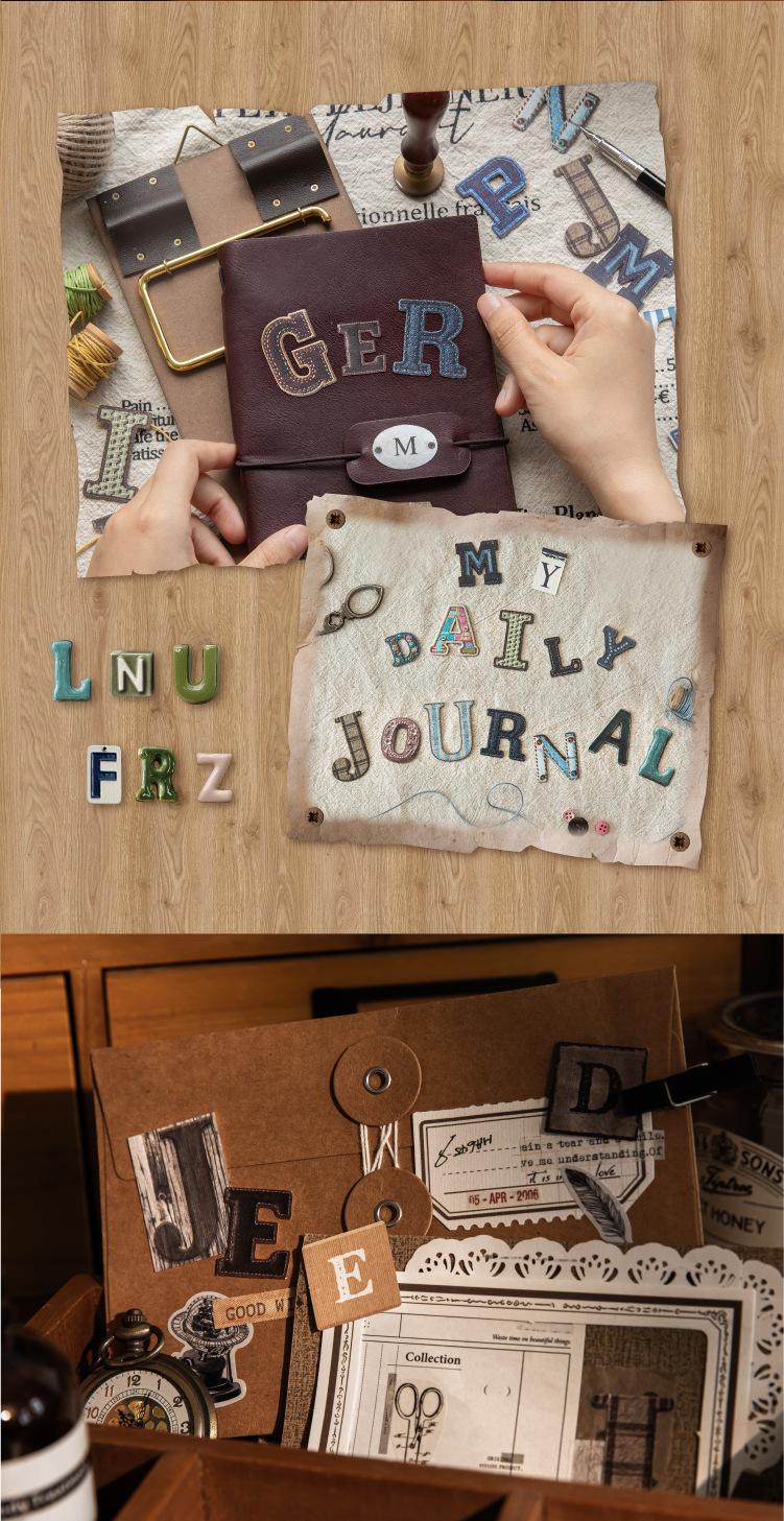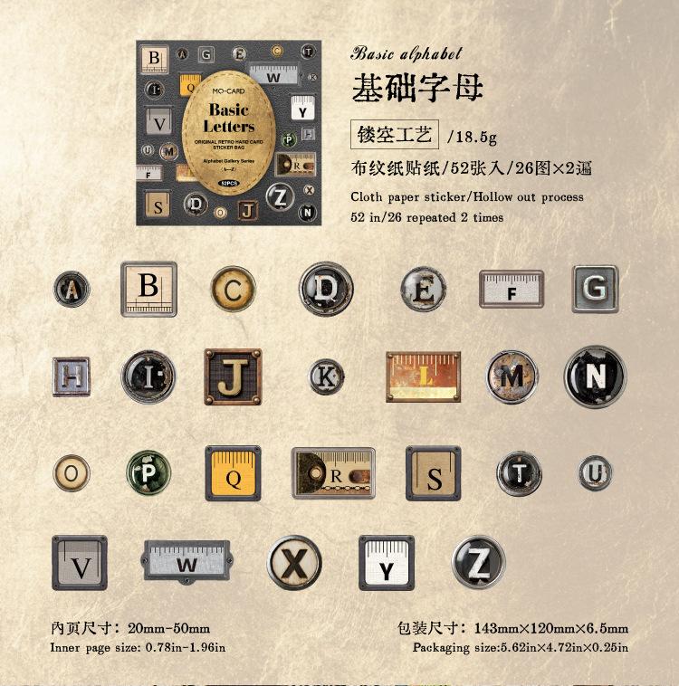 Paquete de Stickers Momei Transfronterizos Serie Sala de Exposición de Letras Letra Retro Material para Decoración de Diario Stickers 52 Piezas/Paquete 6 Estilos