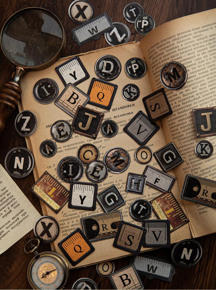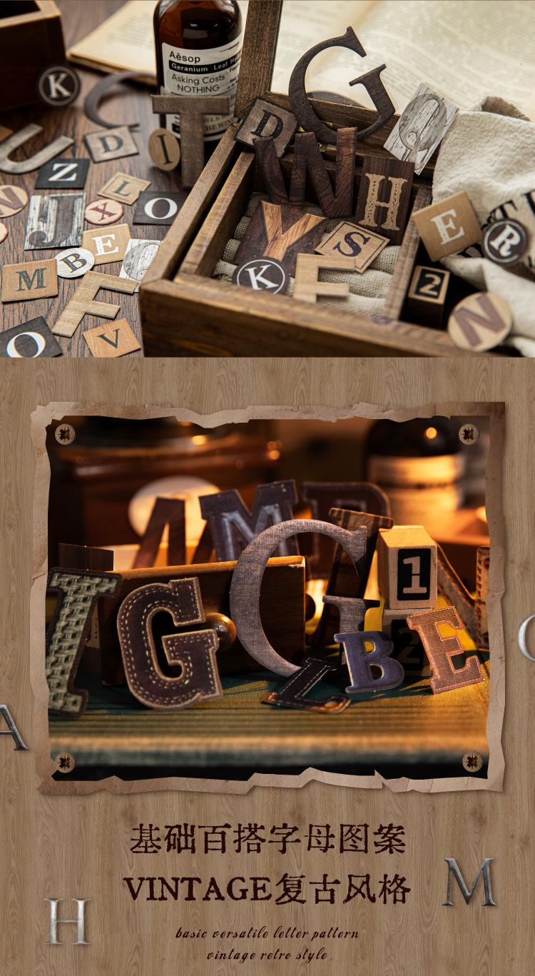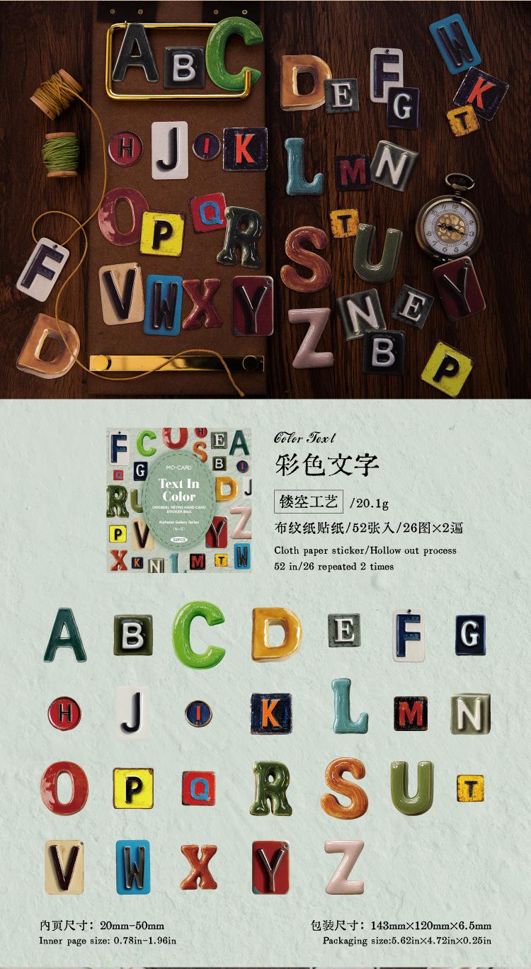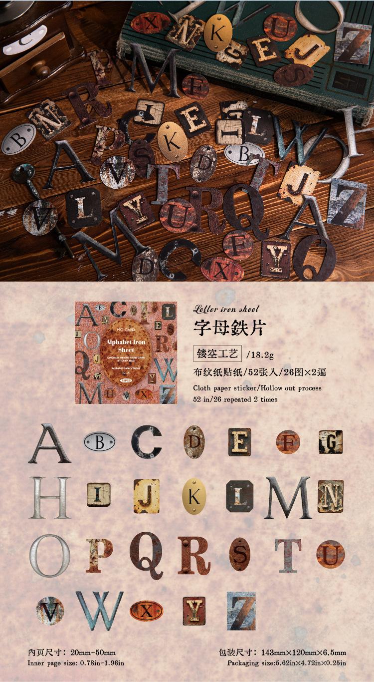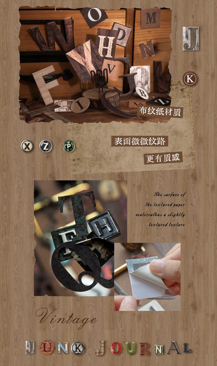 Paquete de Stickers Momei Transfronterizos Serie Sala de Exposición de Letras Letra Retro Material para Decoración de Diario Stickers 52 Piezas/Paquete 6 Estilos